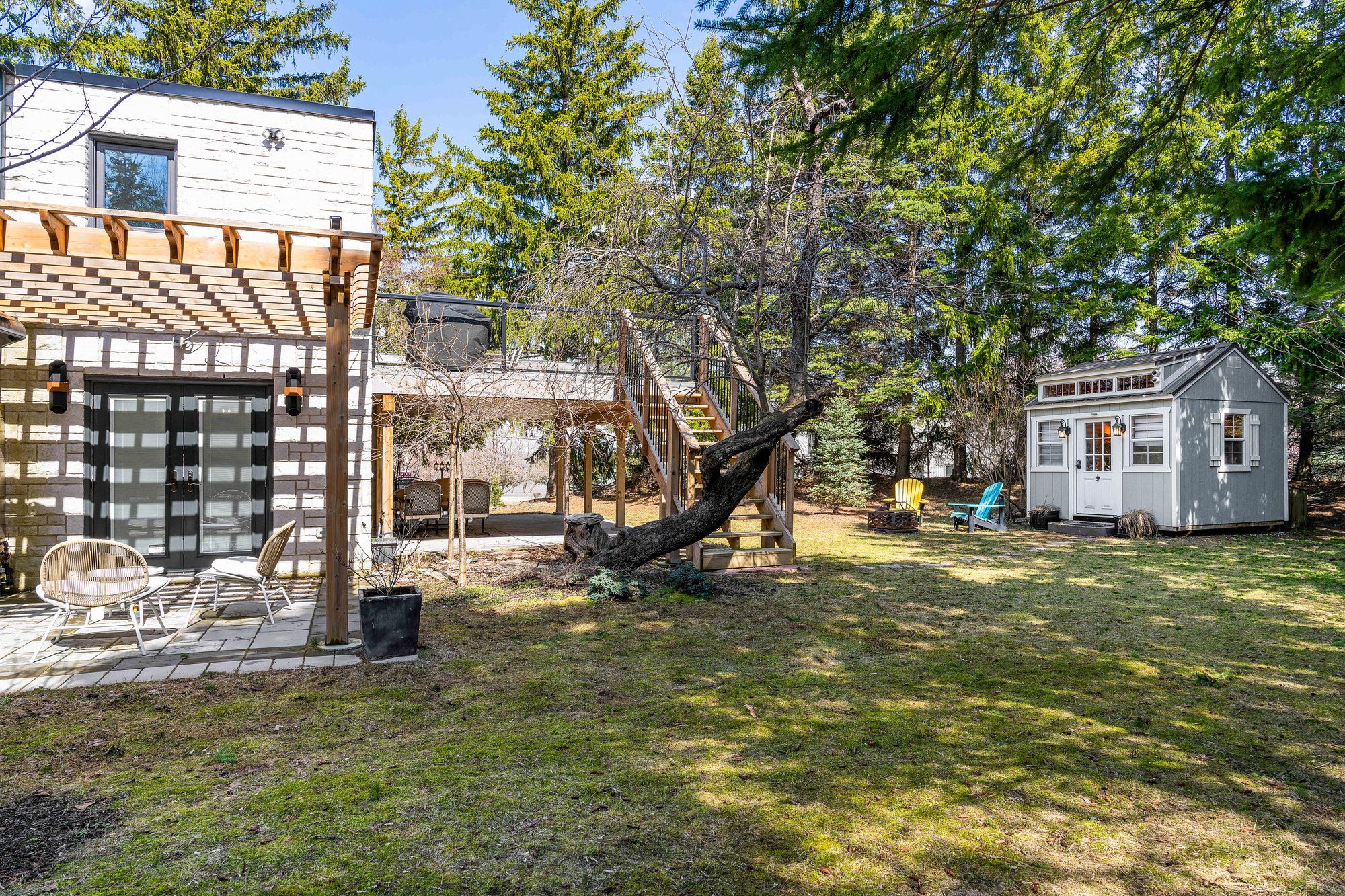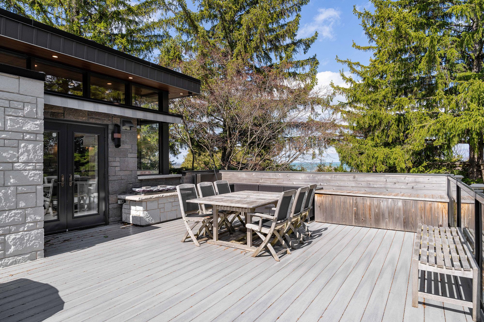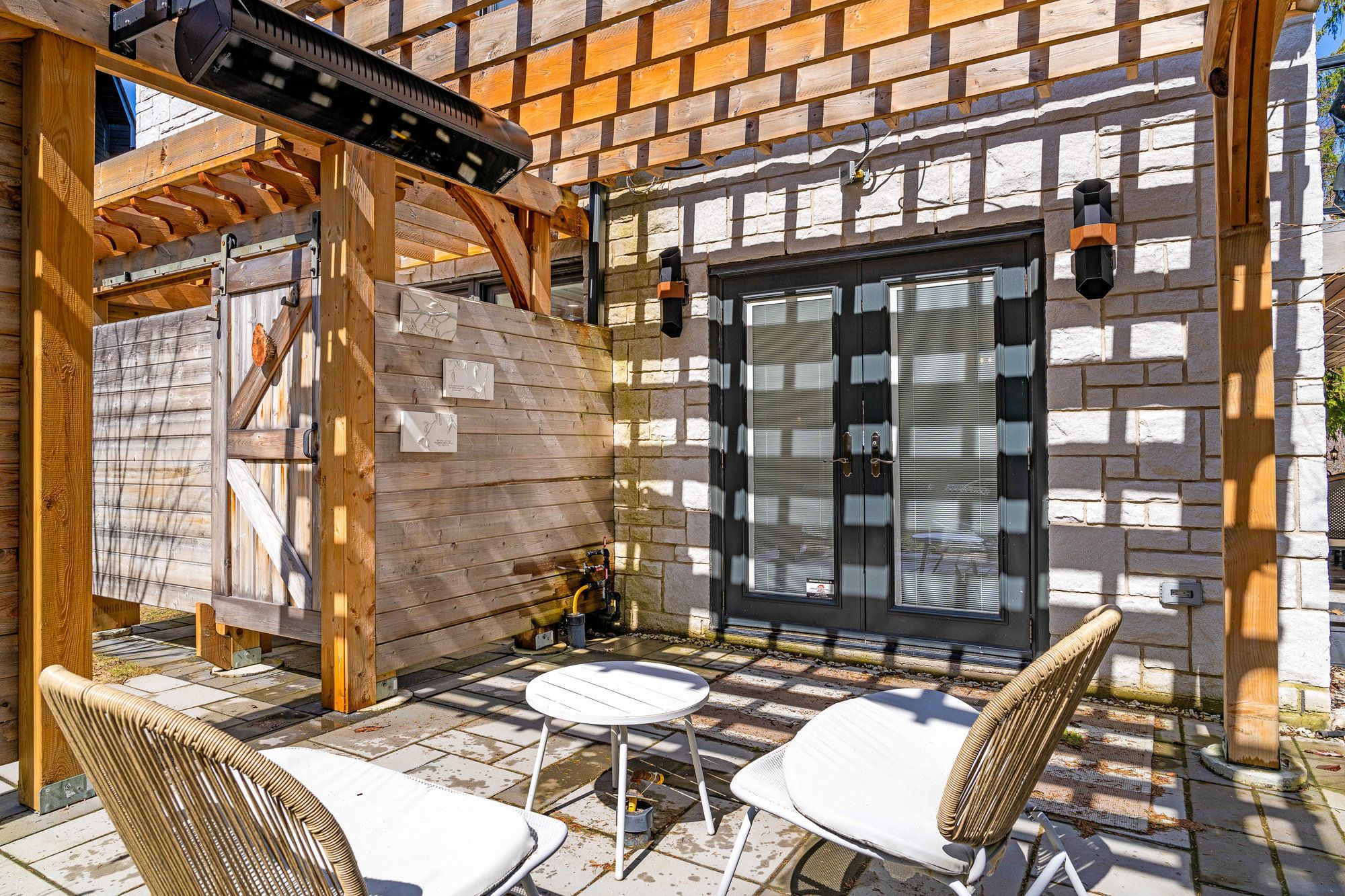 Welcome to 114 lakeshore road west a rare coastal gem in the heart of the blue mountains. Steps from the sparkling shores of northwinds beach and offering panoramic views of georgian bay, this beautifully renovated four-season retreat blends timeless charm with modern luxury. Set on a spacious, treed lot with mature landscaping, this stone-clad home and its fully insulated all-season bunkie provide the perfect balance of privacy, comfort, and location. Inside, the home features over 1,200 sq ft of updated living space with two generously sized bedrooms, two stylish bathrooms, and a bright, open-concept upper level. The gourmet kitchen boasts custom cabinetry, a coffee bar, and high-end appliances ideal for entertaining or cozy nights in. Step out onto the expansive composite deck to enjoy elevated bay views or unwind on the covered patio below. The upper-level living room, wrapped in natural light, offers the perfect vantage point for watching georgian bays ever-changing landscape. Every inch of this home has been upgraded with premium finishes, new mechanical systems, heated flooring, a gas fireplace, and thoughtful storage solutions throughout. The lower level features two bedrooms (one with walkout), a spacious 5-piece bath, and laundry facilities. The heated, two-level bunkie offers additional sleeping for guests or the ultimate kids hideaway, complete with a fridge, microwave, and sleeping space for two double beds. Enjoy year-round access to all this region has to offer: walk to craigleith ski club, bike the georgian trail, or hit the slopes at blue mountain all just minutes away. With ample parking, ski/bike lockers, and a hot/cold outdoor shower, this property is truly built for the active lifestyle. Whether you're seeking a weekend retreat, full-time residence, or investment in one of ontario's most desirable recreational corridors, 114 lakeshore road west delivers on quality, and location.