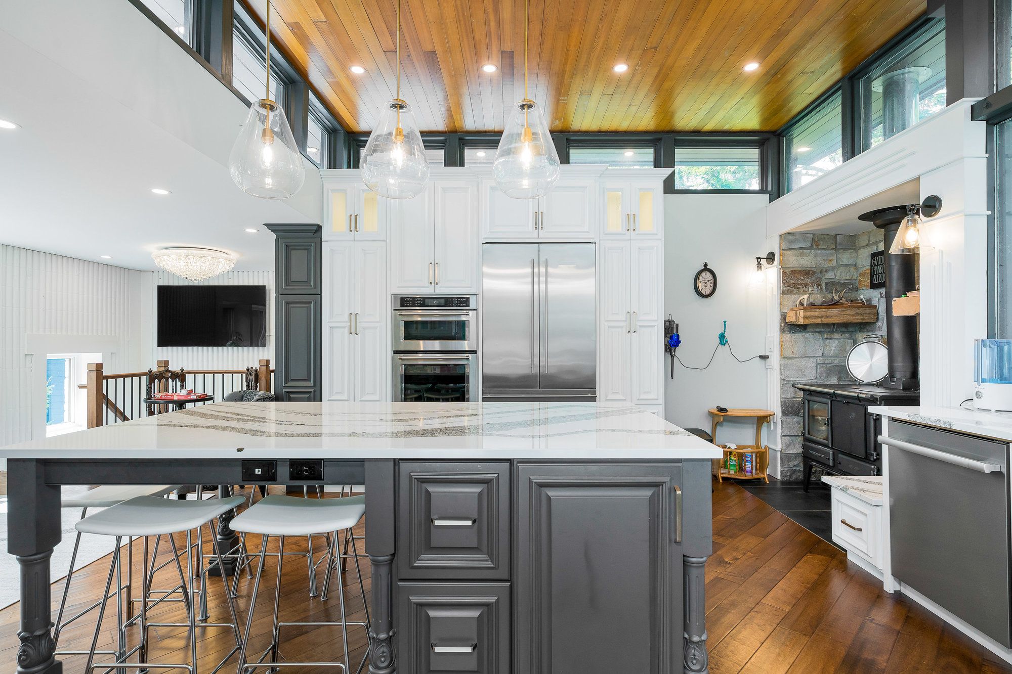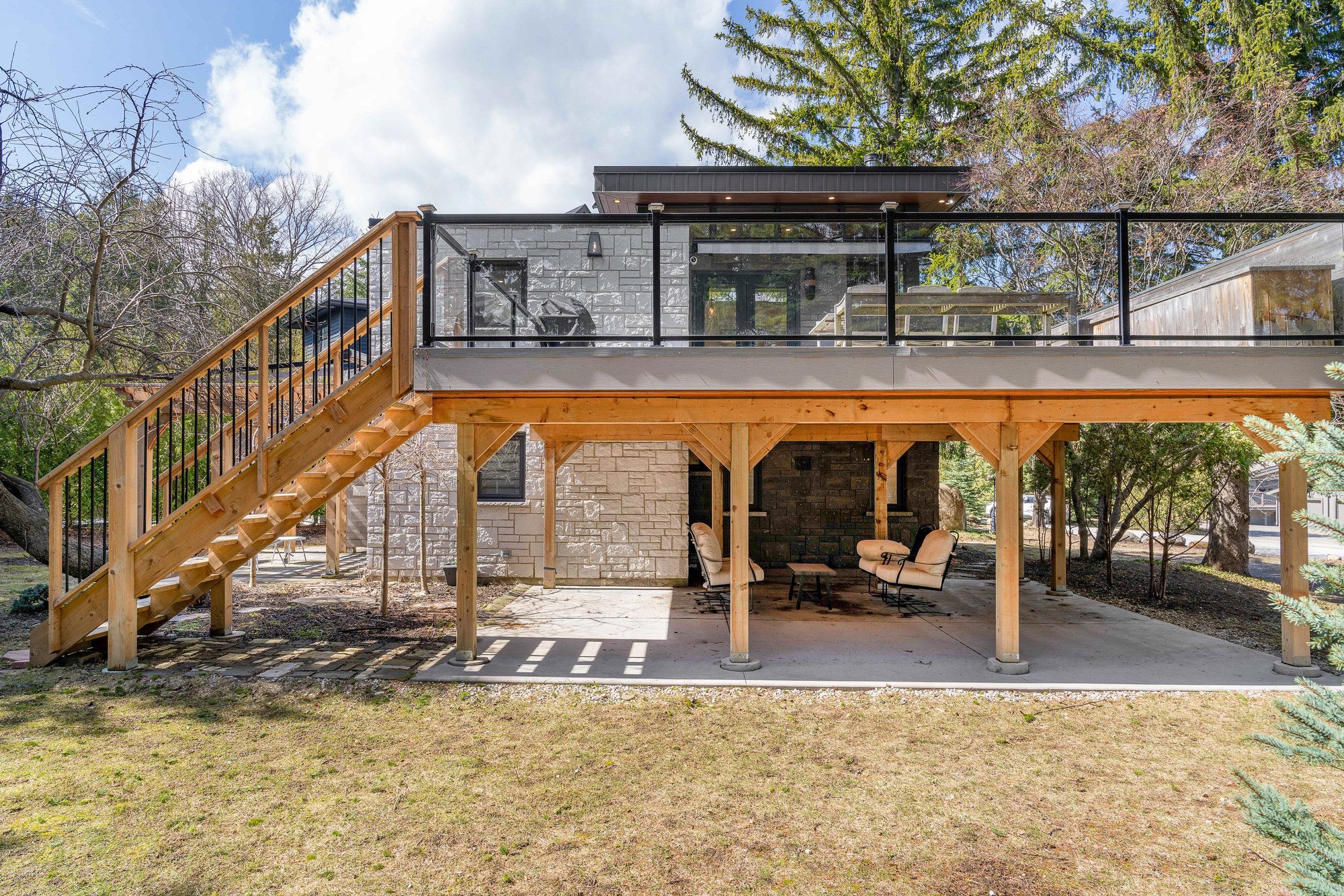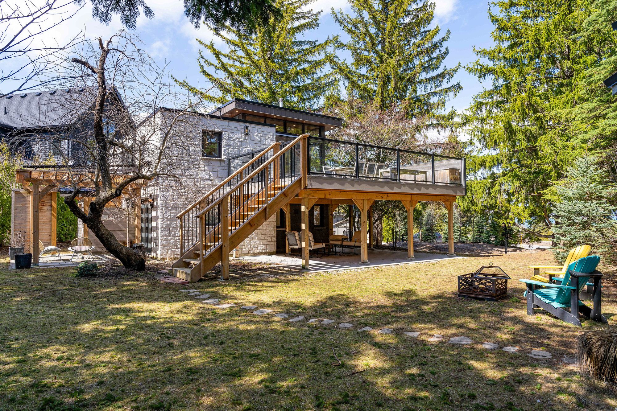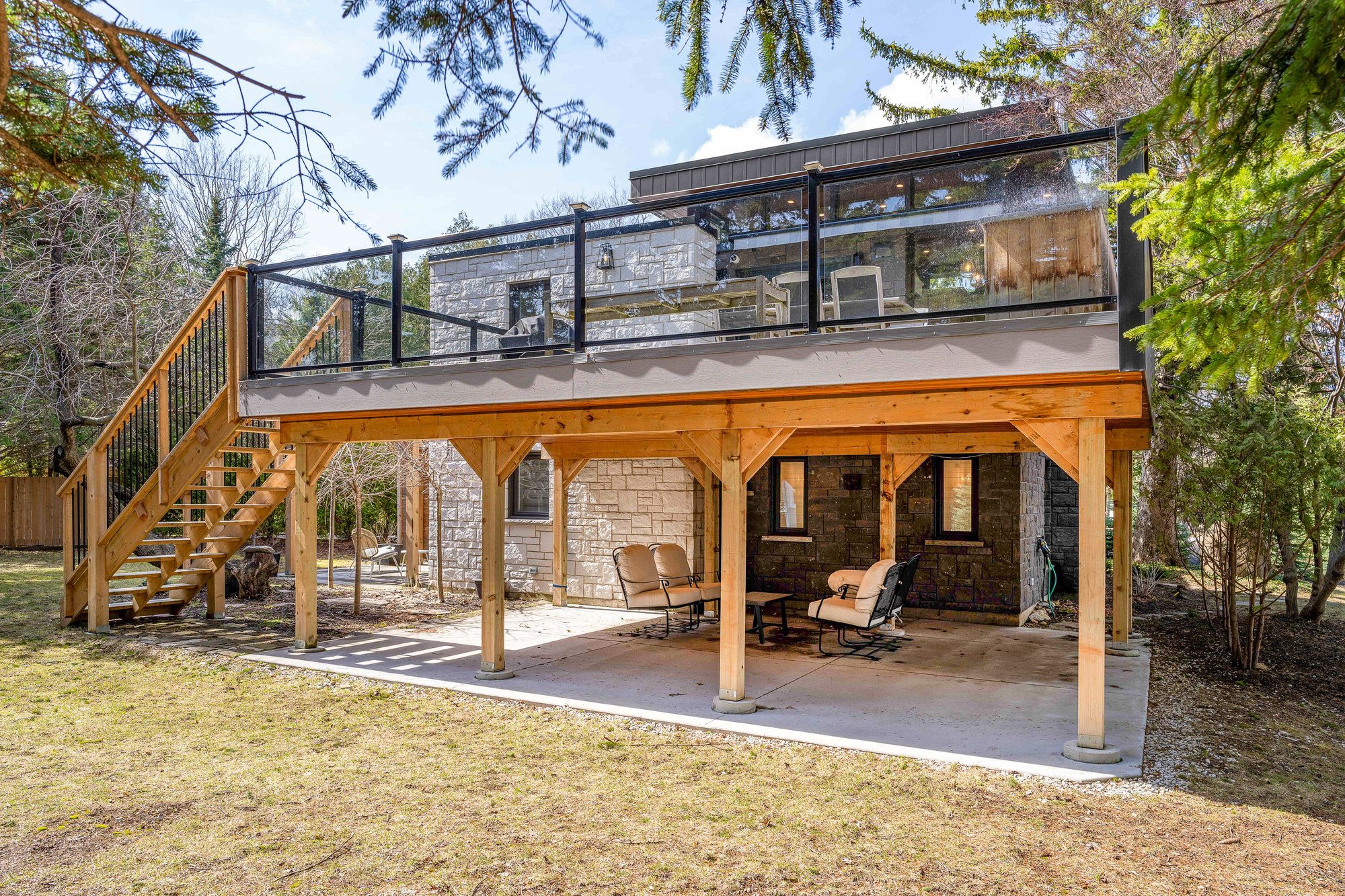 • Spacious stone-clad home with a fully insulated all-season bunkie.