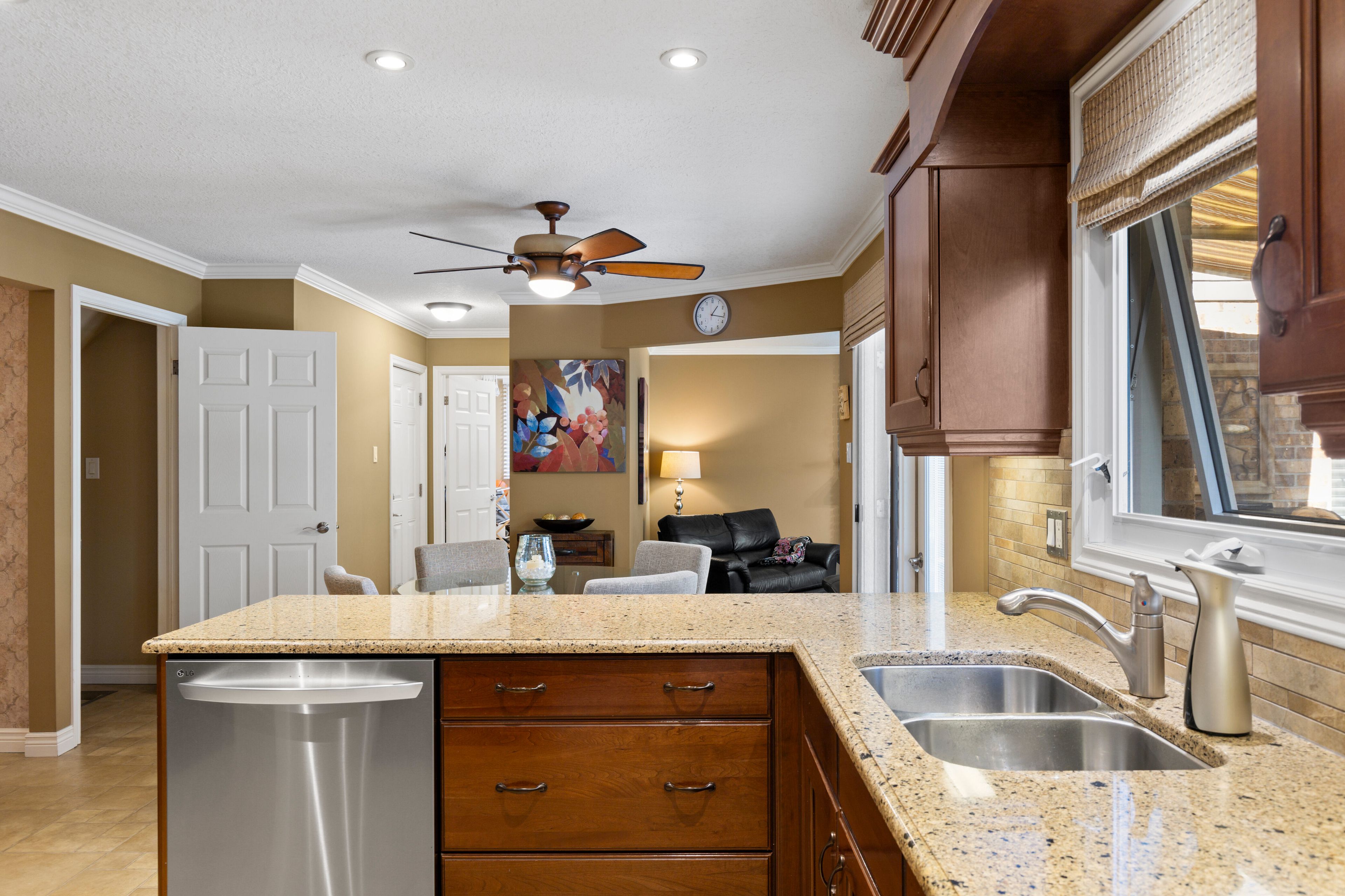 • Spacious family room with gas fireplace and direct access to the deck.