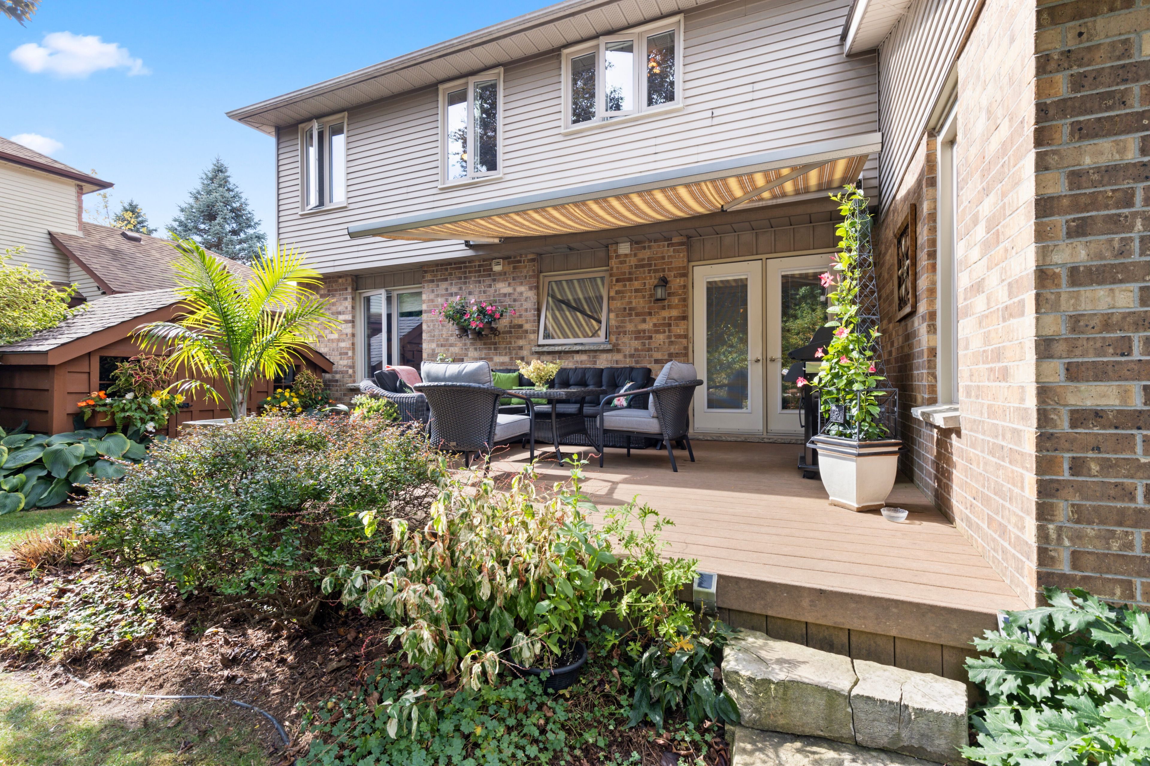 • Private backyard oasis backing onto Jesse Davidson Park for outdoor activities.