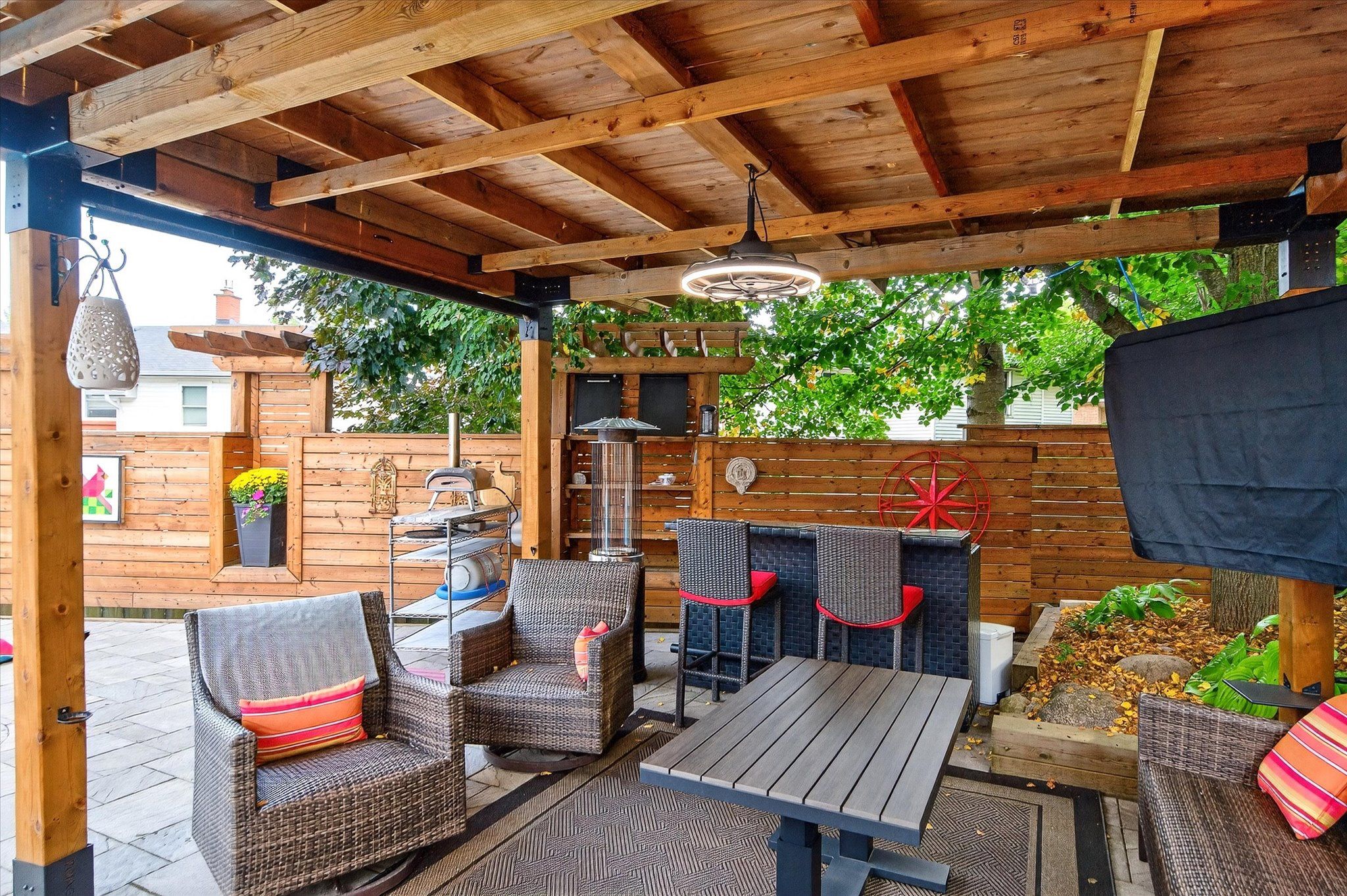 • Backyard oasis includes gas heated pool, hot tub, and outdoor kitchen.
