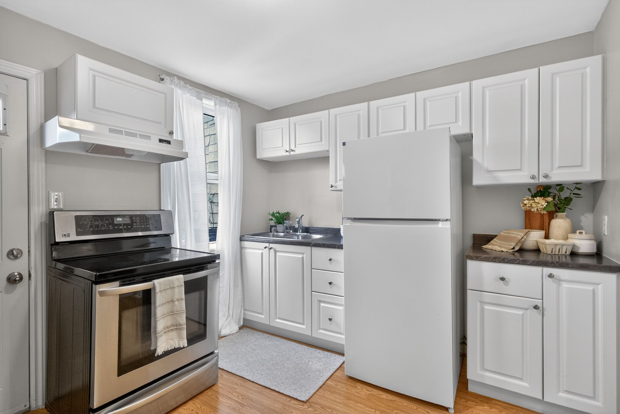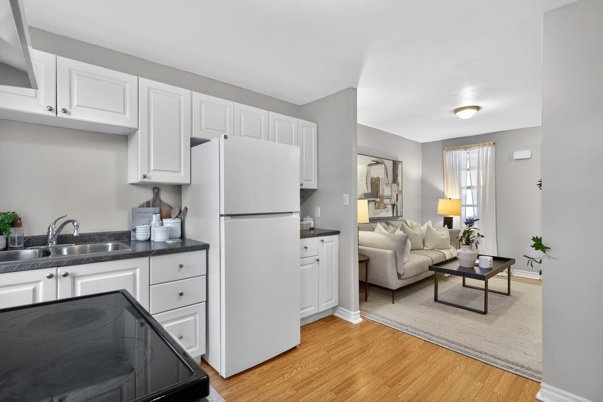 • Bright main floor with laminate flooring and spacious eat-in kitchen.