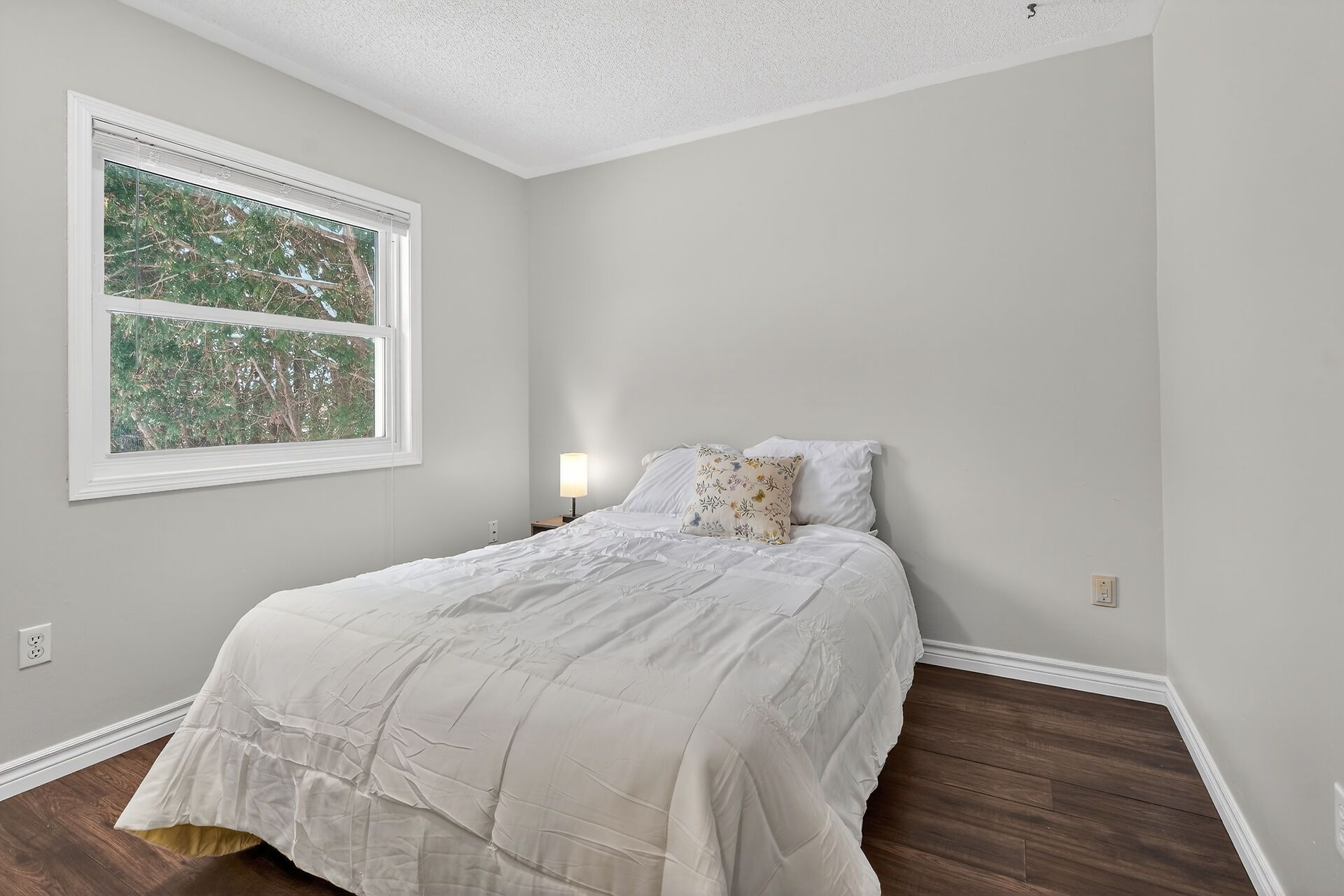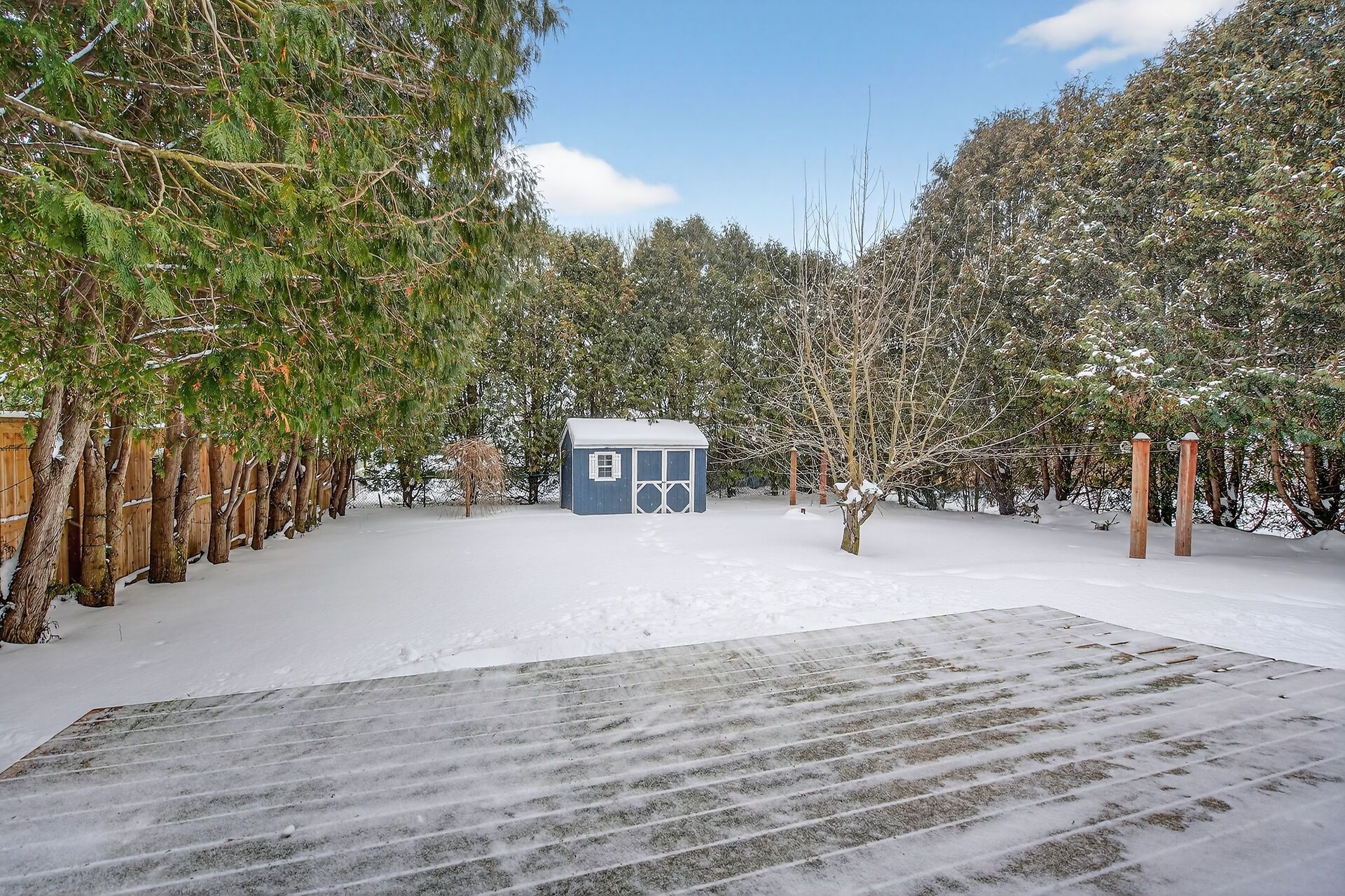 • Serene, fully treed backyard provides privacy for relaxing or entertaining outdoors.
