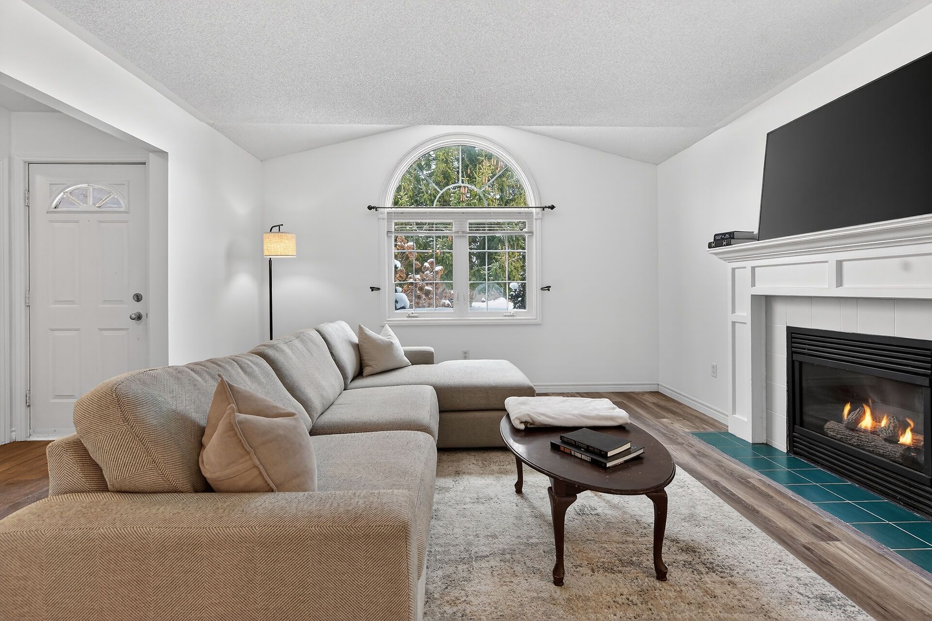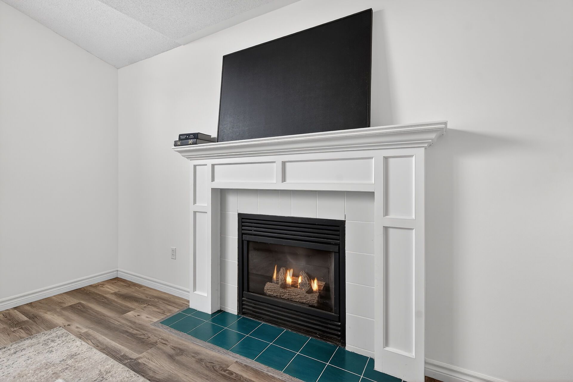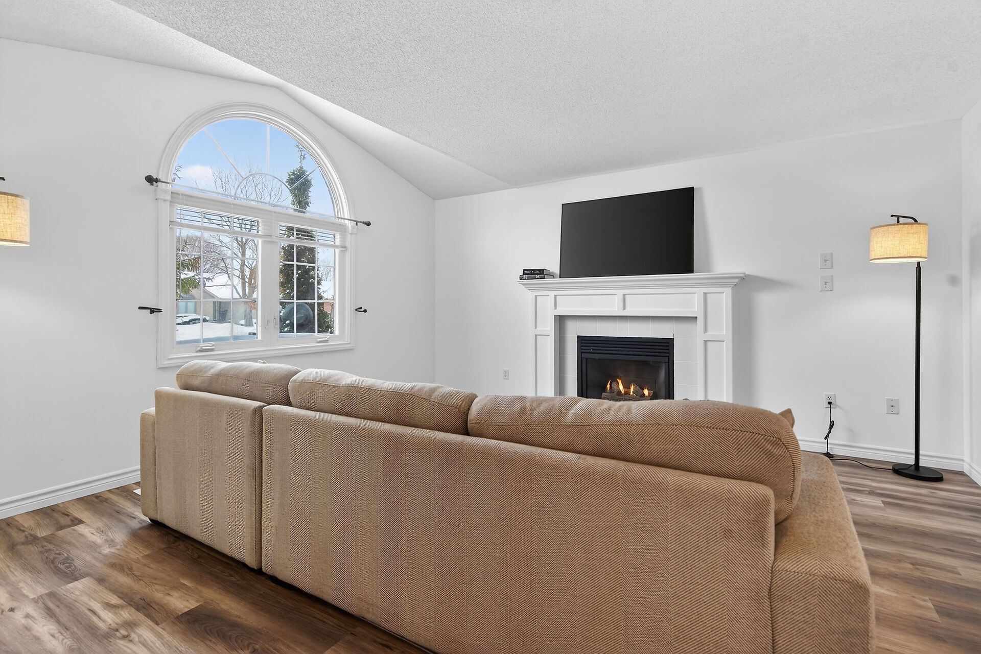 • Comfortable living room with gas fireplace adds warmth and charm.