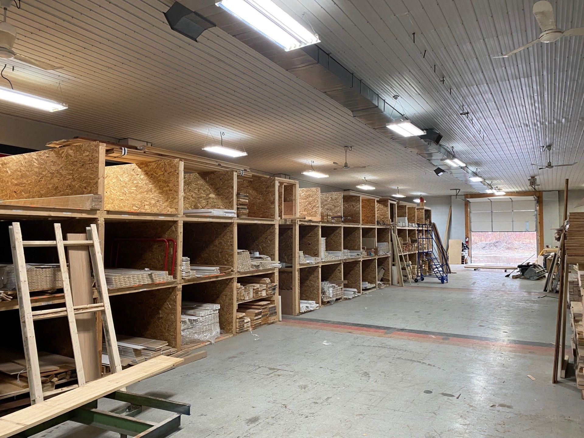• Glass storefront and large roll-up door for easy shipping and receiving.