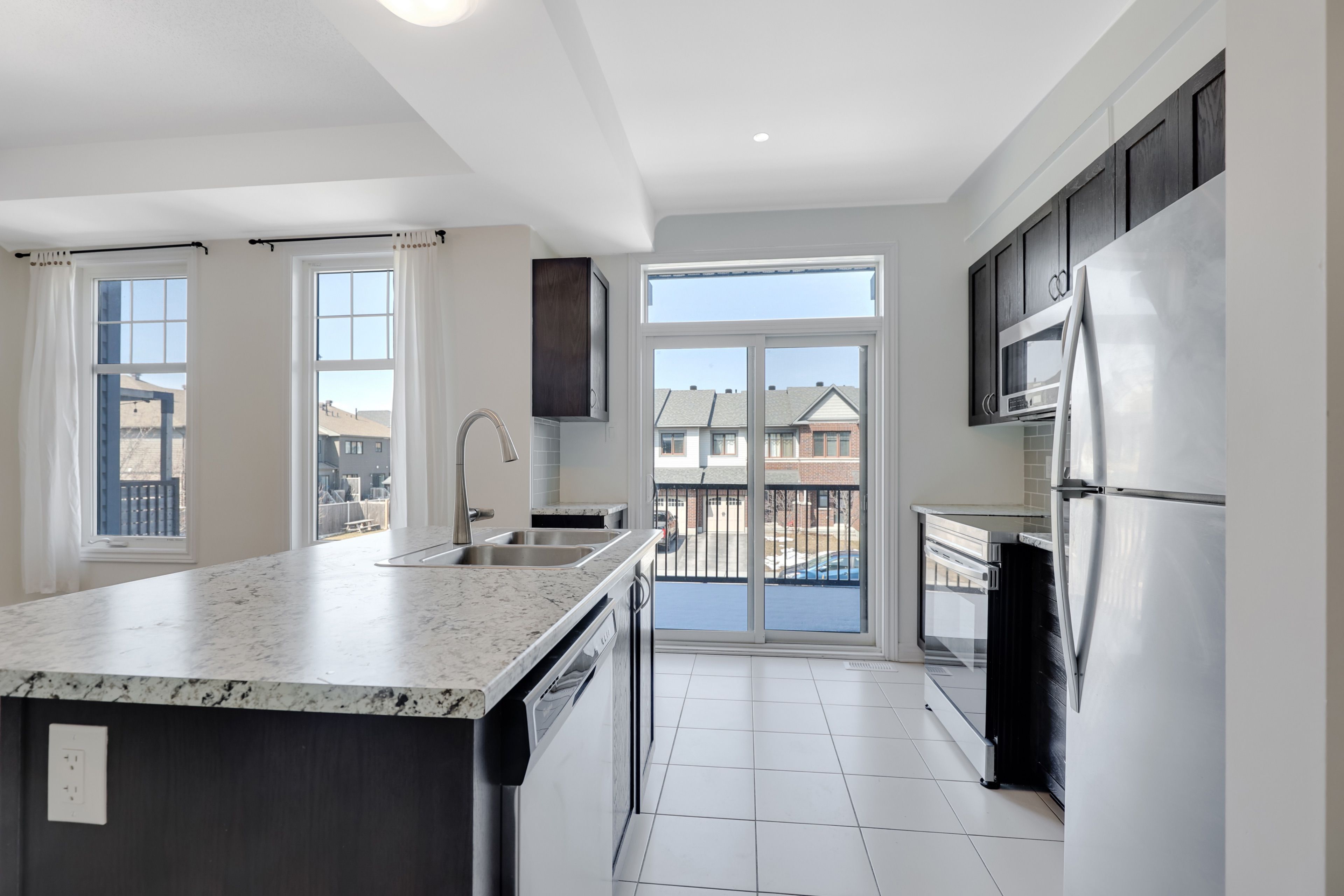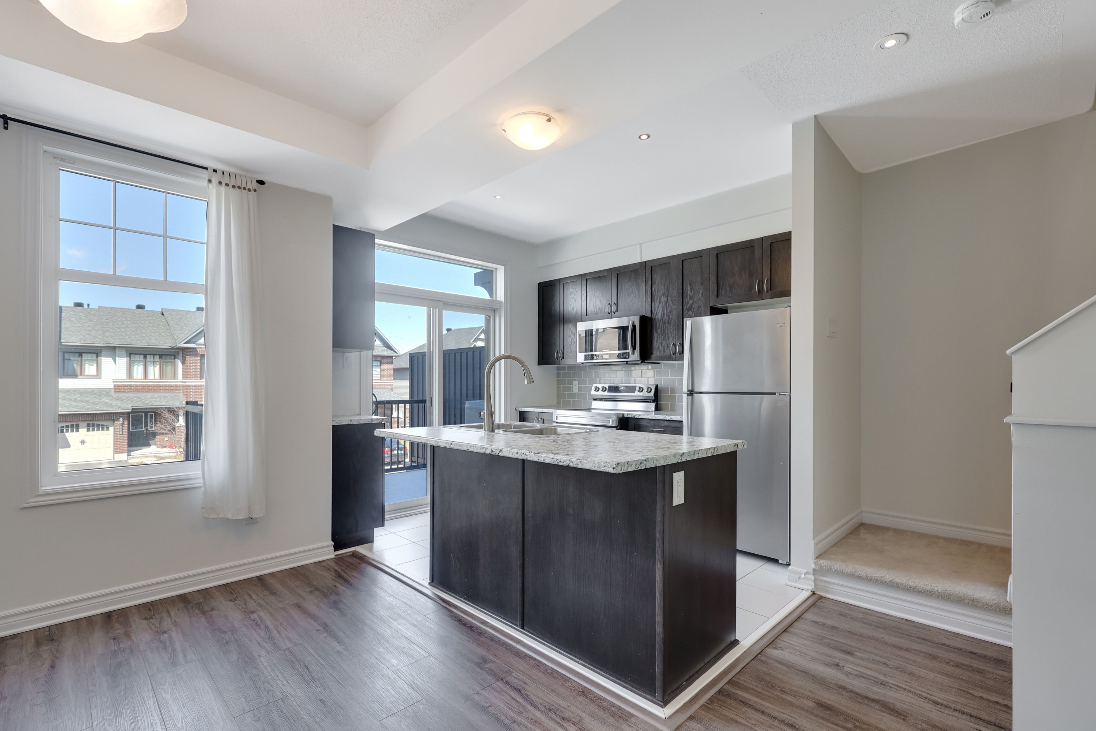 Welcome to a well-maintained freehold 3-storey townhome in the heart of kanata lakes, offering a bright, practical layout and exceptional value-perfect for first-time buyers, investors, or downsizers looking for low-maintenance living without sacrificing comfort. The front exterior presents a clean, modern look with an attached garage and private driveway, while the elevated entry adds a sense of privacy. Inside, the main level features a bright foyer with a spacious laundry area, extra storage, and convenient inside access to the garage, making everyday routines easy and organized. The second floor opens up into a sun-filled, open-concept living space with newly updated flooring and large windows that bring in plenty of natural light. The living and dining areas flow seamlessly into a stylish kitchen with a central island, dark cabinetry, and stainless steel appliances, creating a functional and inviting space for both daily living and entertaining. Step out onto the private balcony, where you can enjoy open views and fresh air-perfect for a morning coffee or a relaxed evening. Upstairs, the third level offers two well-proportioned bedrooms with large windows and a soft, neutral palette, including a comfortable primary bedroom with a walk-in closet. A full bathroom completes the level with clean finishes and practical design. The outdoor space continues the home's appeal, with a raised balcony that extends your living area and offers a quiet spot to unwind. Additional highlights include freehold ownership with no condo fees, central air conditioning, and a truly move-in ready condition throughout. Located in one of kanata's most sought-after communities, you're within walking distance to parks, transit, and everyday amenities, and just minutes from kanata centrum, tanger outlets, the high tech park, and highway 417-making both daily life and commuting incredibly convenient. A fantastic opportunity to enter the kanata lakes market with style, comfort, and value.