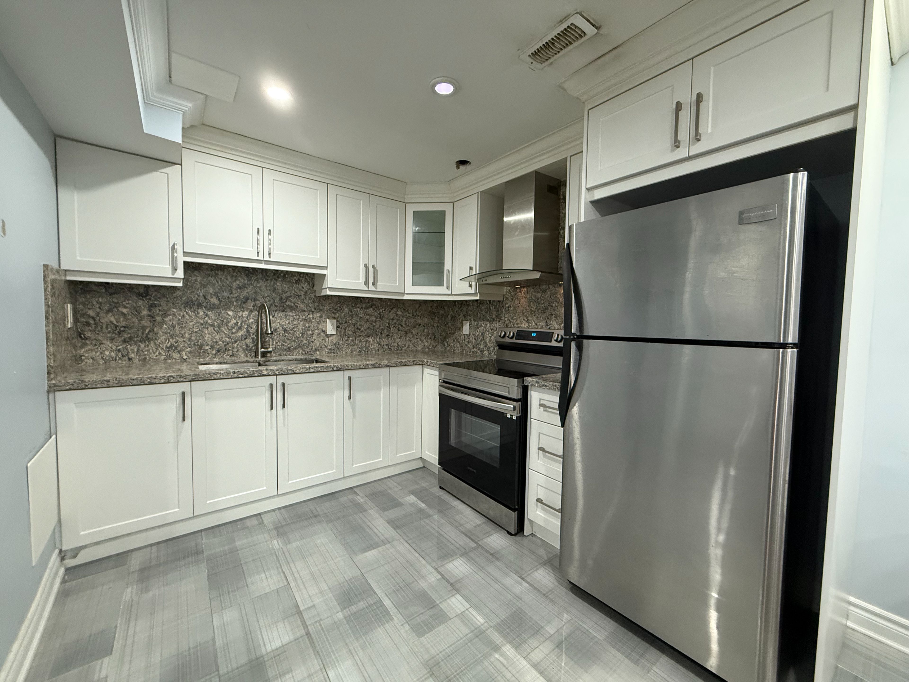 Available for immediate move-in. Basement access through the home with no separate entrance. This bright 800 square feet suite offers a stylish, renovated kitchen with crown mouldings, quartz countertops, stainless steel appliances, and modern pot lights, complemented by a spacious primary bedroom and a renovated bathroom featuring a stand-up shower. Situated in the highly sought after milliken mills community, it's ideal for a couple or students. Conveniently located near highways 404 and 407, public transit, parks, top-ranked ib schools, shops, markville mall, and pacific mall. Shared laundry with utilities shared at approximately 30-40%. One parking space is included, and wi-fi can be provided.