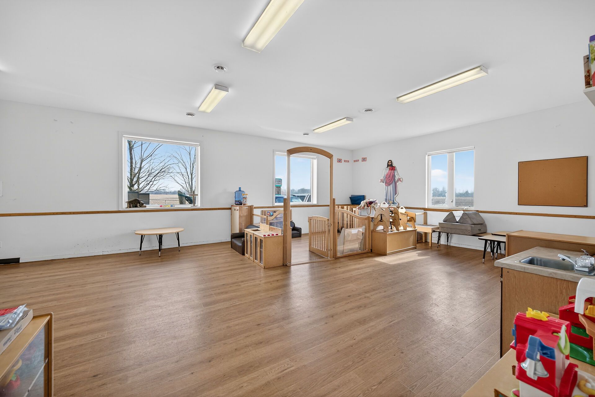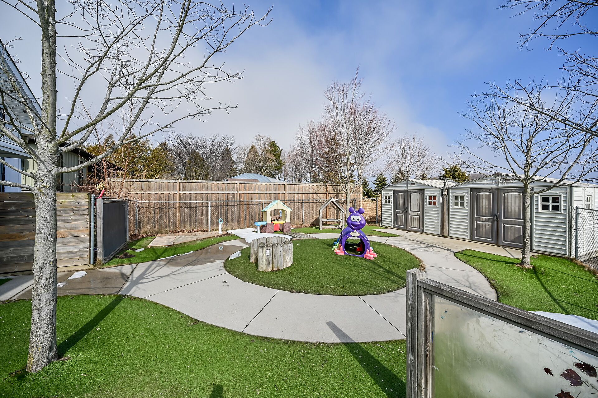 • Generous lot with parking and fenced outdoor daycare area.
