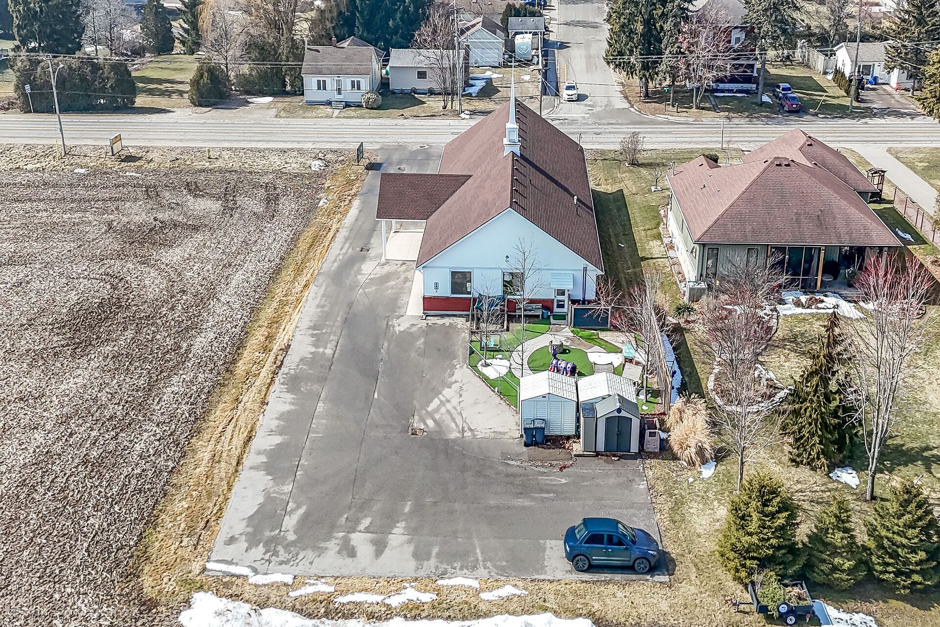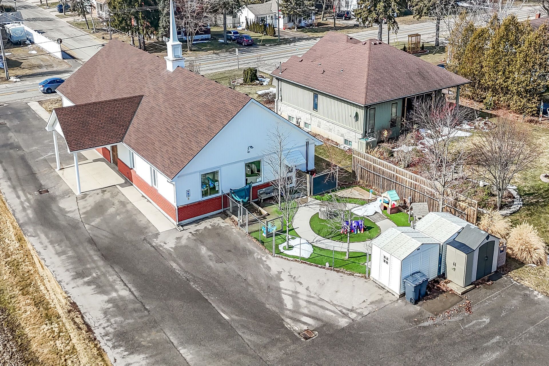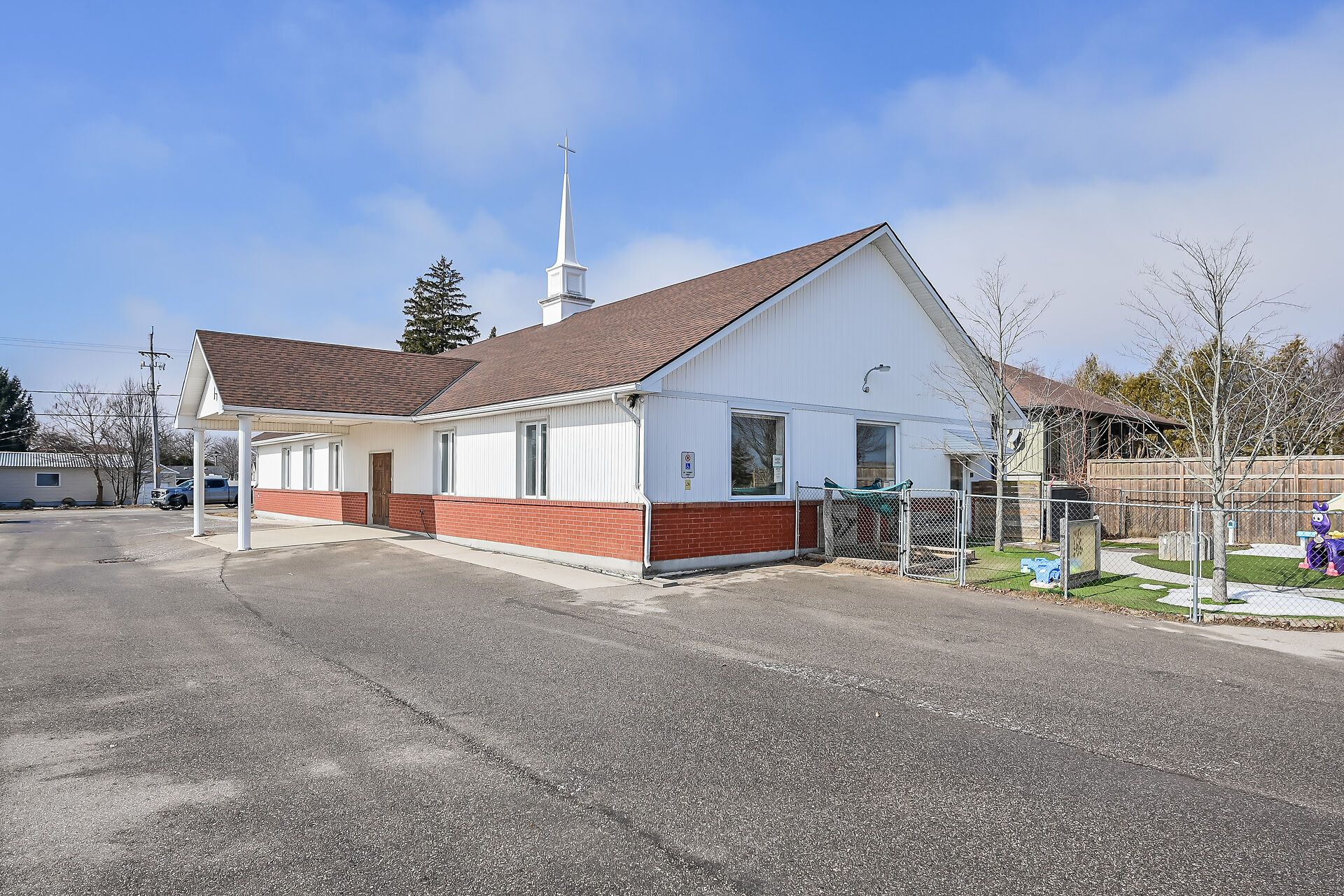 Prime institutional property in port rowan. Discover an exceptional opportunity in the heart of norfolk county, - over 3500 square feet of versitile building ideally suited for community-focused endeavours. Currently serving as a welcoming church, this property offers a blend of functionality, accessibility, and potential for a variety of institutional uses under norfolk county's zoning bylaws. Large main assembly area perfect for gatherings, services, or events, complemented by ancillary rooms that could serve as offices, classrooms, or storage. Built to institutional standards, with ample natural light, high ceilings in the primary space, and essential amenities including restrooms, a kitchenette, and dual hvac systems to ensure comfort year-round. Situated on a generous lot with parking, daycare fenced outdoor area with access to the main building. Easy access via major roads, making it convenient for visitors from across the county. Whether you're looking to continue its religious heritage, repurpose it for educational programs, or transform it into a vibrant community hub, this building represents a rare find in a growing region.