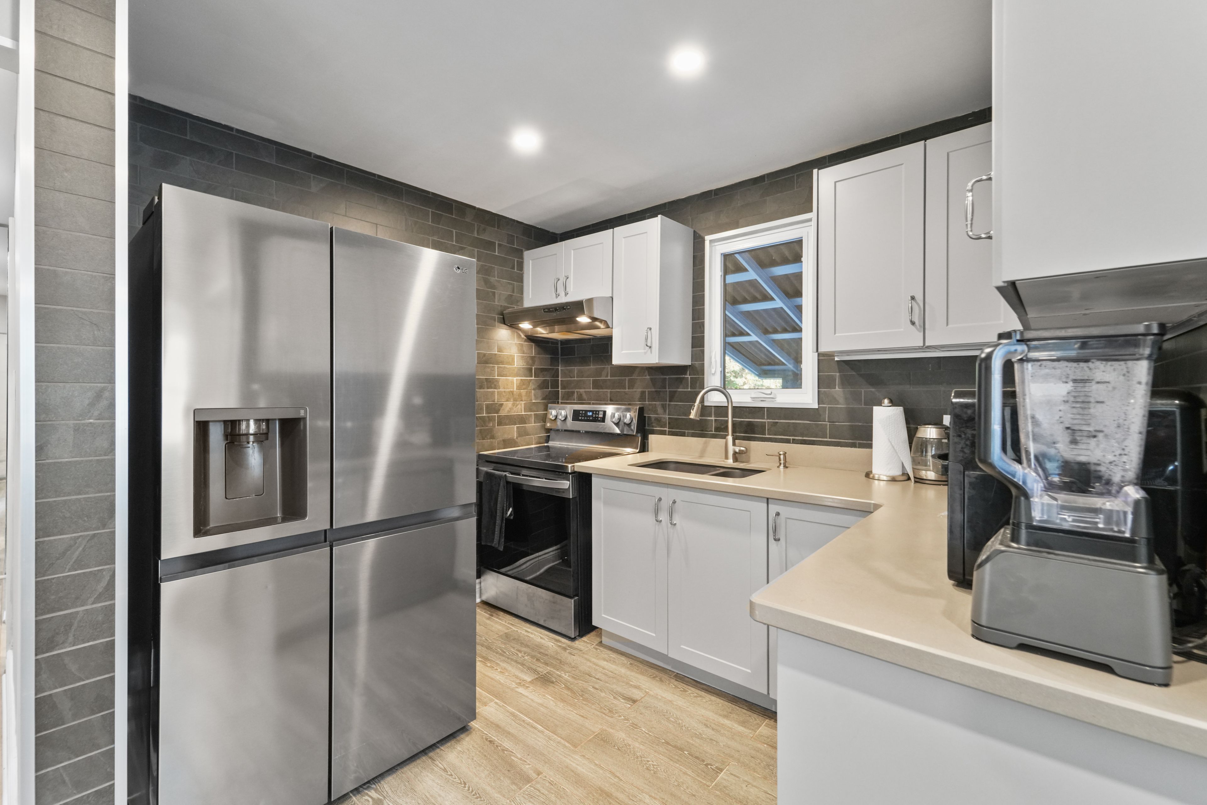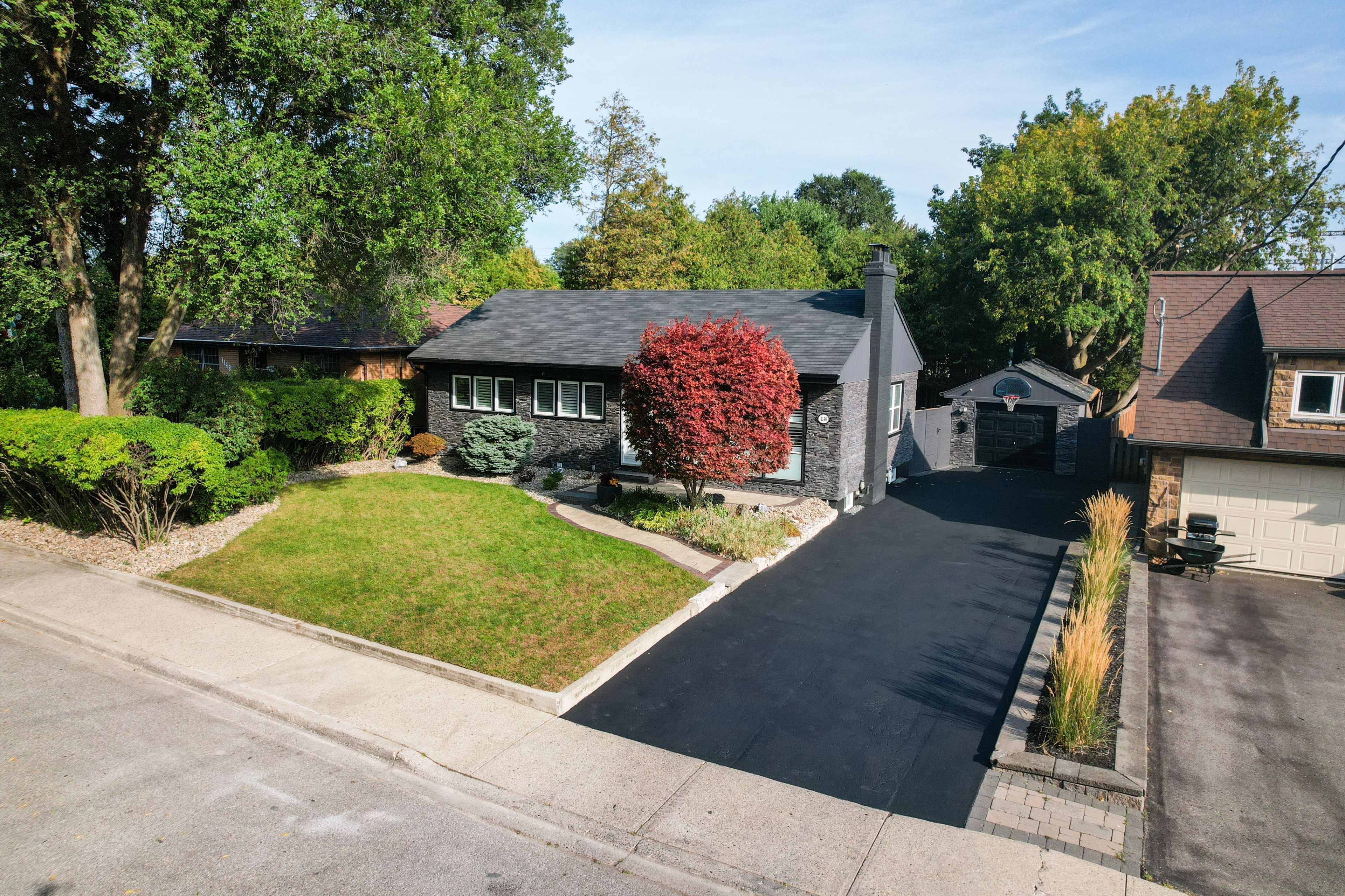 Welcome home to this exquisitely renovated bungalow, perfectly situated in the lakeview community, just a short commute from sherway gardens, dixie outlet mall, excellent schools, waterfront parks, and more. As you enter, you are greeted by an open-concept floor plan featuring sleek, waterproof, and scratch-proof laminate flooring, complemented by expansive windows that flood this lovely home with natural light. The dining area seamlessly blends with the living room, where a wood fireplace creates an inviting ambiance for cozy gatherings and relaxation. The heart of the home is the charming kitchen, equipped with modern stainless steel appliances, a breakfast bar, and sleek quartz countertops. On the main level, you'll find the owner's suite and two additional bedrooms, each with their own closets and a shared 4-piece bath. The spacious basement boasts a large rec room illuminated by pot lights, a 4-piece bath, a bedroom perfect for guests or extended family, and a laundry room. Step outside to the beautifully manicured backyard retreat, showcasing a stunning pressure-treated wood deck and a beachcomber hot tub that comfortably seats 4-6 people, offering a serene escape after a long day. This charming residence blends style, comfort, and practicality, complete with a detached garage and long driveway providing 4 parking spots! **extras** optimal location with close proximity to the upcoming vibrant lakeview village. A quick commute to downtown toronto via the qew or long branch go, unique shops, parks, waterfront trails, pearson airport and esteemed public/private schools.