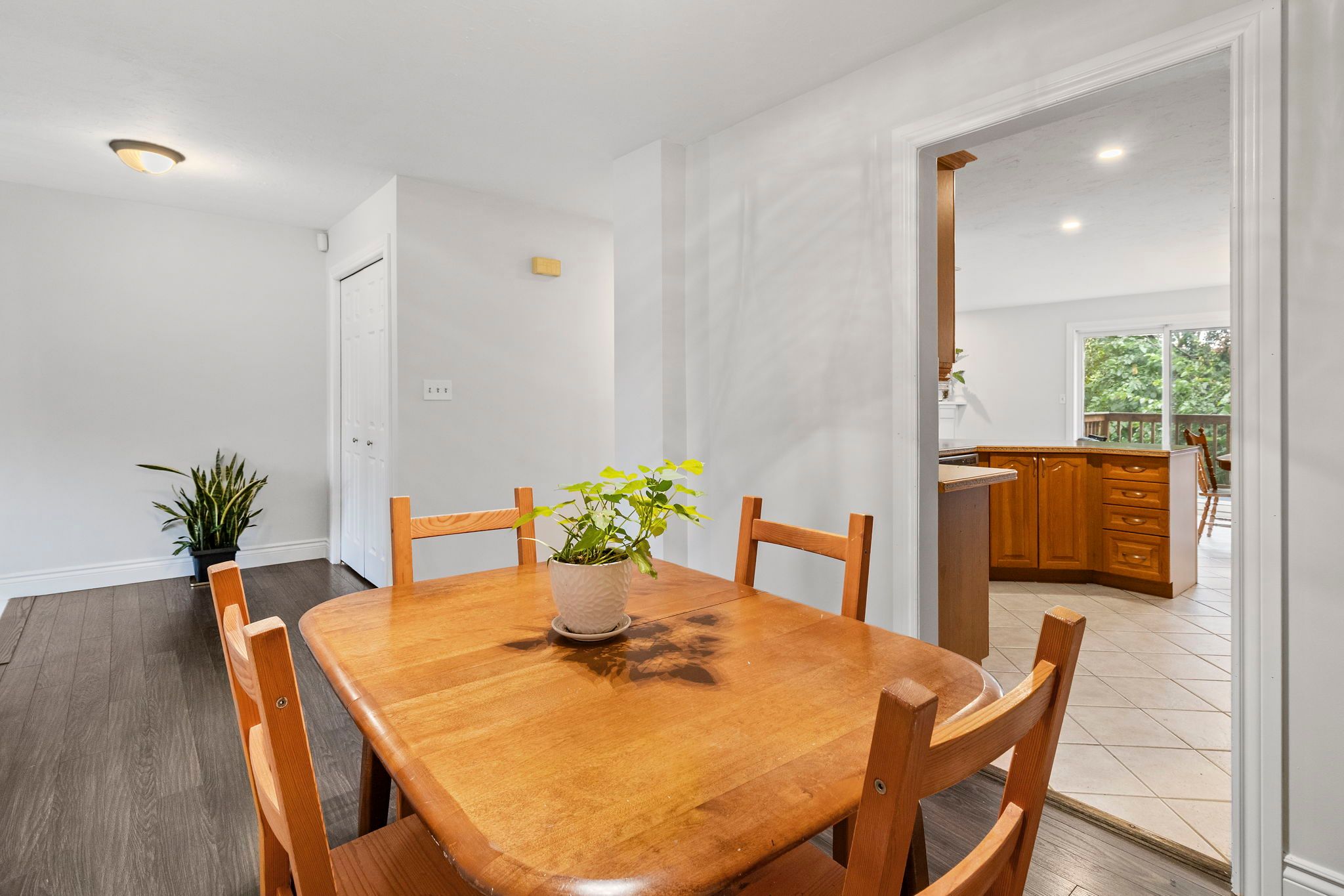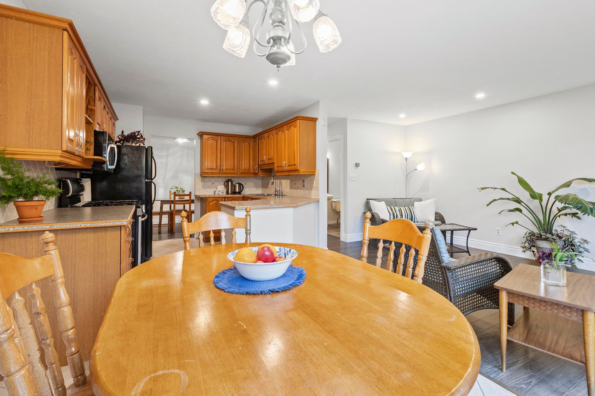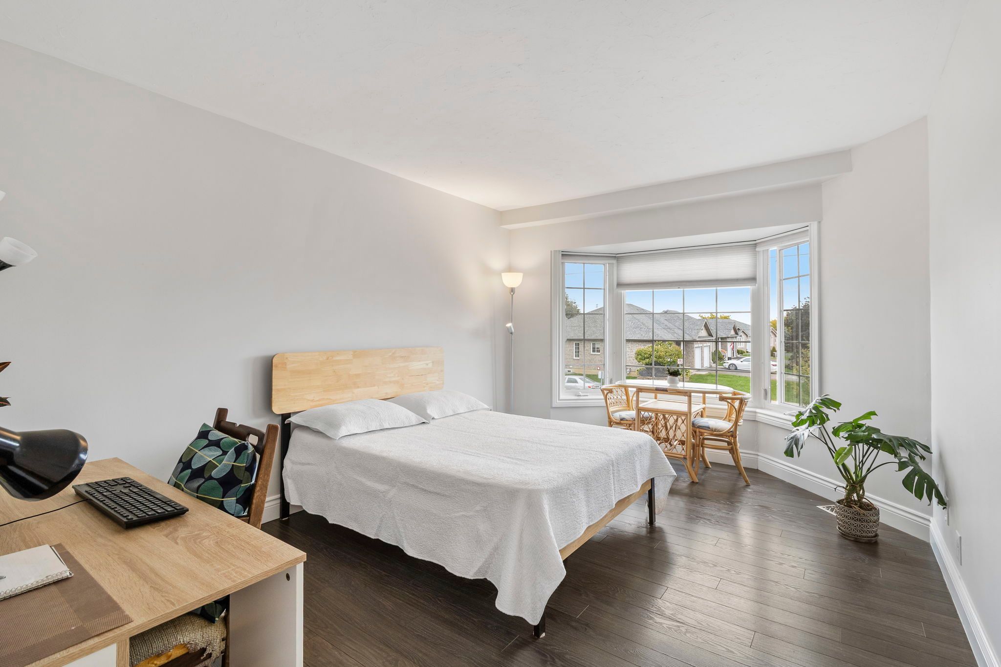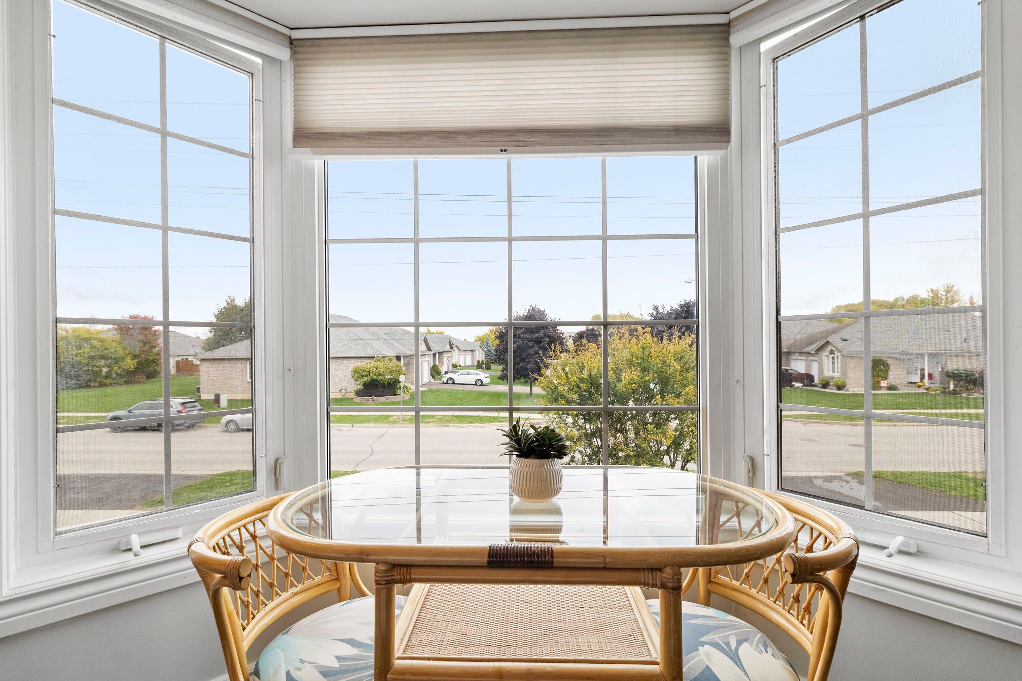 The expression "don't judge a book by its cover" applies here! These bright and spacious executive townhomes will surprise you with over 2300 sf of finished living space over 3 levels. A main floor triple patio door to a balcony and a ground level patio door to the beautiful backyard. With many large updated vinyl windows (2 walk-in bow picture windows) there is plenty of natural light throughout. The front yard has been developed with attractive gardens edged with beautiful stone edging. The foyer has a beautiful custom ceramic tile inlay you will love. The main floor boasts an oak kitchen with plenty of storage, a wine rack, pullout drawers, custom pullout pantry, under cabinet lighting, gas stove and new microwave range hood. The kitchen peninsula keeps you connected with family/guests enjoying the dining or the family room which features a natural gas fireplace & mantel. The spacious main floor living room can be used as a bedroom or home office. The main floor large 2pce bathroom is so convenient. Upstairs boasts a massive primary bedroom with walk-in closet and 4pce ensuite, two more spacious bedrooms with double closets and another 4pce bath. Updated quality flooring throughout the main and second floors and a beautiful hardwood staircase with attractive iron railings too. The lower level provides access from your single car garage into a generous mudroom with 2 closets, a large l-shaped rec room with cozy natural gas fireplace and custom made built-ins/wainscoting/ceiling pot lights and generous sized laundry/utility room. Enjoy nature in your backyard with carefully designed perennial gardens/small trees - a calm peaceful surrounding - with mature trees in neighbouring yards that provide perfect privacy. Recently repainted so you can move right in. Carpet free. All appliances included. Economical nat. Gas heating costs ($90/month average). Great north-end location walking distance to schools (including st. Lawrence college) and amenities. Come see!