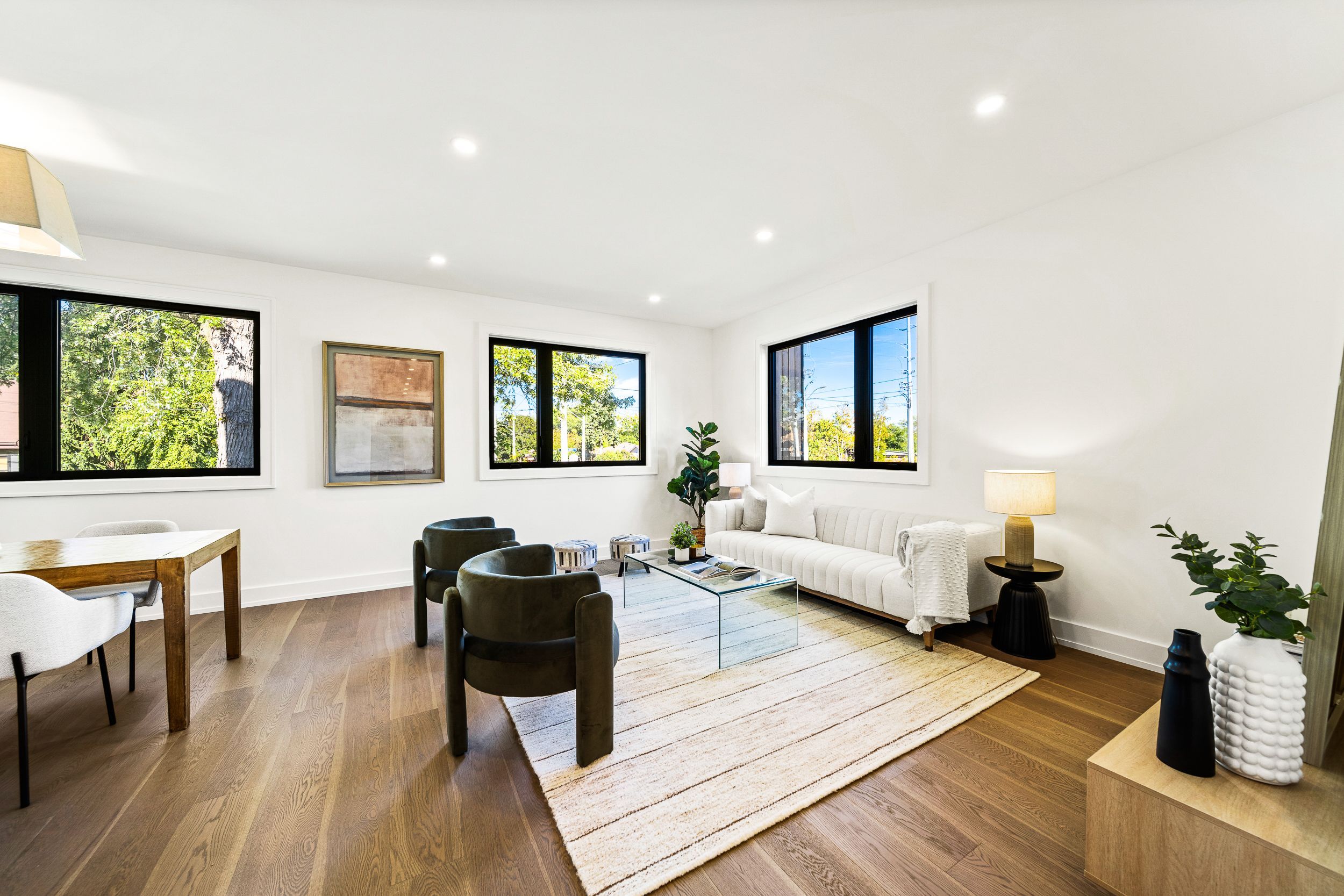 Stunning newly built custom home offering 4+1 bedrooms and 5 bathrooms with nearly 3,800 sq. Ft. Of luxury living in mississauga's desirable lakeview community. Situated on a wide 44x110 corner lot with striking curb appeal,this residence showcases a modern exterior with natural wood siding accents, exterior pot lighting,a full irrigation system with rain sensors, smart perimeter security cameras, and wifi digital locks. A built-in two-car garage with high-lift doors, mezzanine storage loft, universal ev charger, and a private drive for two more vehicles offer parking for four. Inside, elegant finishes include white oak flooring, designer large-format tiles, pot lights with dimmers, and motion sensor closet lighting throughout. The main floor features an open living and dining area with custom accent wall and sconces, a private office, and a designer powder room with custom mirrors,integrated strip lighting, and wall-hung toilet. The chefs kitchen is a true centerpiece with a quartz waterfall island, full quartz backsplash,wifi-enabled smart appliances, induction cooktop, wall oven, automatic heat-sensor hoodvent, pot filler, oversized sink with built-in racks, walk-in pantry with custom storage, and a coffee/bar station. A side mudroom with garage access completes the level. Upstairs, the primary retreat boasts two walk-in closets with integrated lighting and a spa-inspired ensuite with radiant heated floors, freestanding tub, wet-room shower, private water closet, wall-mounted faucets, and backlit mirrors. Three additional bedrooms include one with ensuite and walk-in closet, plus a shared bath. The finished lower level offers a large rec room, a bedroom and bathroom, plush carpet, generous storage, and an open-concept layout ideal for a recreation area or future secondary suite. Located minutes from lake ontario,lakefront promenade park, port credit go, the qew, and the exciting lakeview village redevelopment, this home blends modern luxury, lifestyle, and long-term value.