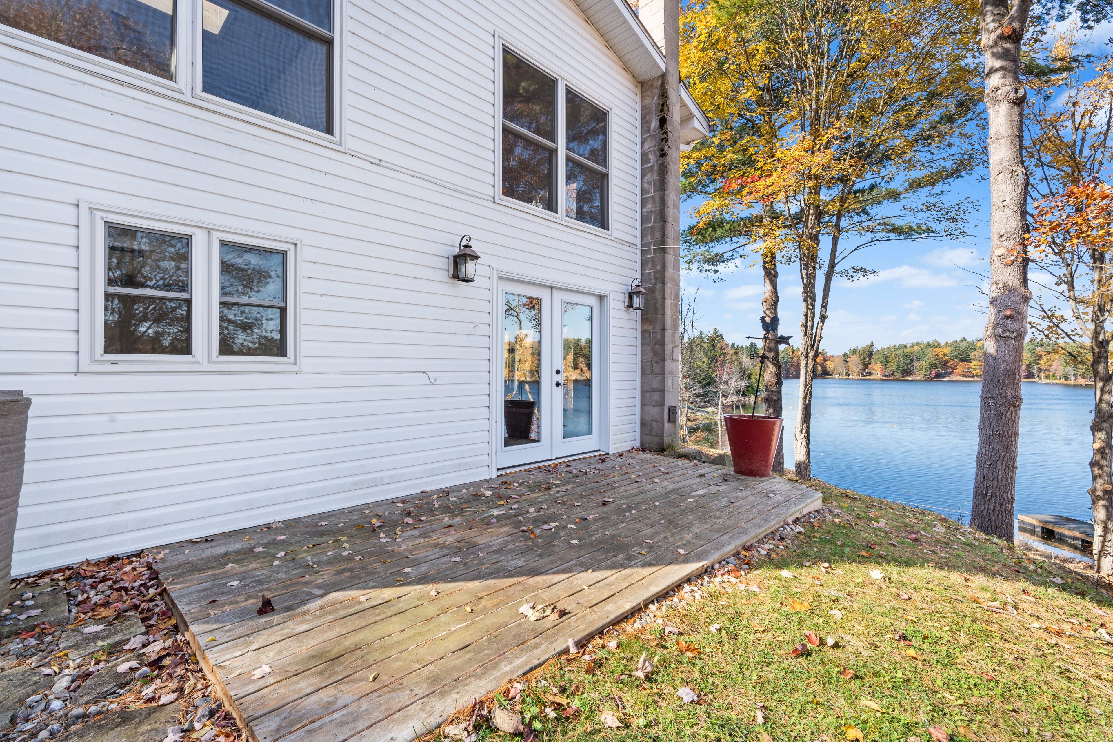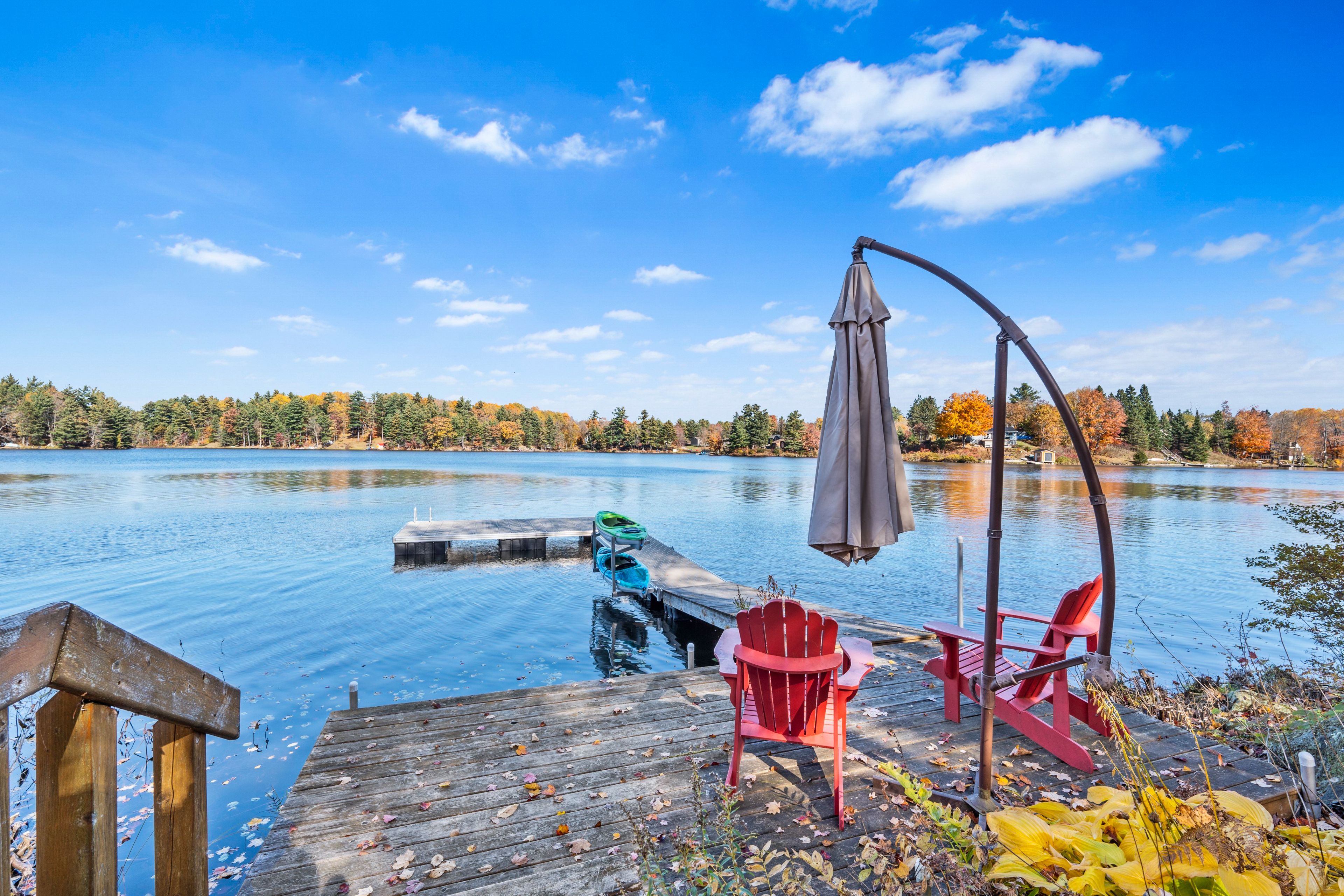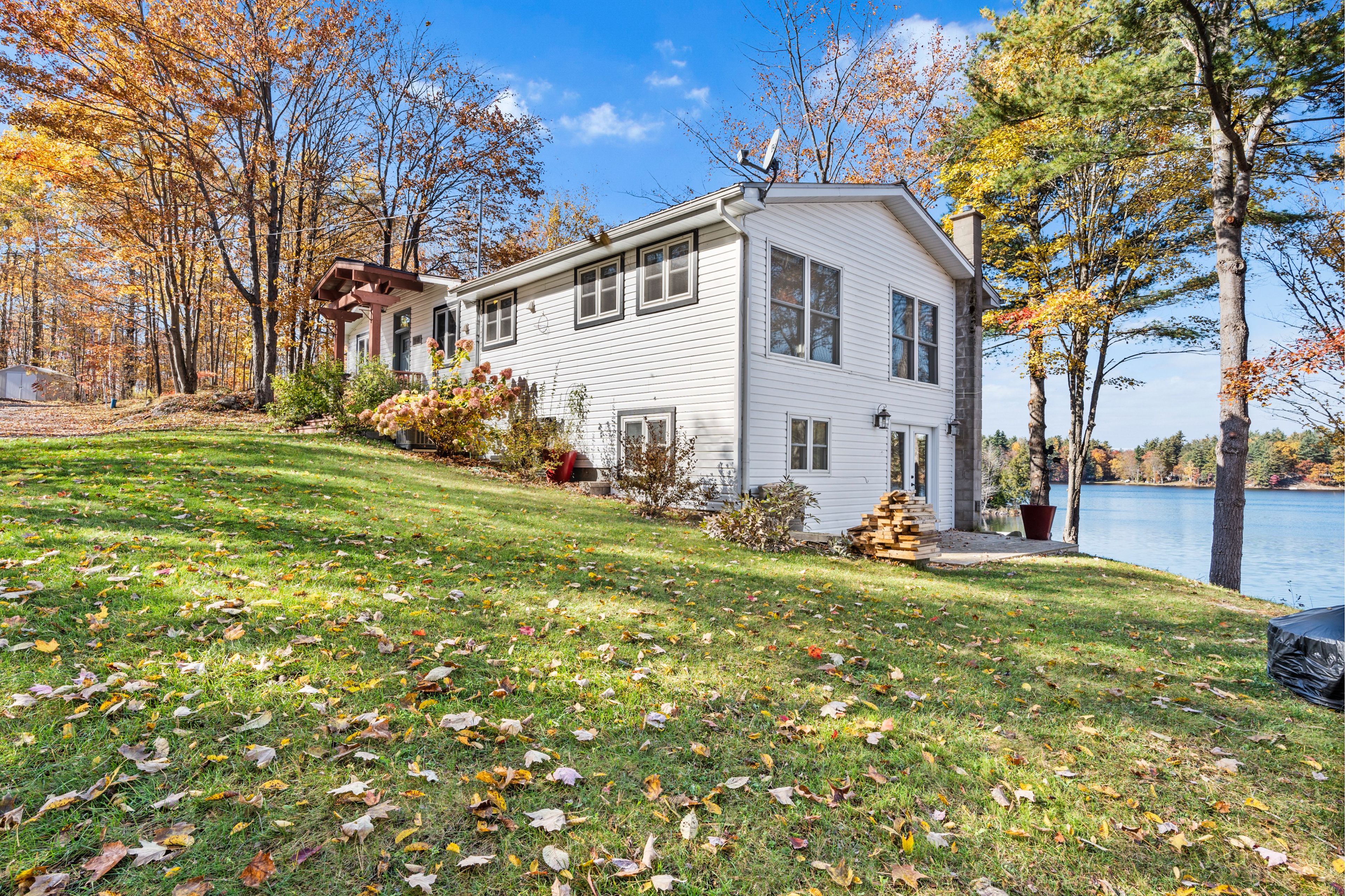 Welcome to your own slice of waterfront paradise on beautiful elbow lake. This beautifully updated bungalow sits on just over 140 feet of pristine shoreline, offering peaceful surroundings, mature trees, and stunning water views from nearly every room. Step inside to a gorgeous, fully updated kitchen featuring quartz countertops, a large island, and ample cupboard space-perfect for entertaining or everyday living. The kitchen flows seamlessly into the spacious three-season sunroom, wrapped in windows that showcase breathtaking views of the lake and filled with natural light. From here, step out onto the deck overlooking the water, an ideal spot for morning coffee or evening sunsets. The main level also offers convenient main floor laundry, a 4-piece bathroom, and comfortable dining and living spaces designed to capture the beauty of the waterfront setting. The primary bedroom is a peaceful retreat, complete with a walk-in closet and private 3-piece ensuite. The fully finished walk-out basement expands the living space with two additional bedrooms, a 2-piece bathroom, and a generous utility room with plenty of storage. Patio doors lead directly outside, making it easy to enjoy the lakefront lifestyle. Outdoors, the property is framed by large mature trees that provide privacy and natural beauty. Enjoy clean, deep water from the brand new dock, perfect for swimming, boating, or simply relaxing by the shore. A convenient bunkie offers additional space for guests, making weekend gatherings and summer visits effortless. Whether you're looking for a year-round home or the perfect waterfront getaway, this exceptional property delivers the ultimate elbow lake lifestyle.
