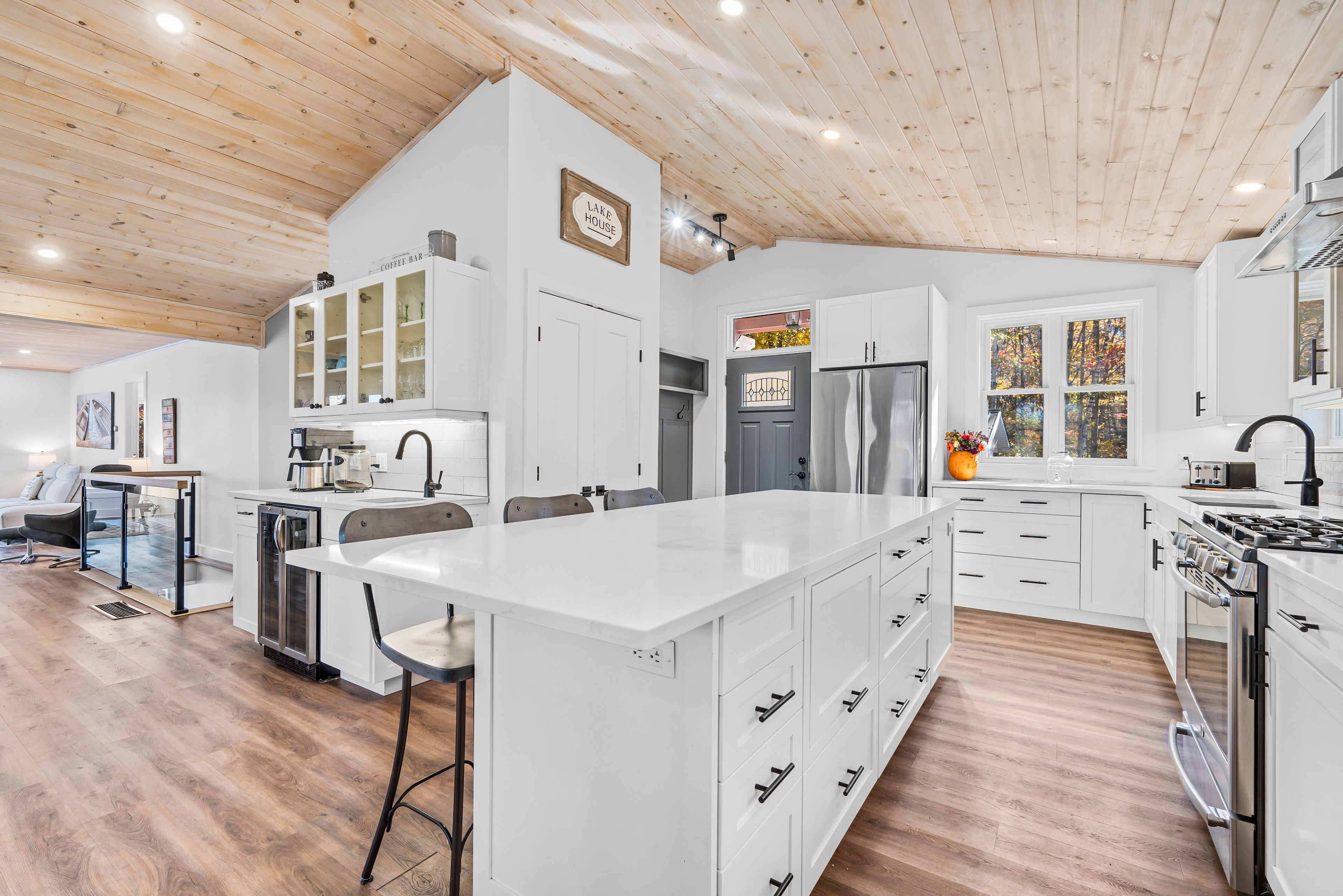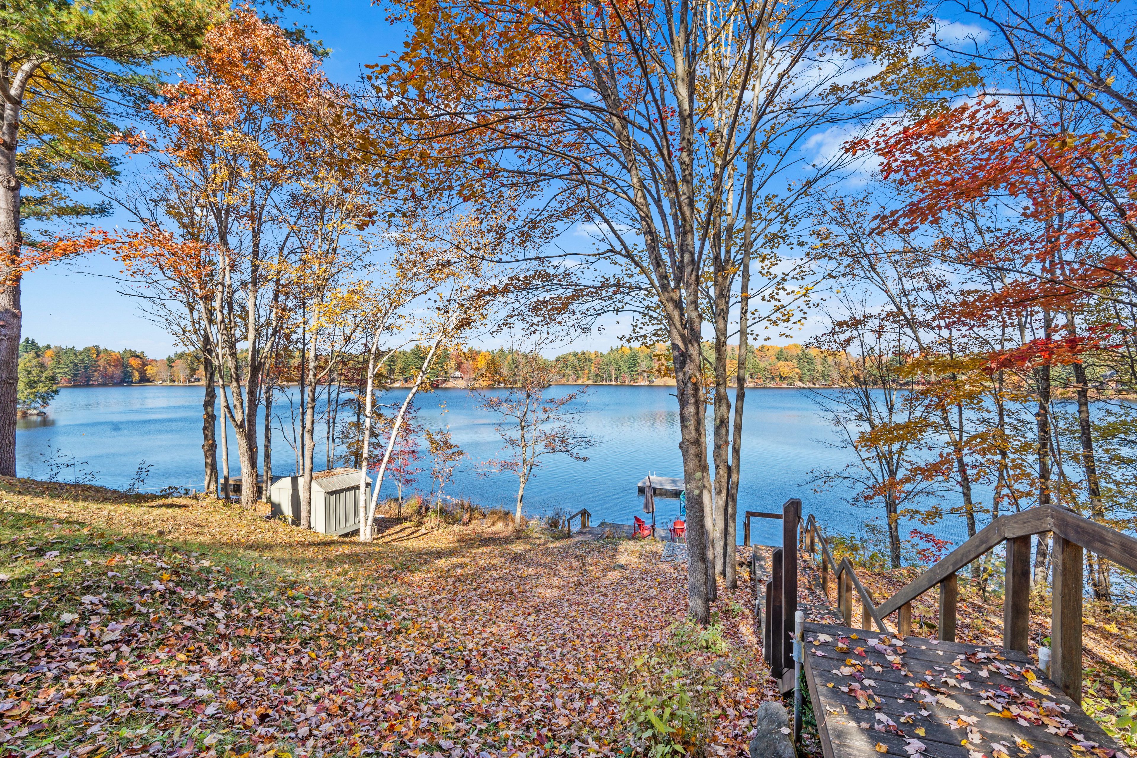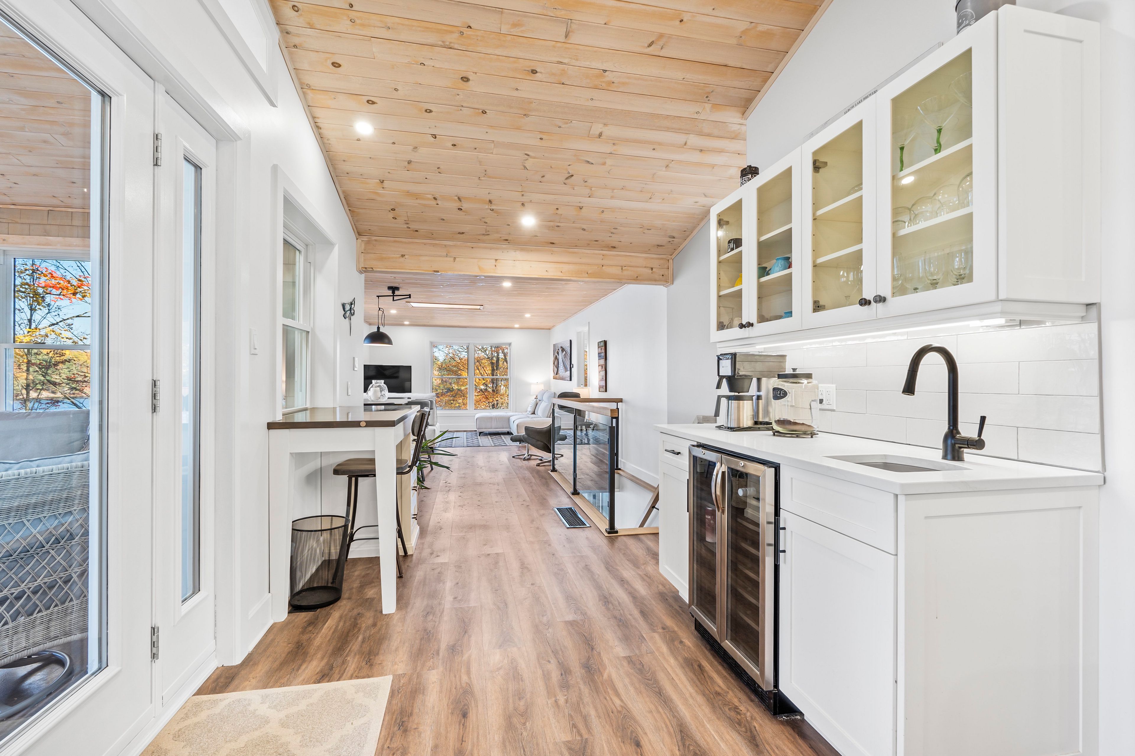 Welcome to your own slice of waterfront paradise on beautiful elbow lake. This beautifully updated bungalow sits on just over 140 feet of pristine shoreline, offering peaceful surroundings, mature trees, and stunning water views from nearly every room. Step inside to a gorgeous, fully updated kitchen featuring quartz countertops, a large island, and ample cupboard space-perfect for entertaining or everyday living. The kitchen flows seamlessly into the spacious three-season sunroom, wrapped in windows that showcase breathtaking views of the lake and filled with natural light. From here, step out onto the deck overlooking the water, an ideal spot for morning coffee or evening sunsets. The main level also offers convenient main floor laundry, a 4-piece bathroom, and comfortable dining and living spaces designed to capture the beauty of the waterfront setting. The primary bedroom is a peaceful retreat, complete with a walk-in closet and private 3-piece ensuite. The fully finished walk-out basement expands the living space with two additional bedrooms, a 2-piece bathroom, and a generous utility room with plenty of storage. Patio doors lead directly outside, making it easy to enjoy the lakefront lifestyle. Outdoors, the property is framed by large mature trees that provide privacy and natural beauty. Enjoy clean, deep water from the brand new dock, perfect for swimming, boating, or simply relaxing by the shore. A convenient bunkie offers additional space for guests, making weekend gatherings and summer visits effortless. Whether you're looking for a year-round home or the perfect waterfront getaway, this exceptional property delivers the ultimate elbow lake lifestyle.