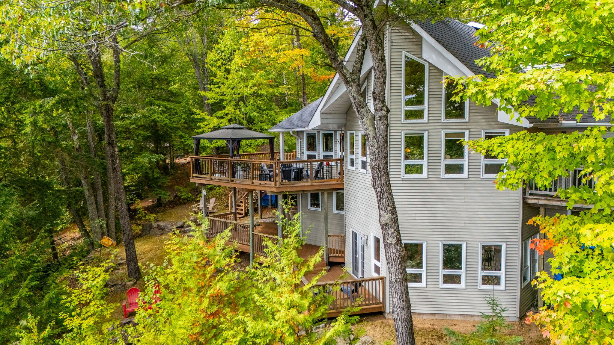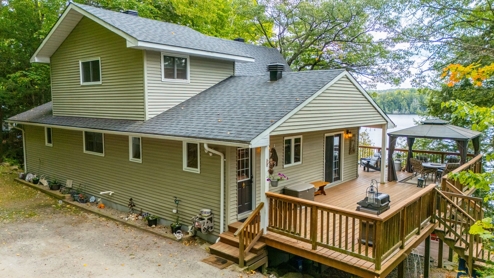 4 bedroom year round cottage with over 160 feet of waterfront on paudash lake! Experience the ultimate cottage life with this incredible, four-level, four-bedroom, two-bathroom retreat on the pristine shores of paudash lake. Main floor kitchen and dining room open up to a wonderfully large living room with vaulted ceilings and plenty of lakefront windows to enjoy the scenery. Master bedroom has a 4-piece ensuite, walk in closet and deck that overlooks the water. Guest bedroom is on the main level with two extra bedrooms in the loft with a designated office space. With three separate living rooms, this lakefront home is perfect for large families or groups as it offers space, comfort, and spectacular views that will take your breath away. Step out onto the large, deck-your new favourite spot for morning coffee, sunset cocktails, or grilling up dinner -it's the perfect outdoor entertaining space! Lower family room has a walkout where you can head down the stone steps to yet another deck with a large dock that is nicely tucked into a private bay on the lake. Paudash lake is known for its clear waters and natural beauty, offering a peaceful yet engaging cottage experience. Located close to bancroft, you have easy access to supplies and charming local amenities as well as many parks and atv trails to explore. This is your chance to own a true lakeside escape where memories are made. Don't let this sought-after, move-in-ready cottage slip away!
