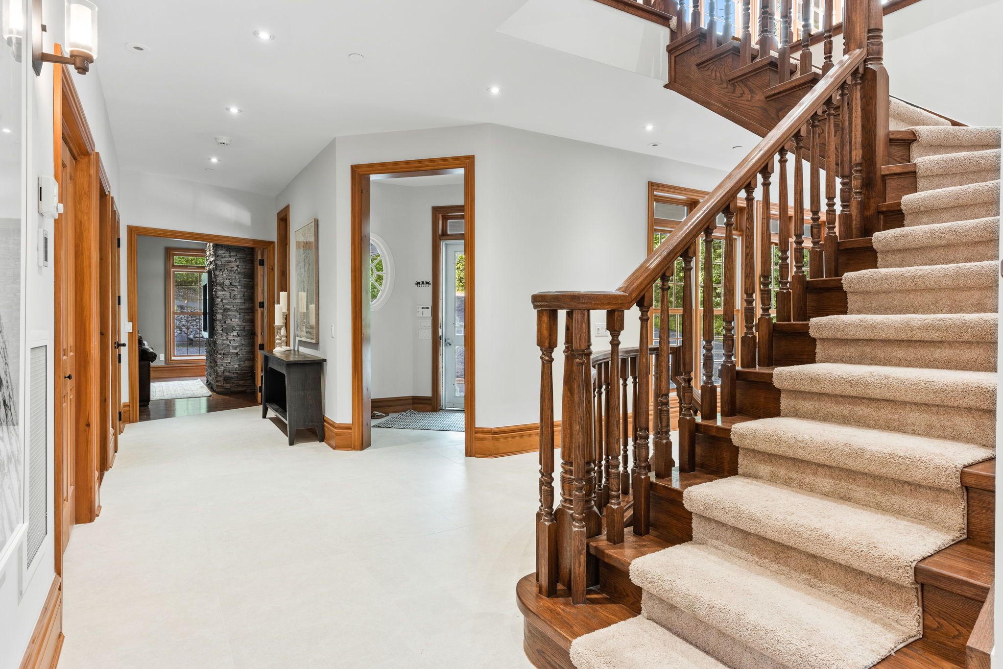 A once-in-a-generation offering on prestigious boshkung lake in the haliburton highlands, this private estate blends luxury waterfront living with distinguished equestrian amenities. With over 100 acres, 440 feet of deep clean shoreline, and 7000 sq ft of thoughtfully designed space, this exceptional property offers privacy, sophistication, and natural beauty. The custom home features 4 bedrooms, including a show-stopping primary suite with fireplace, soaker tub overlooking the water, an exceptional walk-in closet, and a private deck with sweeping lake views. The elegantly appointed eat-in kitchen is a true centrepiece featuring premium appliances, custom cabinetry, expansive prep surfaces, and a sunlit breakfast area perfect for casual dining. A butlers pantry adds function and flair for effortless entertaining. The kitchen opens to an expansive dining room with additional seating and a striking fireplace, ideal for memorable gatherings. Multiple living areas throughout offer spectacular water views, and walkouts lead to maintenance-free decking that extends living space outdoors. The property features several outdoor lounging, dining, recreation and entertaining areas designed to maximize lakefront serenity and privacy. A media/games room with wet bar, home gym, and generous indoor-outdoor flow enhance year-round living. For the discerning equestrian, the estate includes a 70 x 140 indoor riding arena, multiple paddocks, and well-appointed stalls, providing the infrastructure for year-round riding, training, and care. Private trails wind through the forested acreage ideal for horseback riding, hiking, or peaceful exploration. With a 4-car garage, beautifully landscaped grounds, and complete privacy, this rare waterfront estate unites refined living, outdoor recreation, and timeless elegance in one of ontarios most coveted lakefront settings.