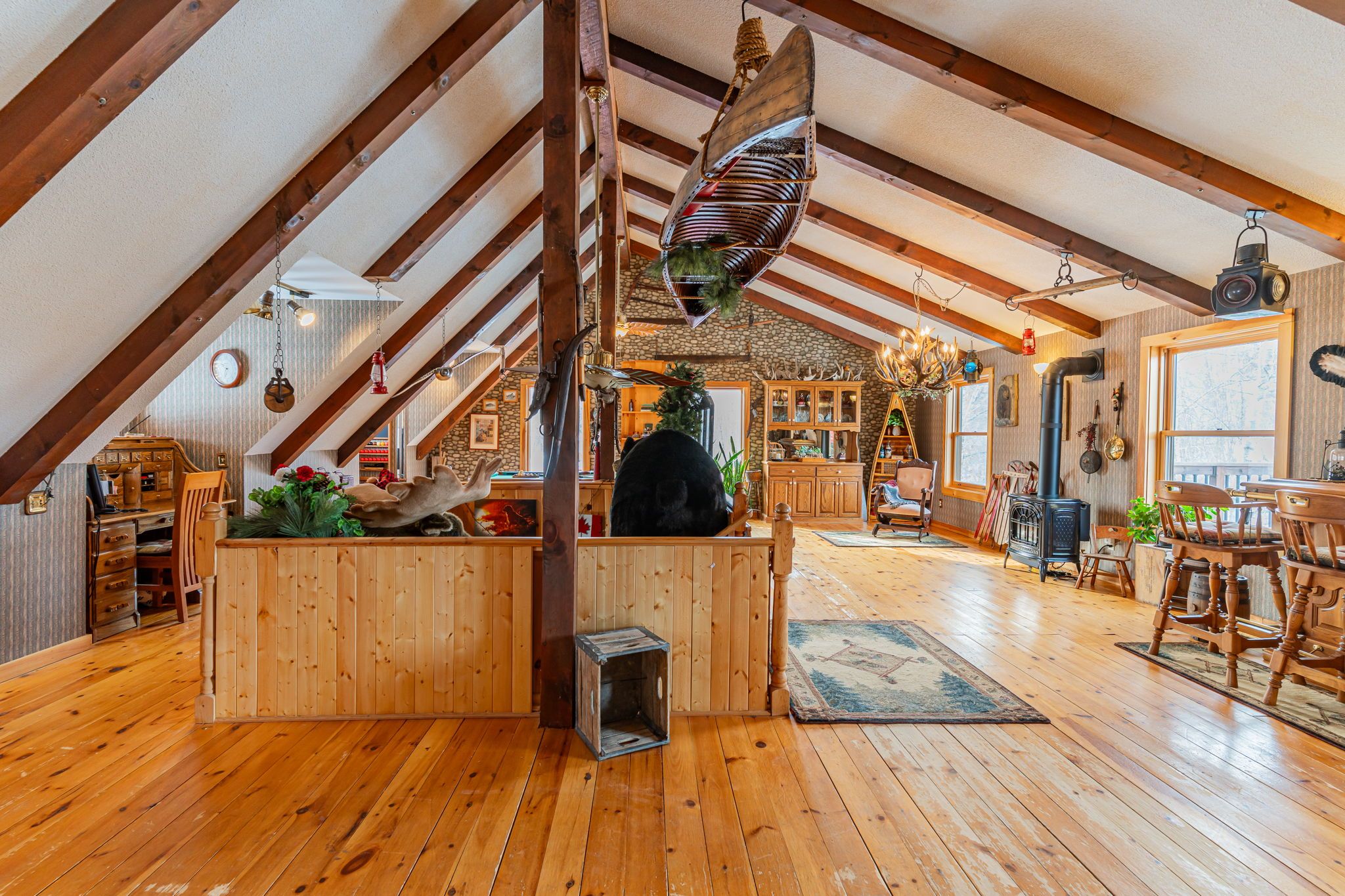 Let your imagination run wild with this iconic building set in the heart of west guilford - this is the perfect location for your dream business! Visitors and locals alike know this special building with excellent roadside exposure. Zoned ch (commercial highway), this property offers a myriad of uses and provides high visibility on a main artery through cottage country. Just a few suggestions for this versatile property - restaurant, marine sales, landscaping, and more. A beautiful quality log building offers 5,520 sq. Ft. Split over 3 levels. The main level is currently used as a store with a large living area upstairs that provides 2 bedrooms, full kitchen/eating room, washroom, living area, walkout to a deck, sunroom, additional office or entertainment space, and more. The lower level provides 1,758 sq. Ft. Of undeveloped space with a walkout to the back parking lot for deliveries. The building has been extremely well maintained with a newer metal roof, a great deck out the back (perfect for that cafe or restaurant), full security system, and so much more. A secondary driveway behind the building has a storage area, and gives parking for staff and room for big deliveries. All of this sits on an expansive 1. 23 acre lot that is lovingly manicured and offers expansion options. Driving through west guilford, you cannot miss it, and neither can the thousands of cottagers heading to the cottage and local residents!