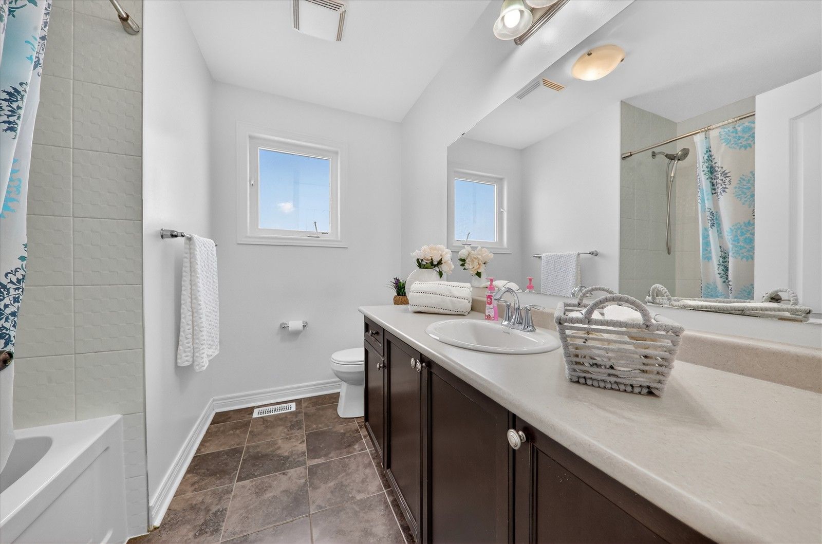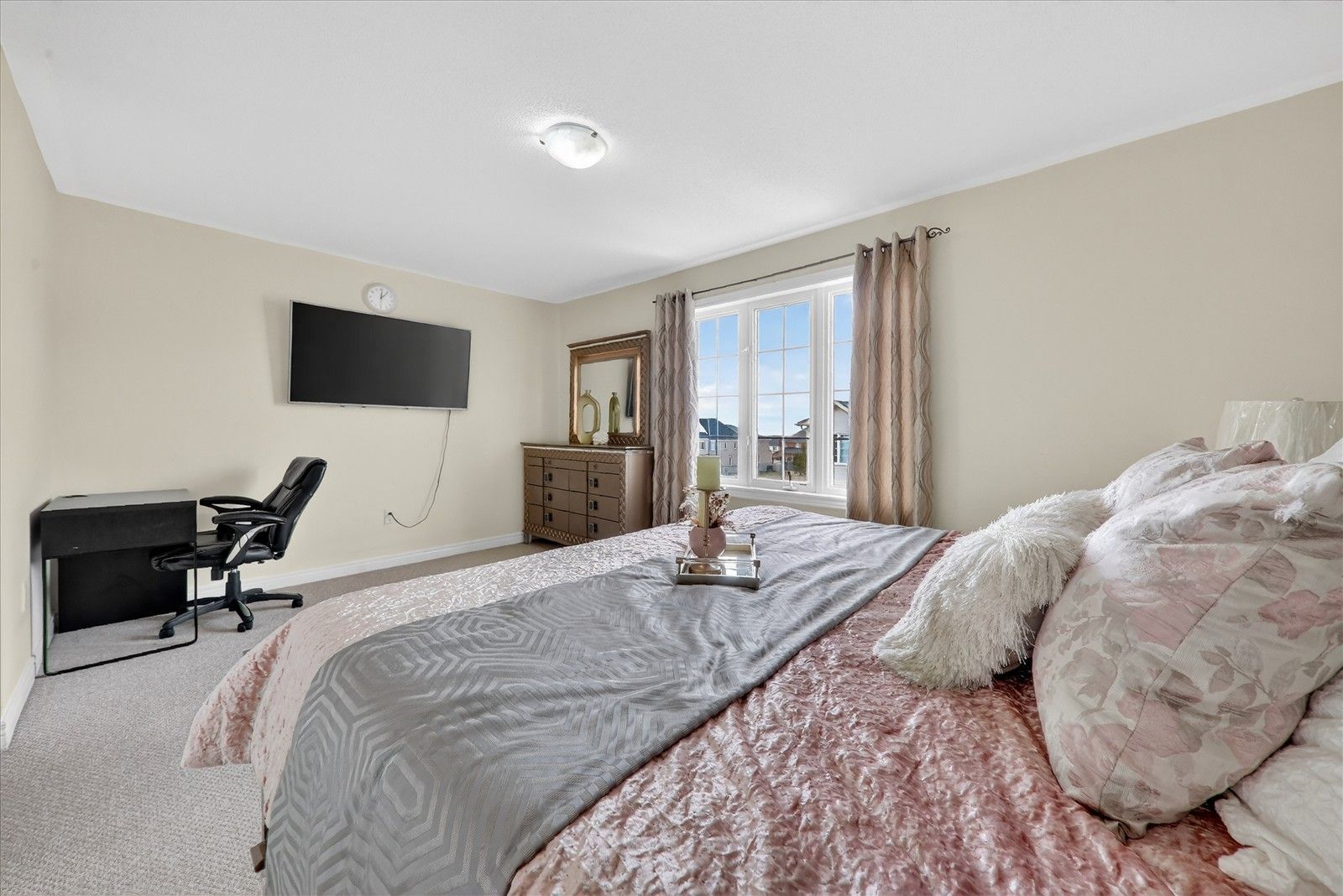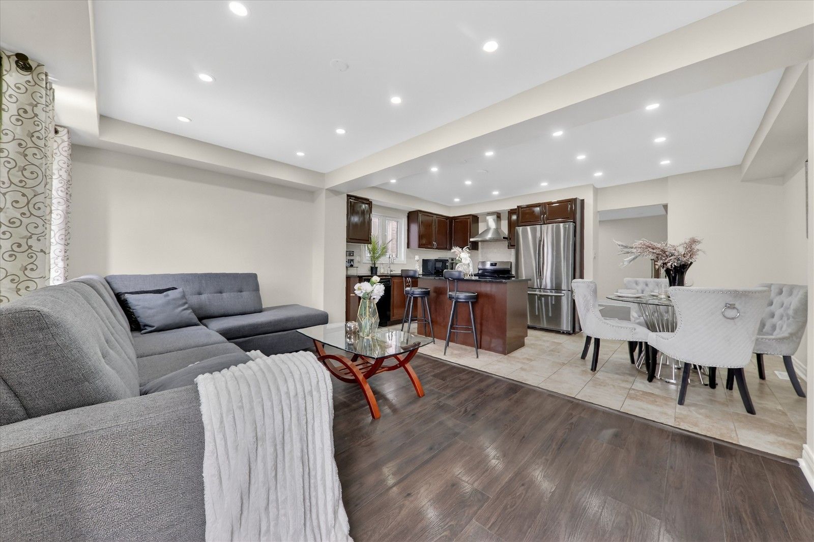 This beautiful former model home by great gulf homes offers nearly 2,000 sq. Ft. Of thoughtfully designed living space. This bright and spacious home features a modern open-concept layout perfect for comfortable family living and entertaining. The great room opens to a beautifully finished backyard with an interlock patio, creating the perfect space for outdoor gatherings. The upgraded kitchen showcases stylish cabinetry, quartz countertops, and plenty of storage. The main floor features laminate flooring throughout, and the entire home has been freshly painted with pot lights throughout, adding warmth and elegance. The large primary bedroom retreat includes his-and-hers walk-in closets and a luxurious 5-piece unsuited bathroom. Additional highlights: main floor laundry with direct garage access 3-car parking with no sidewalk. Located steps from oshawa smart centre, public transit, and highly rated schools, bonus income opportunity: the finished basement includes 2 bedrooms, 1 bathroom, and separate laundry, currently generating $1,300/month in rental income. Ev charger in garage.