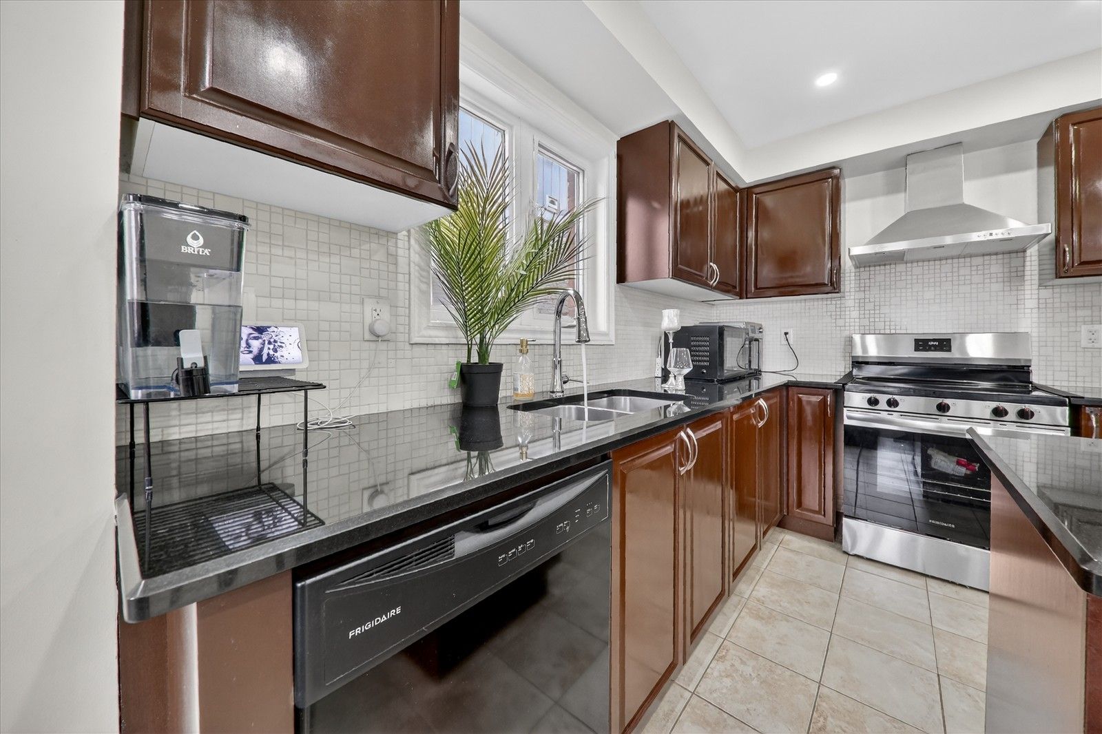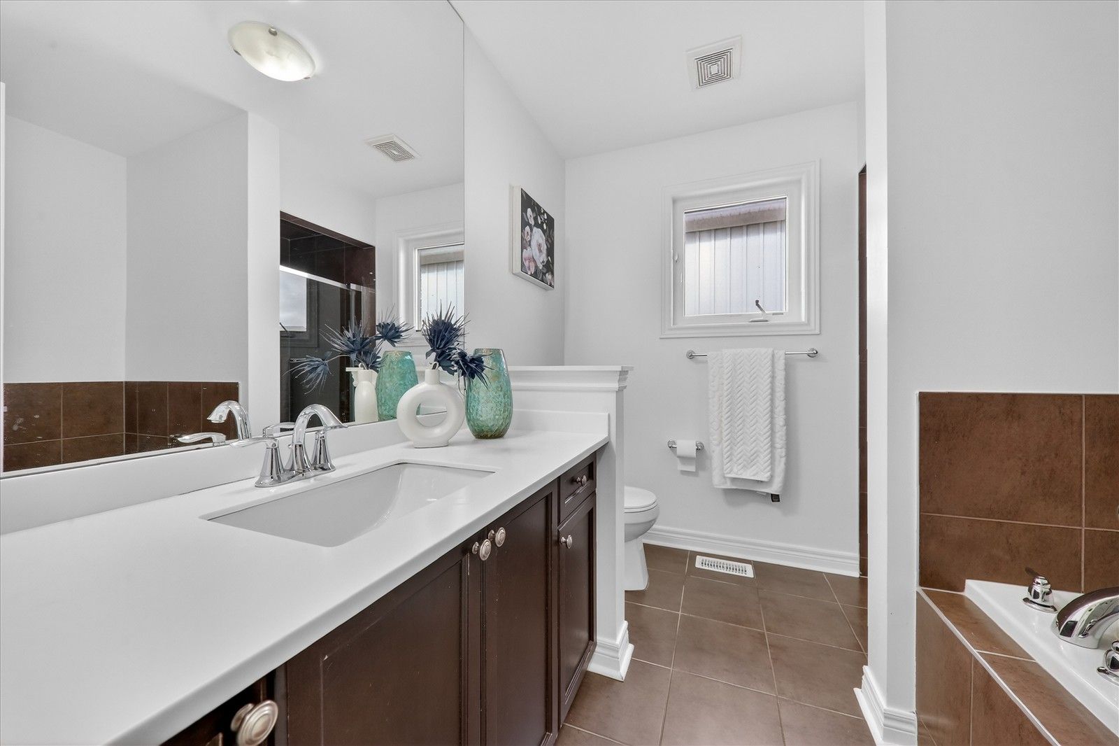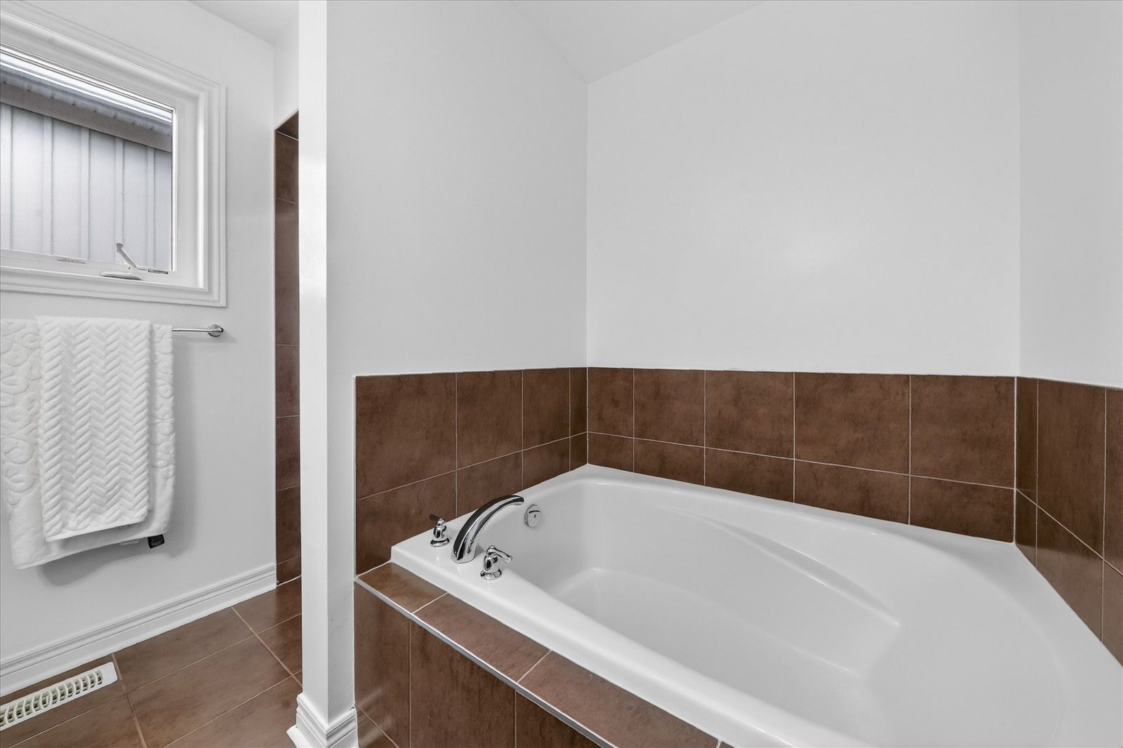 This beautiful former model home by great gulf homes offers nearly 2,000 sq. Ft. Of thoughtfully designed living space. This bright and spacious home features a modern open-concept layout perfect for comfortable family living and entertaining. The great room opens to a beautifully finished backyard with an interlock patio, creating the perfect space for outdoor gatherings. The upgraded kitchen showcases stylish cabinetry, quartz countertops, and plenty of storage. The main floor features laminate flooring throughout, and the entire home has been freshly painted with pot lights throughout, adding warmth and elegance. The large primary bedroom retreat includes his-and-hers walk-in closets and a luxurious 5-piece unsuited bathroom. Additional highlights: main floor laundry with direct garage access 3-car parking with no sidewalk. Located steps from oshawa smart centre, public transit, and highly rated schools, bonus income opportunity: the finished basement includes 2 bedrooms, 1 bathroom, and separate laundry, currently generating $1,300/month in rental income. Ev charger in garage.