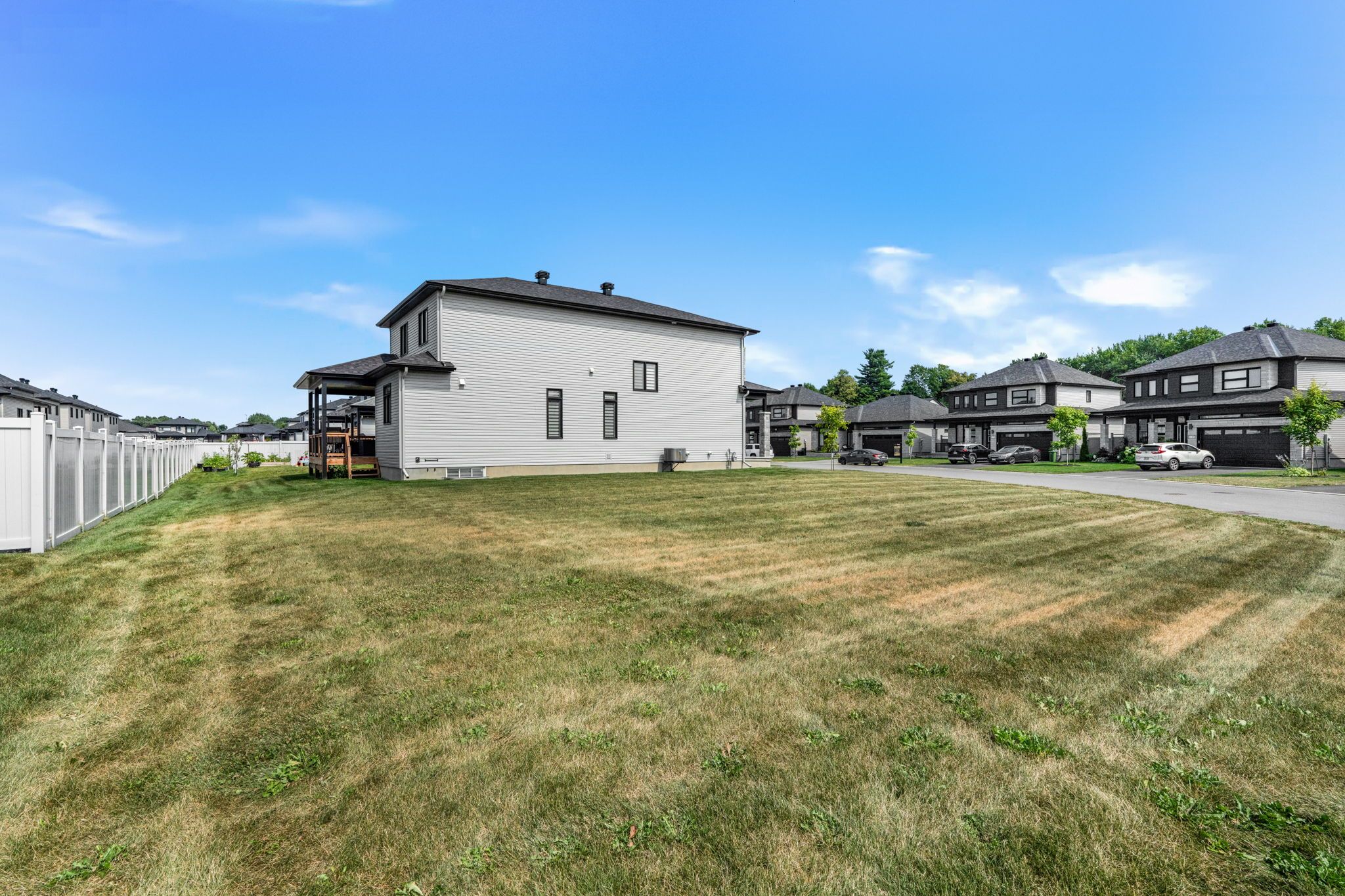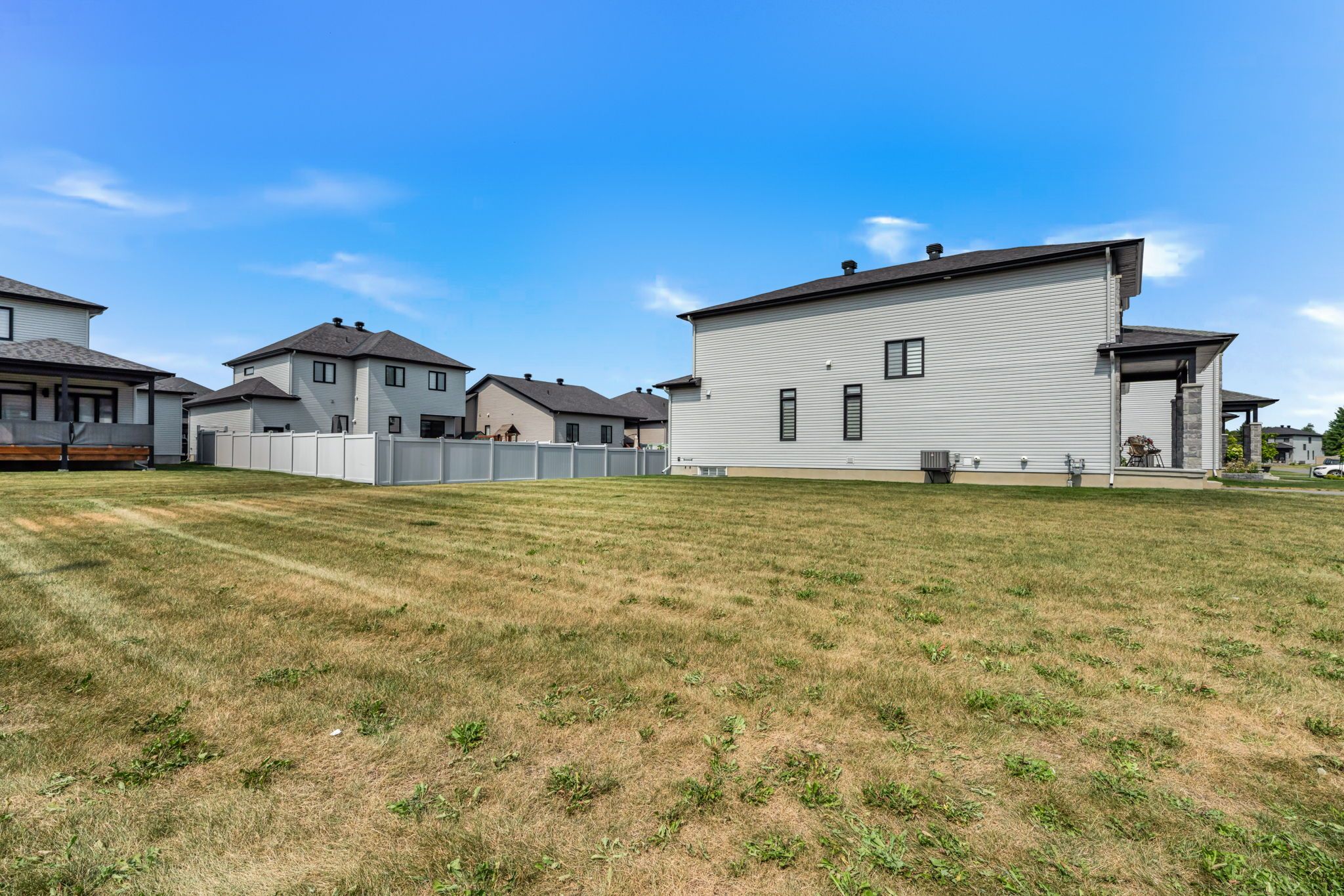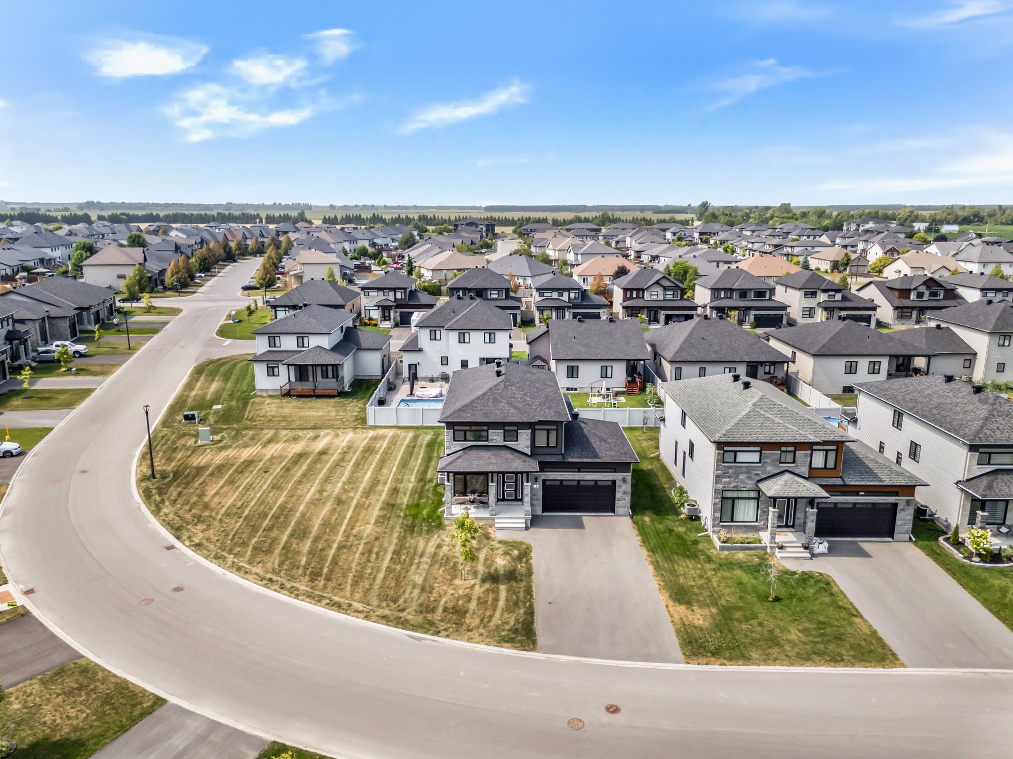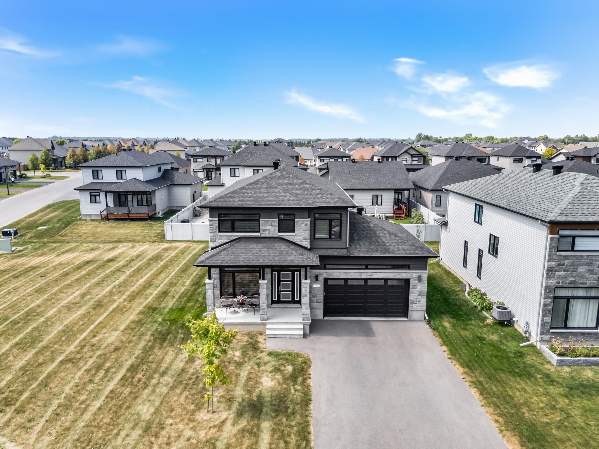 Stunning modern home on oversized corner lot in embrun! Welcome to your dream home, perfectly nestled on an oversized 184-ft corner lot in one of embruns most sought-after neighbourhoods! This beautifully designed property offers high-end finishes, incredible living space, and a layout tailored for modern comfort and style. Step inside to discover a bright, open-concept main level that's both stylish and functional. The elegant dining area and cozy living room - complete with a charming fireplace and sun-filled windows - set the tone for warm gatherings and everyday living. The sleek, modern kitchen is a showstopper, featuring a sit-at island with a waterfall counter, abundant cabinetry, and premium finishes throughout. You'll also find a main floor office, garage access, and a convenient partial bathroom, ideal for busy households. The garage is fully finished, perfect for a home gym, workshop, or bonus living space. Upstairs, you'll find three spacious bedrooms, each with a walk-in-closet, and two bathrooms, including a luxurious primary retreat with a spa-like ensuite, boasting a glass shower, soaker tub, and double vanity. The basement offers an additional bedroom and potential for even more space with a rough-in for a bathroom already in place. Outside, enjoy summer evenings on your lovely backyard deck and take in the privacy and space of your generously sized yard, perfect for entertaining or relaxing. Located near parks, schools, and everyday amenities, this home truly has it all. Don't miss your chance to own this stunning property in the heart of embrun!