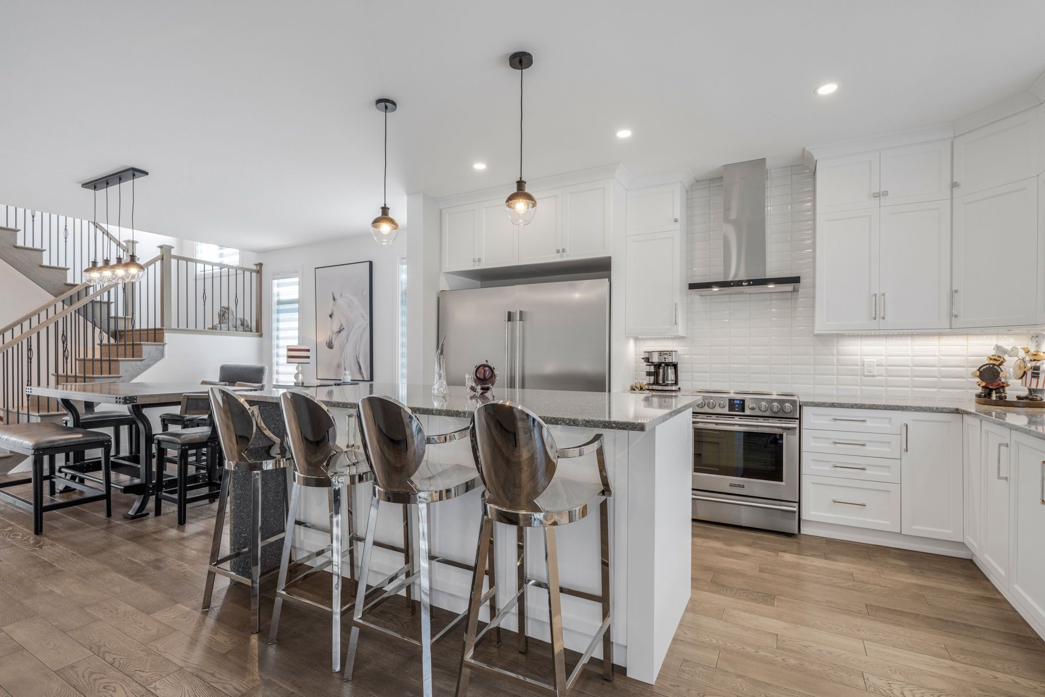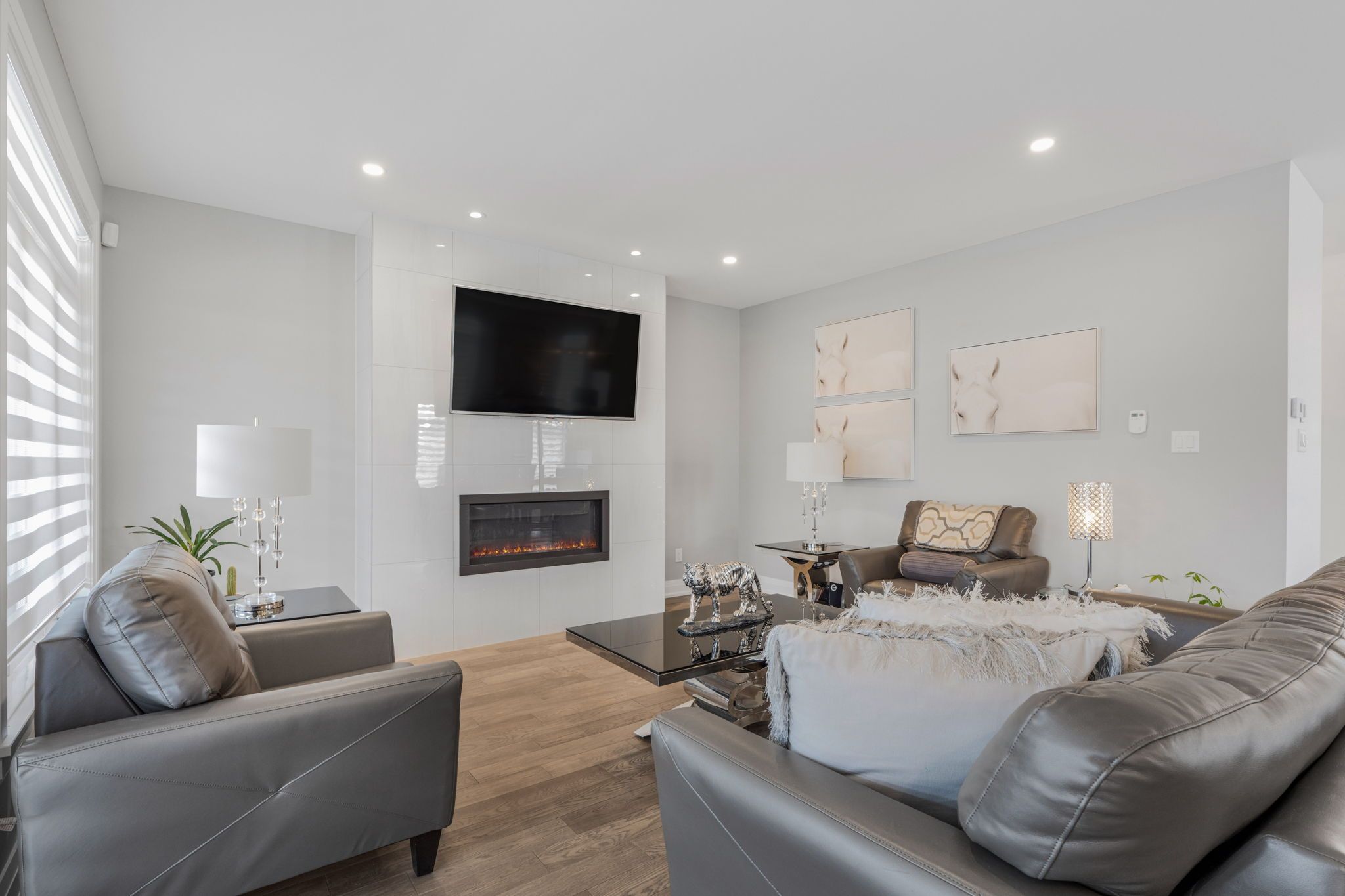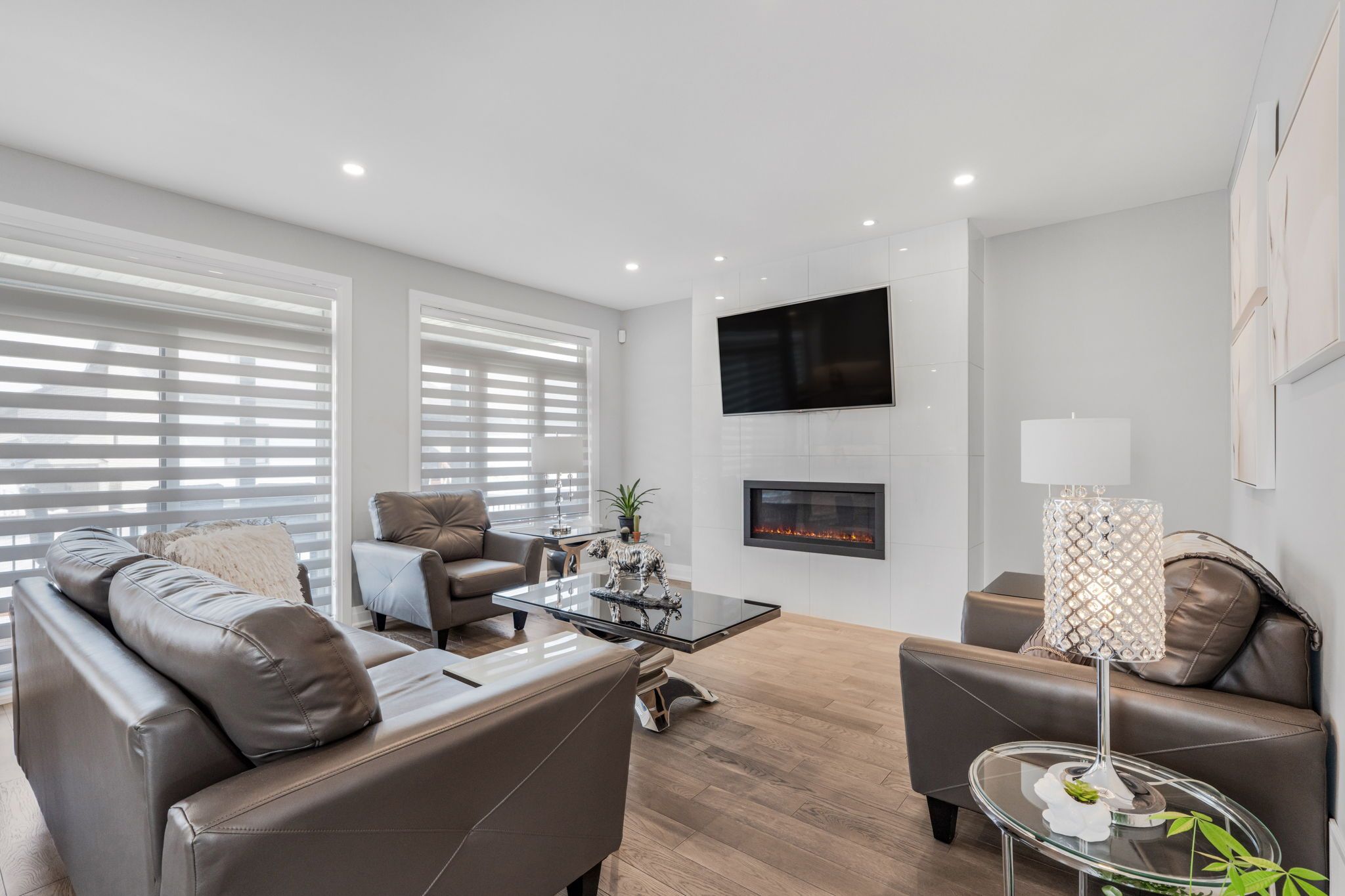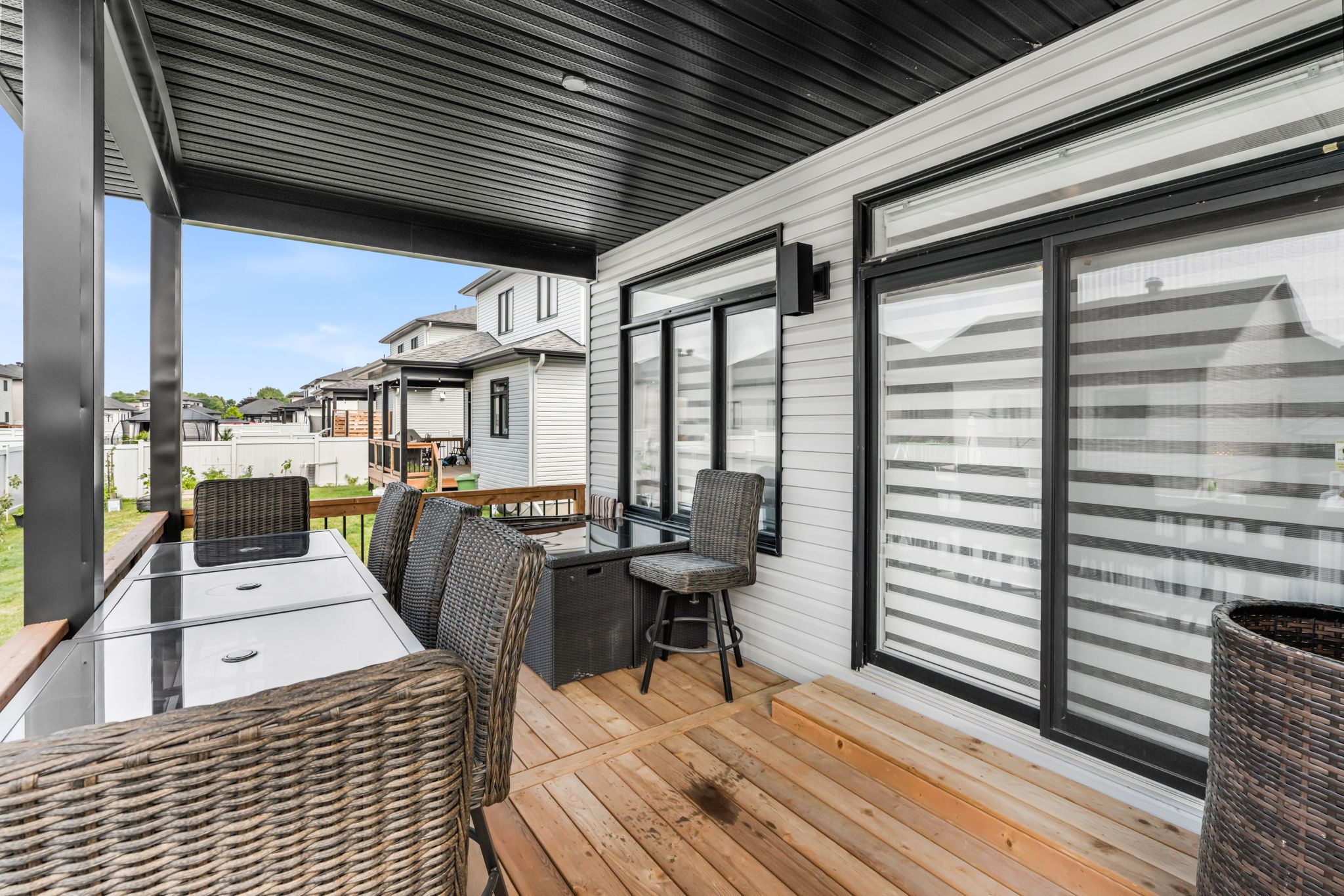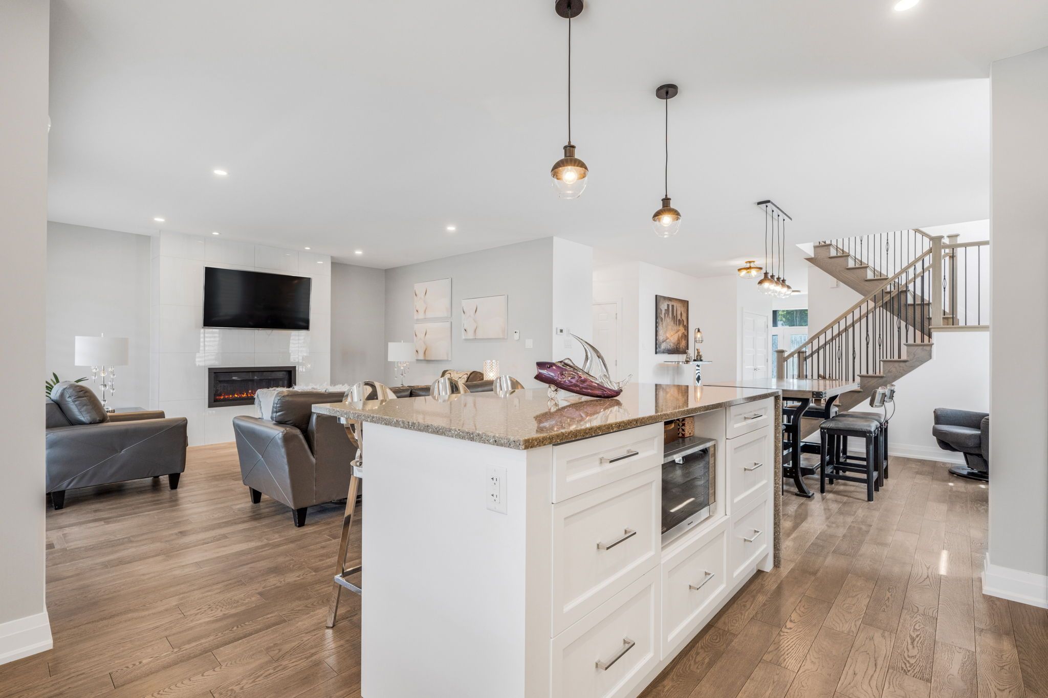 Stunning modern home on oversized corner lot in embrun! Welcome to your dream home, perfectly nestled on an oversized 184-ft corner lot in one of embruns most sought-after neighbourhoods! This beautifully designed property offers high-end finishes, incredible living space, and a layout tailored for modern comfort and style. Step inside to discover a bright, open-concept main level that's both stylish and functional. The elegant dining area and cozy living room - complete with a charming fireplace and sun-filled windows - set the tone for warm gatherings and everyday living. The sleek, modern kitchen is a showstopper, featuring a sit-at island with a waterfall counter, abundant cabinetry, and premium finishes throughout. You'll also find a main floor office, garage access, and a convenient partial bathroom, ideal for busy households. The garage is fully finished, perfect for a home gym, workshop, or bonus living space. Upstairs, you'll find three spacious bedrooms, each with a walk-in-closet, and two bathrooms, including a luxurious primary retreat with a spa-like ensuite, boasting a glass shower, soaker tub, and double vanity. The basement offers an additional bedroom and potential for even more space with a rough-in for a bathroom already in place. Outside, enjoy summer evenings on your lovely backyard deck and take in the privacy and space of your generously sized yard, perfect for entertaining or relaxing. Located near parks, schools, and everyday amenities, this home truly has it all. Don't miss your chance to own this stunning property in the heart of embrun!