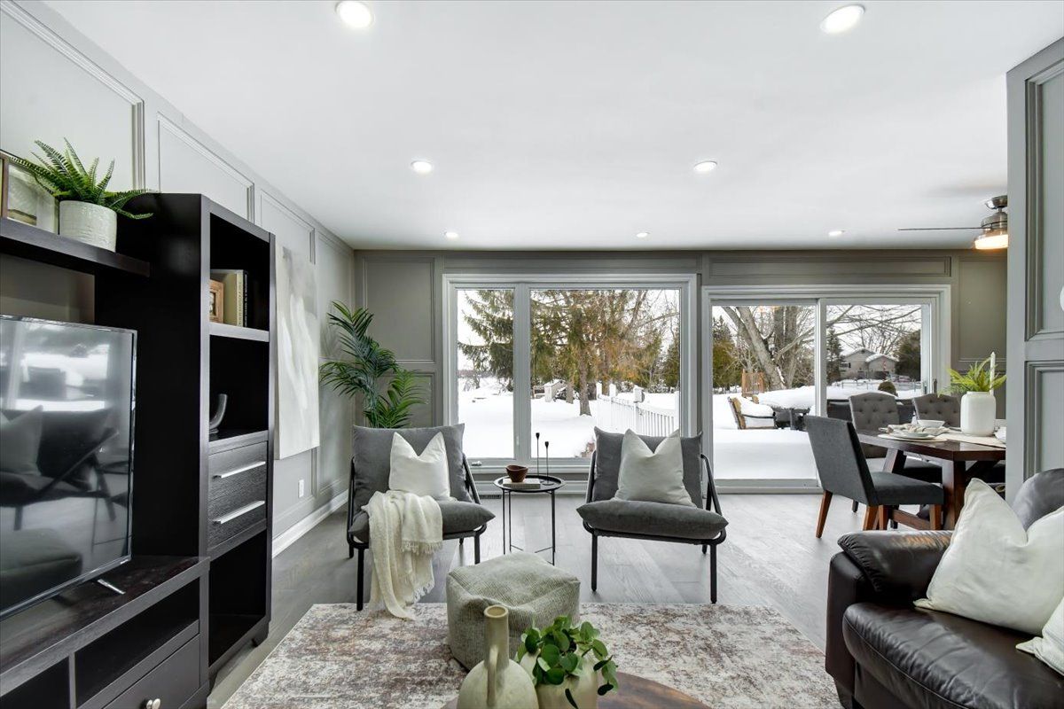 This stunning and light filled home has many recent upgrades and designer finishes through-out. Walk into the impressive grand foyer. Luxurious hardwood floors and wainscotting warms the open concept living and dining rooms that have spectacular views of the lake, pool & treed lot as your back drop. The chef inspired kitchen features a waterfall feature with stone counters and custom cabinetry with eat-in kitchen and built-in pantry & desk and an impressive main floor laundry room/mudroom that you can access from the double car garage. Currently used as a primary bedroom with ensuite, this main floor bonus room with fireplace can be a den, library or in-law suite, offering many options. This open concept main floor is framed with picturesque windows that showcase the breathtaking views of the lake, creating a perfect backdrop for everyday living. Entertain on the back deck, perfect for hosting outdoor dinners or lounge around the inviting above ground built in pool. The spacious back yard is designed for fun and has a fire pit and mature trees that provides a canopy. Walk upstairs to a generous bedroom with ensuite bathroom featuring a glass shower & double vanity sinks with lit mirrors. Two additional spacious bedrooms are on this level that share a full 4-piece bathroom with tiled shower/bath and luxury finishes. Downstairs the bright walkout basement has a comfortable, yet spacious rec. Room that has room for a pool table, games room or theatre room and walks out to the beautifully landscaped backyard with interlocking brick. This spectacular home has great curb appeal and allot to offer incl. 386 km of water access on the trent severn. Nearby shopping, restaurants, boating and water fun. Close to the ennismore general store & gas, groceries, bridgenorth, lakefield and peterborough amenities and is just 1 1/2 hours from toronto. Endless possibilities for this 3+2 bedroom home or 5 bedroom investment. A must see for a family home or a great investment potential.