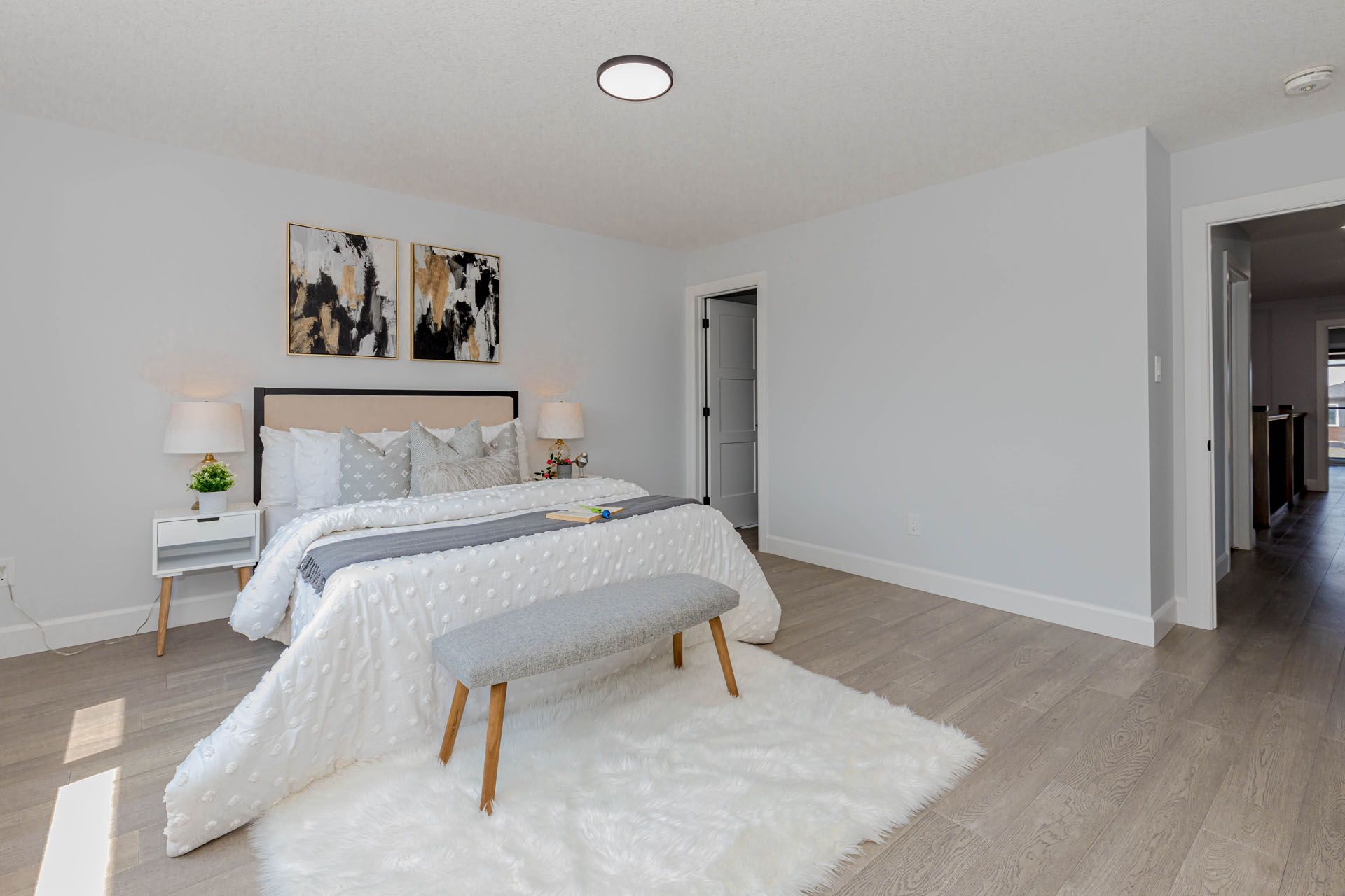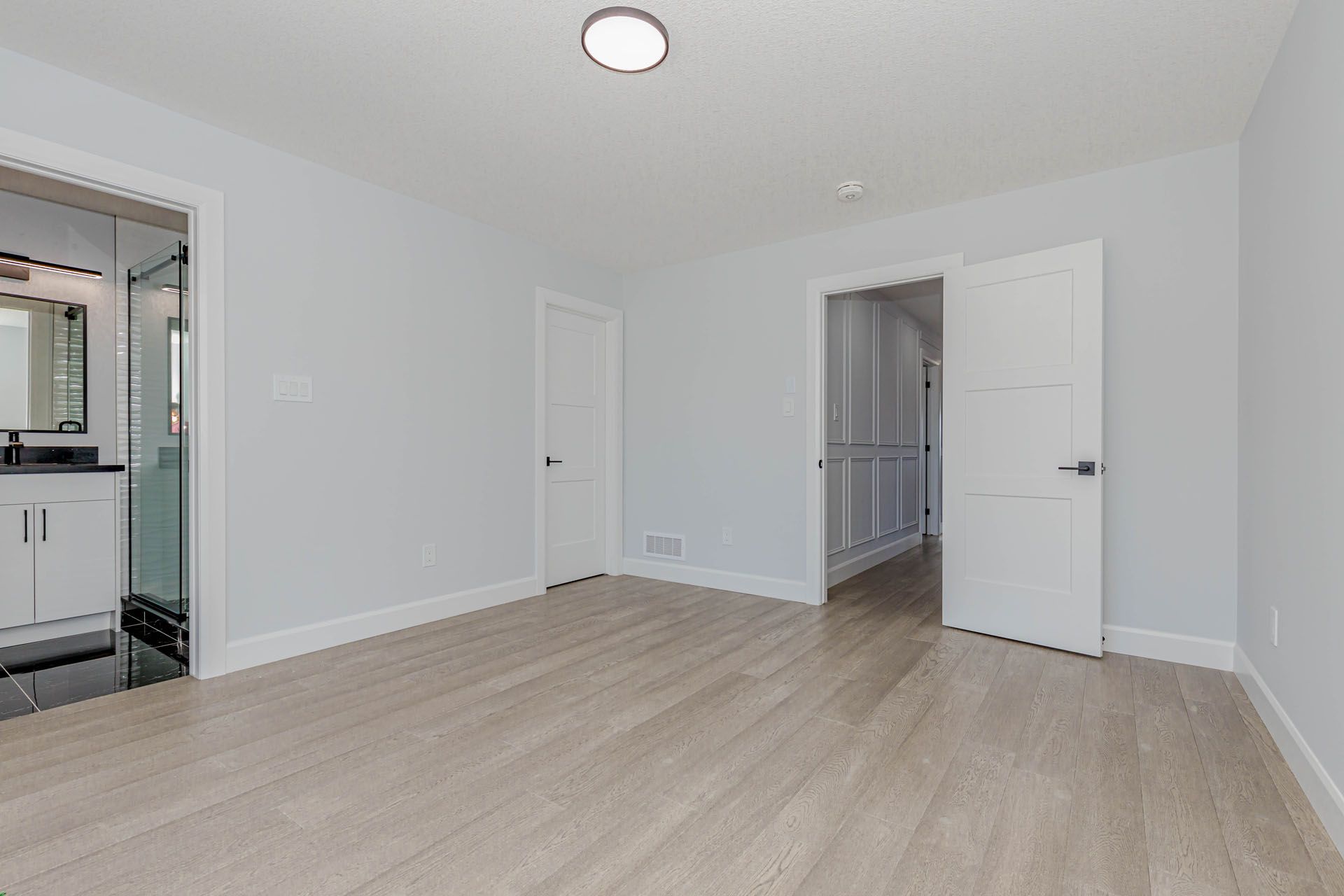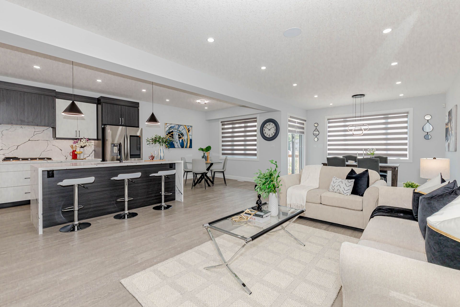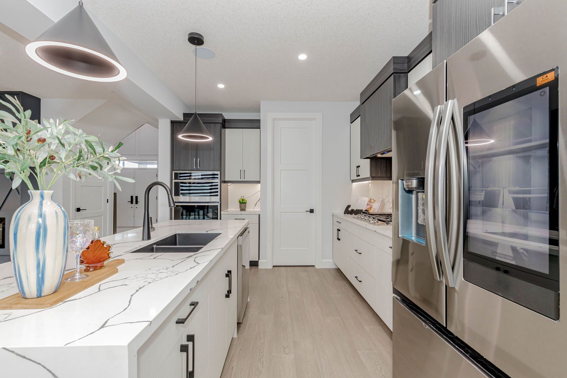 Luxurious 4-bedroom home with finished basement nearly 3,500 sq ft of elegant living space! Featuring premium upgrades throughout for a truly upscale lifestyle stunning home offers an impressive 2-car garage and concrete driveway with no sidewalk, providing 6 car parking. The upgraded exterior elevation features brick, stucco, and siding finished with stucco, offering a sleek and modern curb appeal. Double door entry with a multipoint locking system into a grand open-to-above foyer, enhanced with accent walls on both the main and second floors. The home boasts with engineered hardwood tiles in wet area, complemented by 9 ft ceilings and 8 ft doors with modern black hardware on the main floor. Designer touches such as elegant light fixtures, pot lights throughout, a spacious family room with an electric fireplace, and built-in speakers perfect for entertaining. The chefs dream kitchen features an oversized island with waterfall quartz countertops, upgraded sink and fixtures, built-in appliances, gas cooktop, soft-close drawers, and a walk-in pantry for optimal storage. The upgraded powder room and a large mudroom provide convenience and functionality. Step out to your 12x8 ft covered deck, ideal for year-round outdoor enjoyment. Upstairs, the luxurious primary suite includes a 5-piece upgraded ensuite with a glass shower, large walk-in closet, and a 10x6 ft balcony with glass railing and aluminum siding. Two generously sized bedrooms share a 5-piece jack & jill bath, while a second master bedroom offers its own 4-piece ensuite and walk-in closet. The laundry room is conveniently located on the upper level and includes a tub and linen closet. The finished lookout basement features a separate side entrance, 5 large egress windows, and a 4-piece bathroom and large open living space. Additionally200 amp electrical panel, security system with 2 exterior cameras . This home seamlessly combines function, style, and comfort, with no detail overlooked. A must see!!