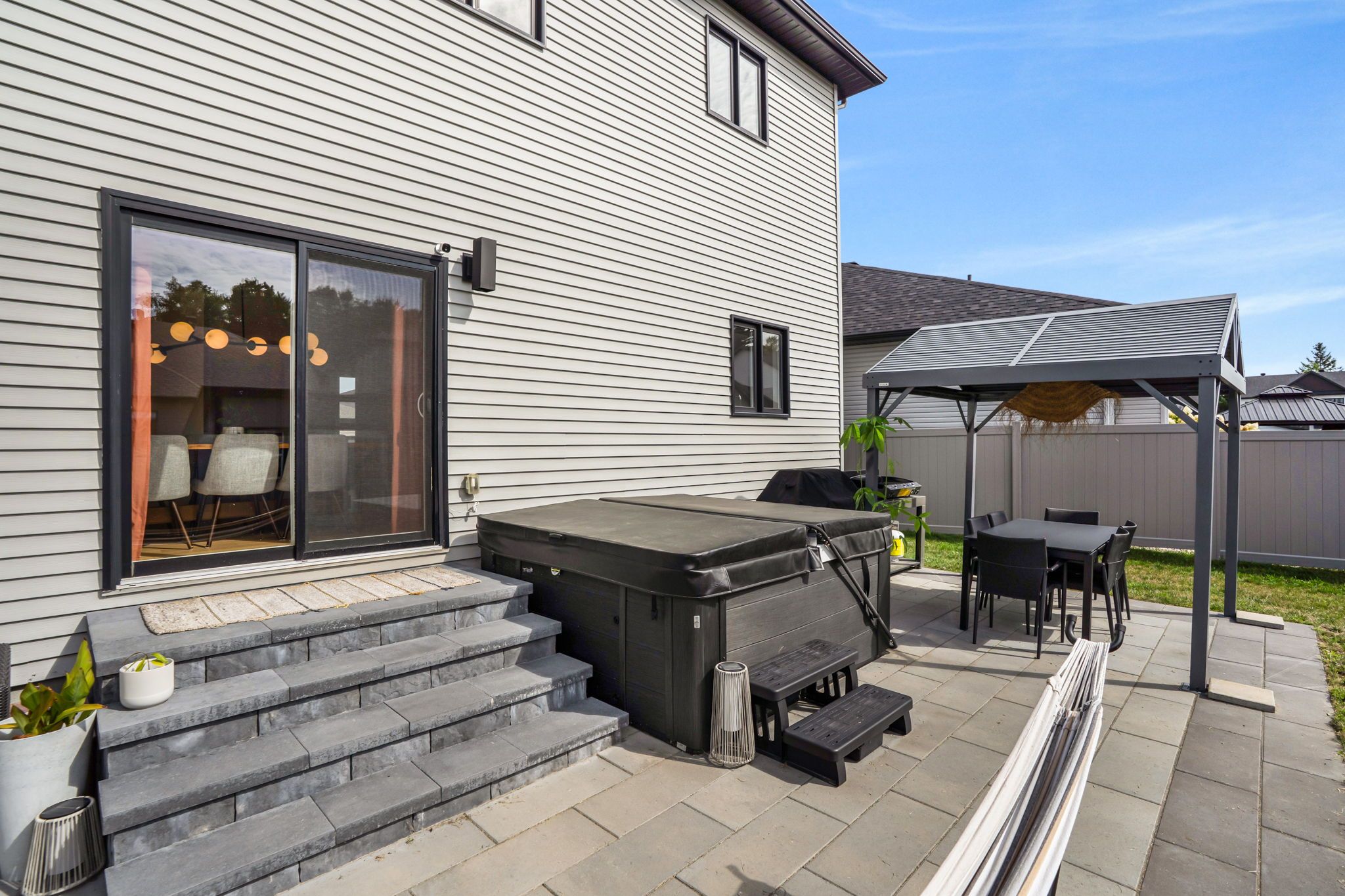 • Beautifully landscaped yard with a patio, hot tub, and gazebo.