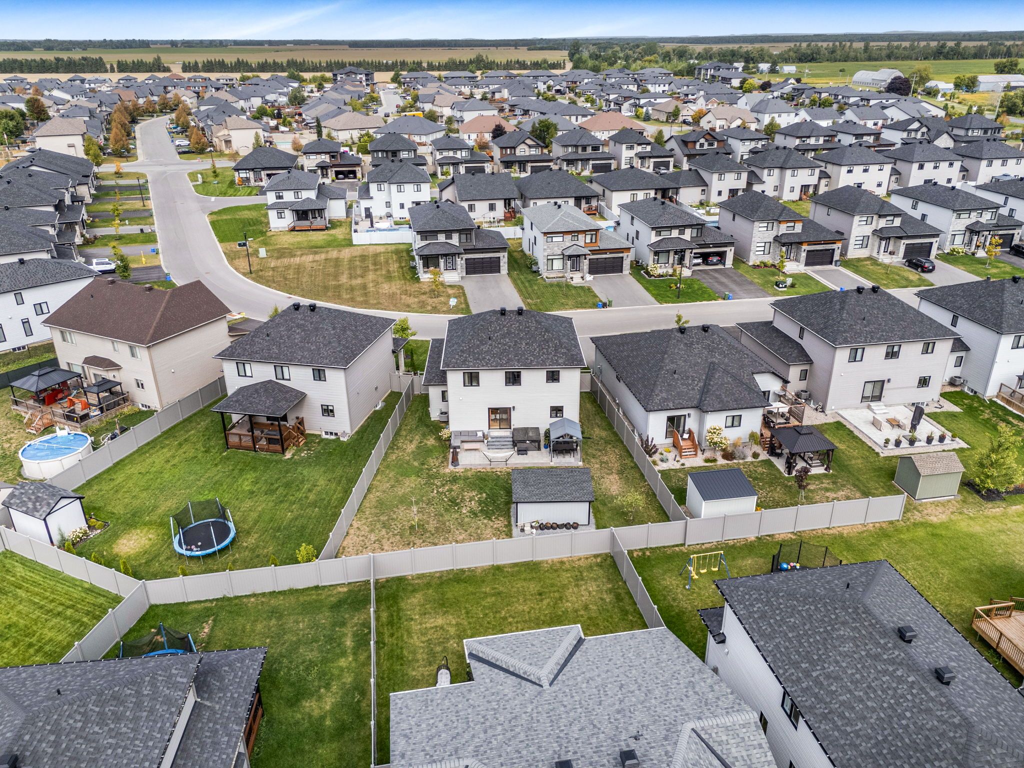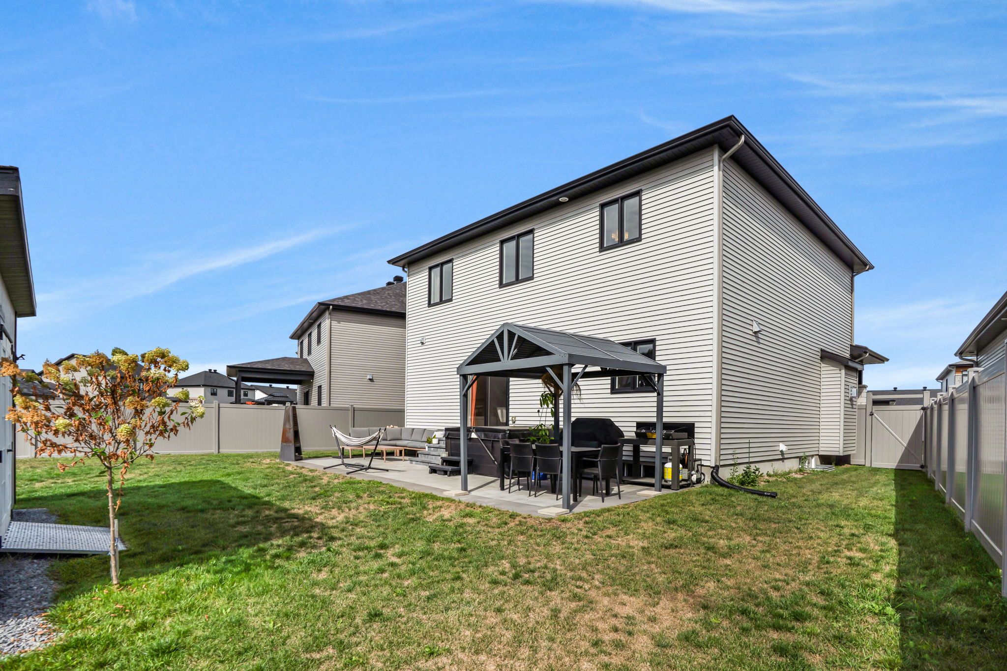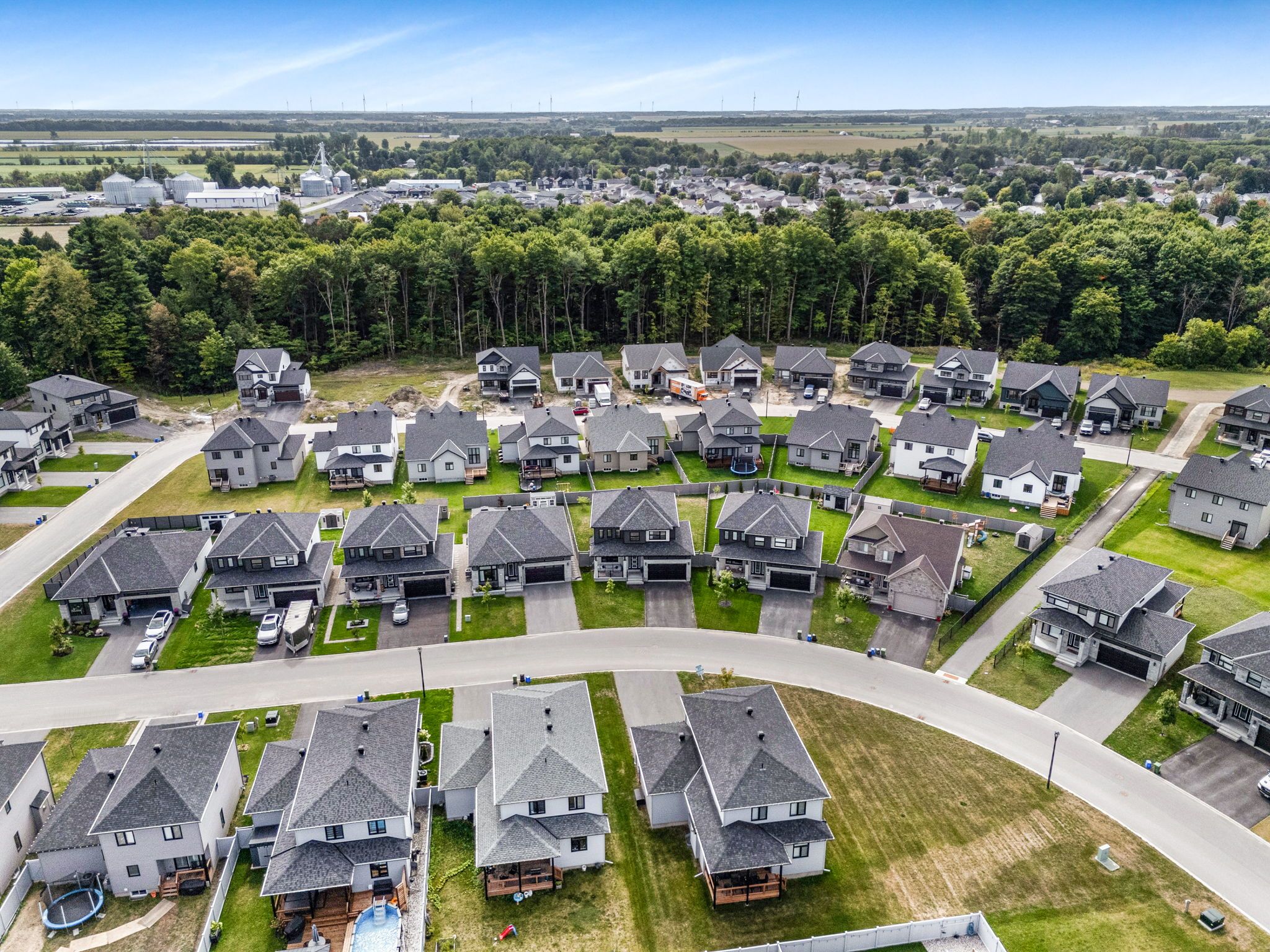 Welcome to the falcon model in embrun - a stunning luxury home designed for family living and entertaining. Step inside to a bright and elegant main floor, featuring a sophisticated living room with a cozy fireplace and oversized windows that flood the space with natural light. The open-concept kitchen and dining area is the heart of the home, offering a functional island, walk-in pantry, and patio doors leading directly to the backyard oasis. A convenient main-floor laundry room and stylish partial bathroom complete this level. Upstairs, discover four spacious bedrooms and two bathrooms, including a luxurious primary retreat with a walk-in closet and spa-inspired 5-piece ensuite. The partially finished lower level extends your living space with a rec room, den area, subfloor, divisions, and a full 3-piece bathroom, just waiting for your final touch. Outdoors, the beautifully landscaped yard is a true retreat. Enjoy the 16x34 interlock patio, hot tub, and charming gazebo, perfect for relaxing or hosting summer gatherings. A spacious 8x16 shed provides ample storage, while the fully fenced yard ensures privacy and comfort. Ideally located close to parks, schools, and recreation, this home offers elegance, comfort, and lifestyle all in one.