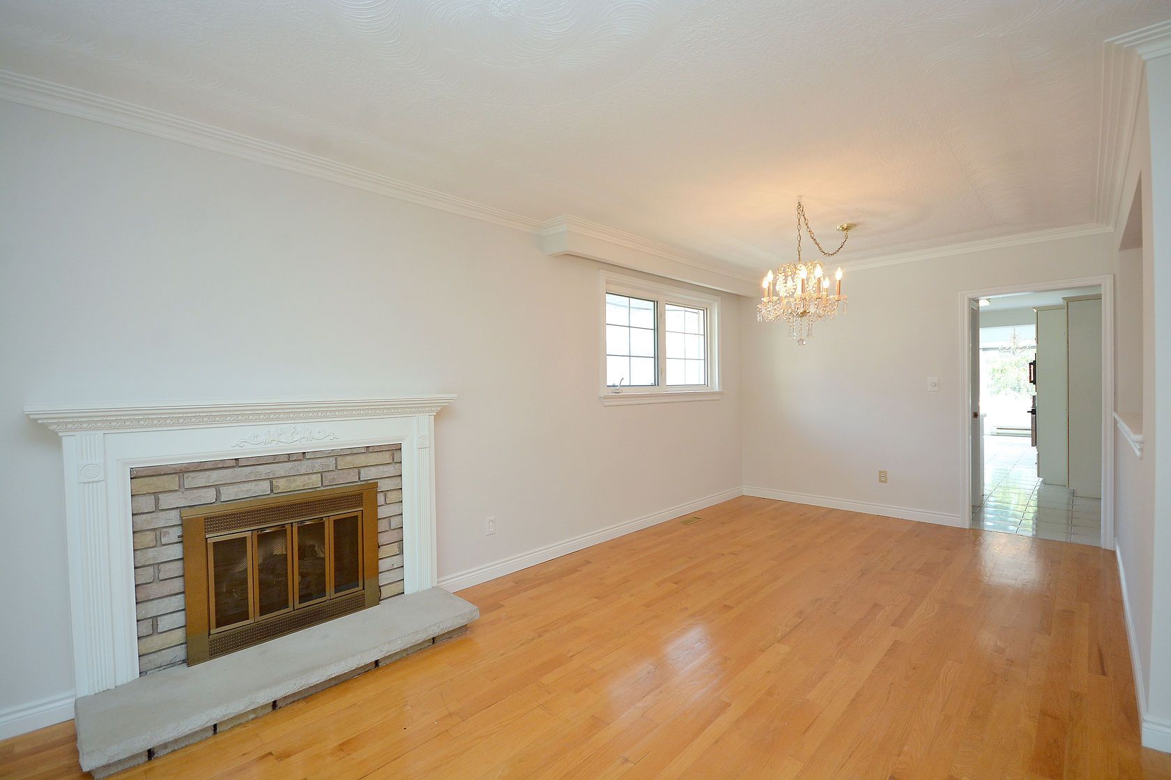 • Living room features a bay window and cozy fireplace for comfort.
