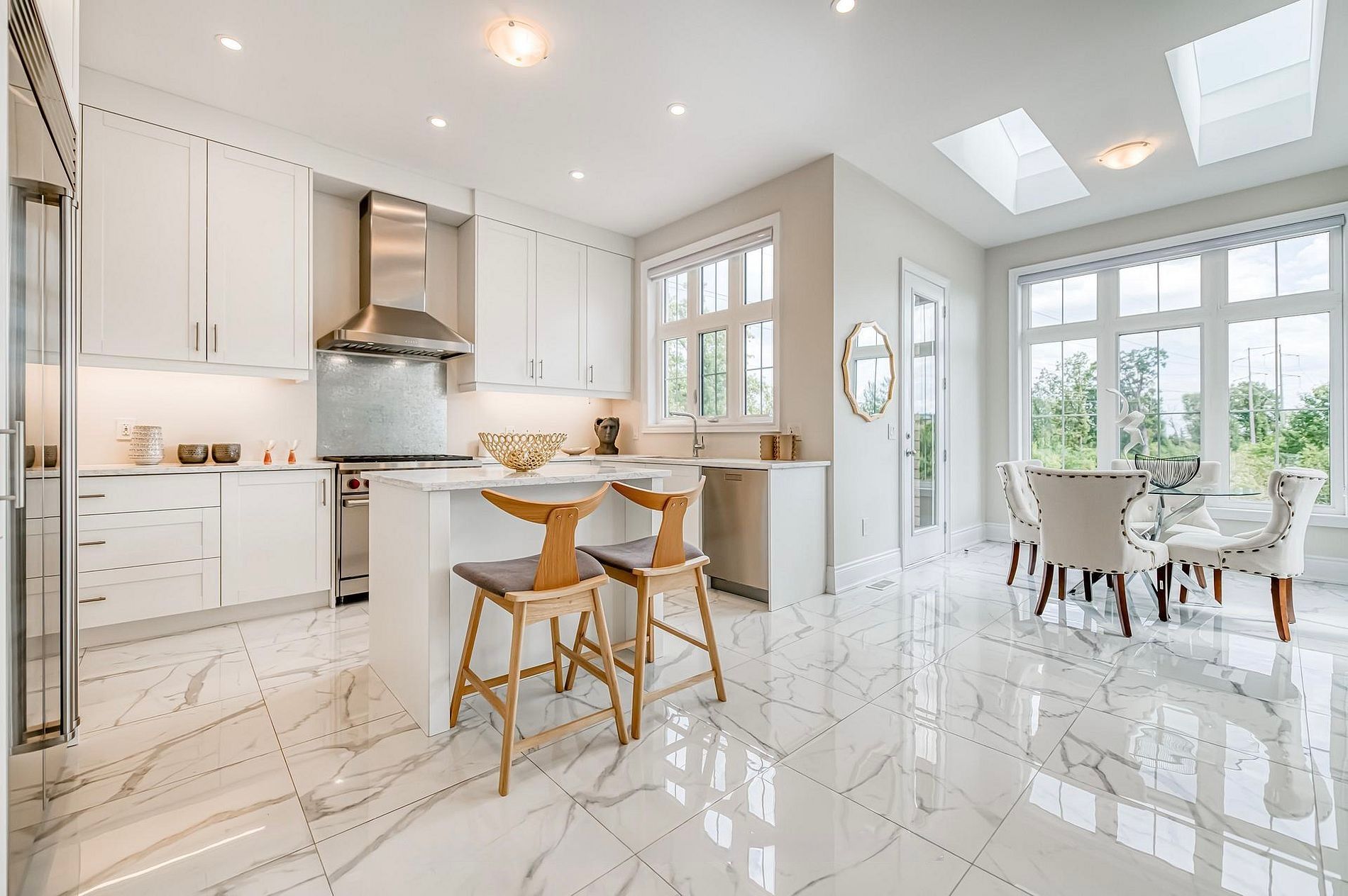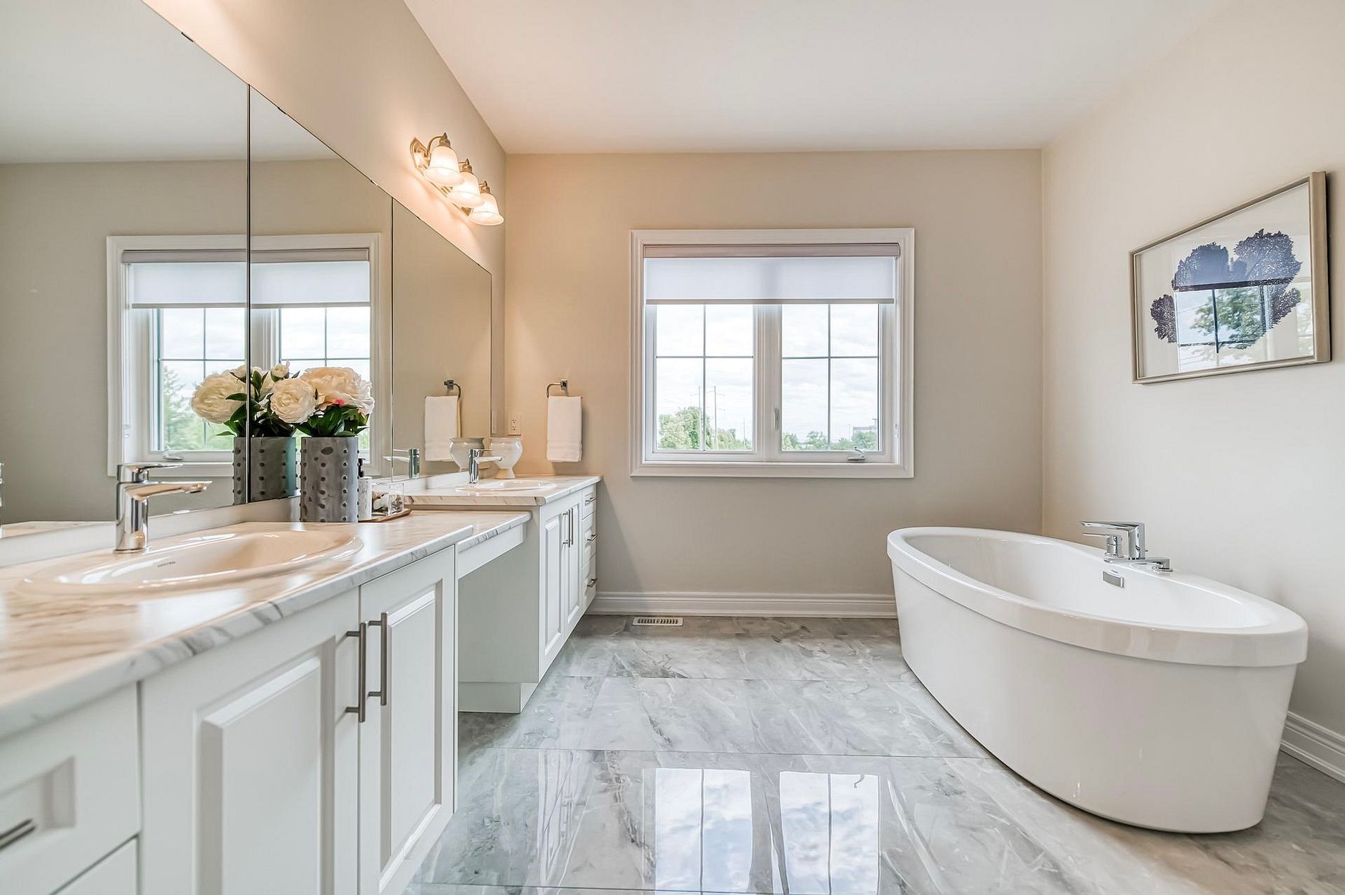 • Second floor includes four bedrooms, each with ensuite bathrooms and walk-in closets.