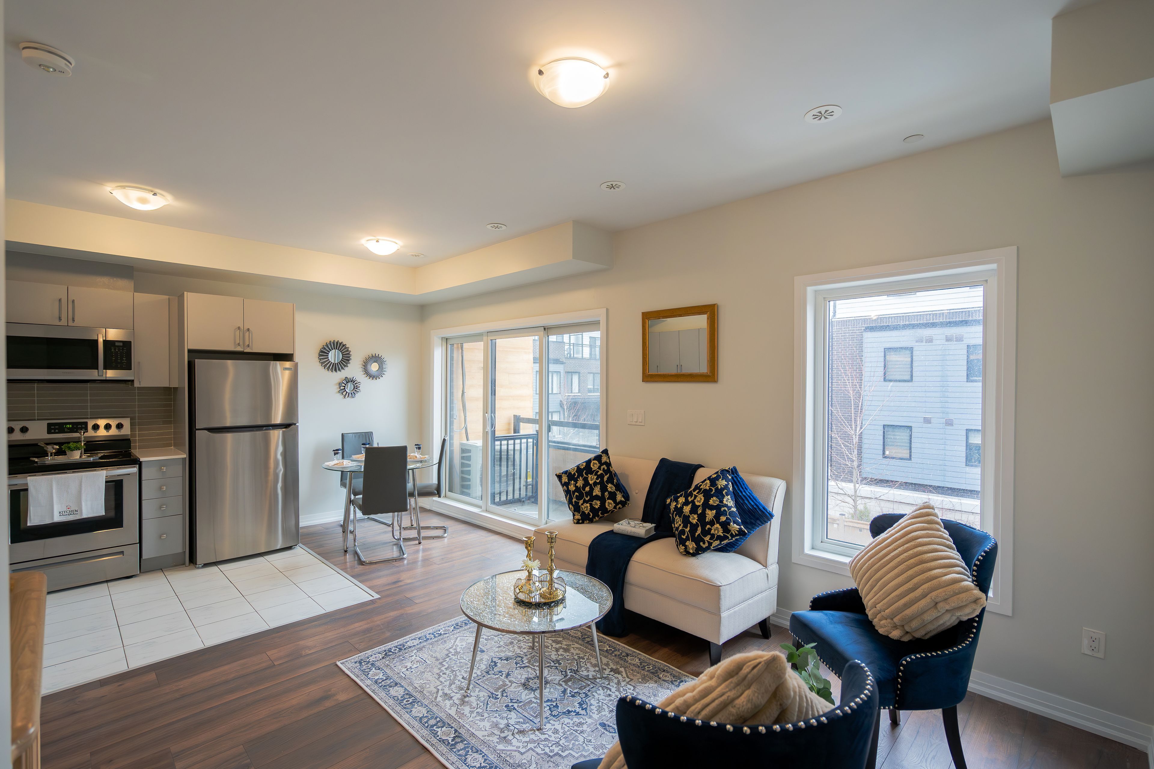 Your journey ends at 1145 journeyman unit 226 - an affordable, modern elevation townhome nestled in the highly sought-after, family-oriented community of clarkson. Perfectly positioned among everyday amenities while offering easy access to nature, this home delivers the ideal balance of comfort, style, and convenience. Step inside to a practical and thoughtfully designed main floor, ideal for both everyday living and entertaining. The open-concept upgraded kitchen features stainless steel appliances, ample counter space, and seamless flow into the dining and living areas. Soaring 9' ceilings enhance the bright and airy atmosphere throughout. Enjoy walk-out access from the dining room to a private, secluded balcony, surrounded by mature treelines-your own peaceful retreat for morning coffee or evening relaxation. The upper level offers spacious bedrooms with generous closet space, providing comfort and functionality for growing families or professionals alike. This move-in ready home is an excellent opportunity for investors or end users, offering versatility, low maintenance living, and strong long-term value. Whether you're a first-time buyer, downsizing, or investor, this property checks all the boxes. A perfect blend of elegance, modern design, and everyday convenience-don't miss your chance to call this spectacular space home!