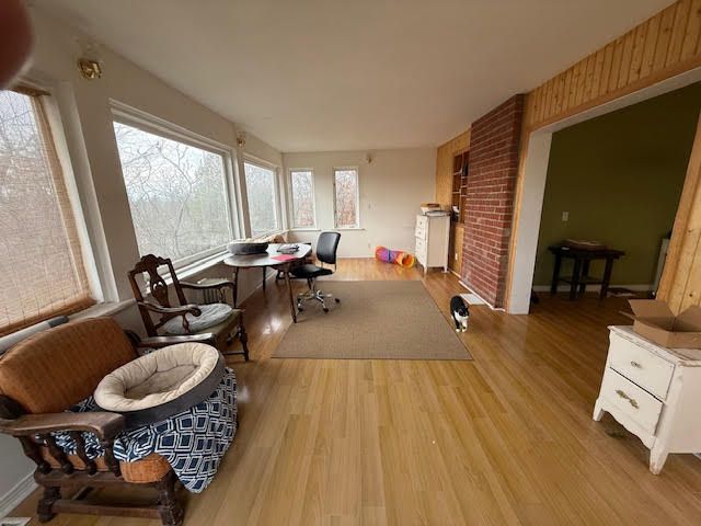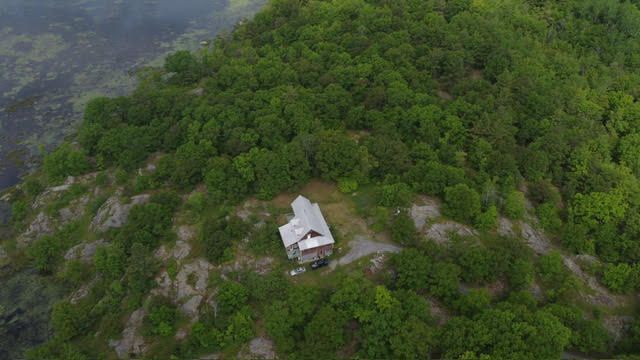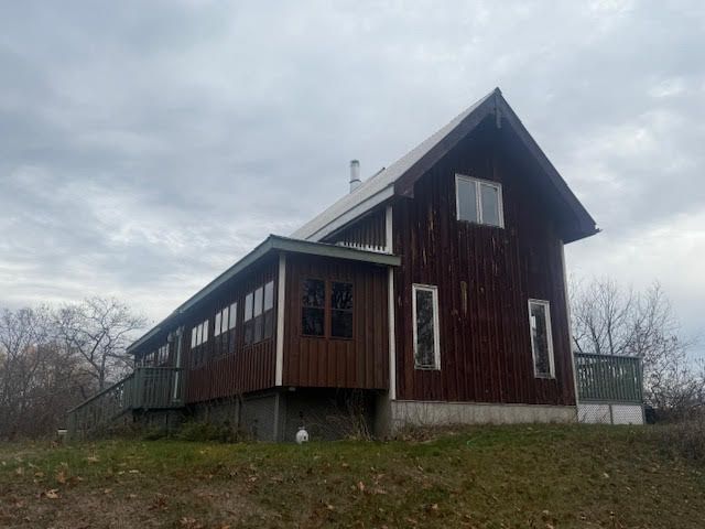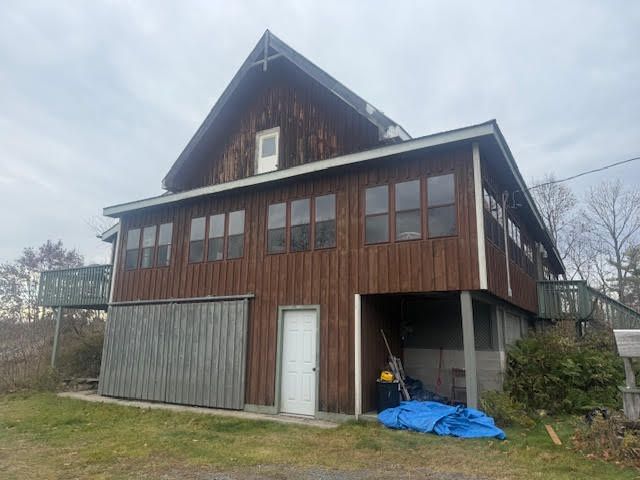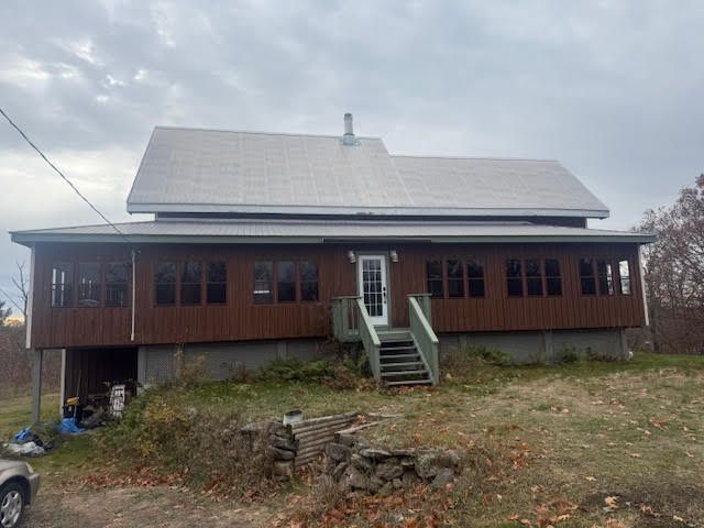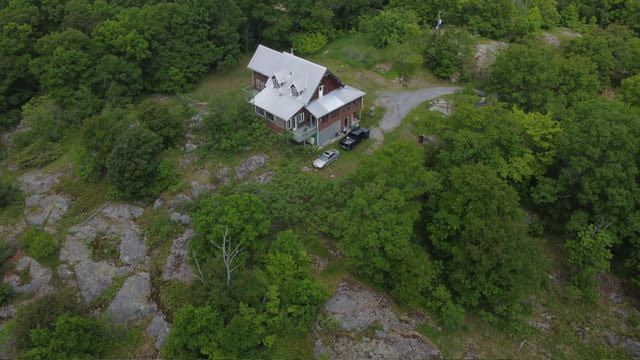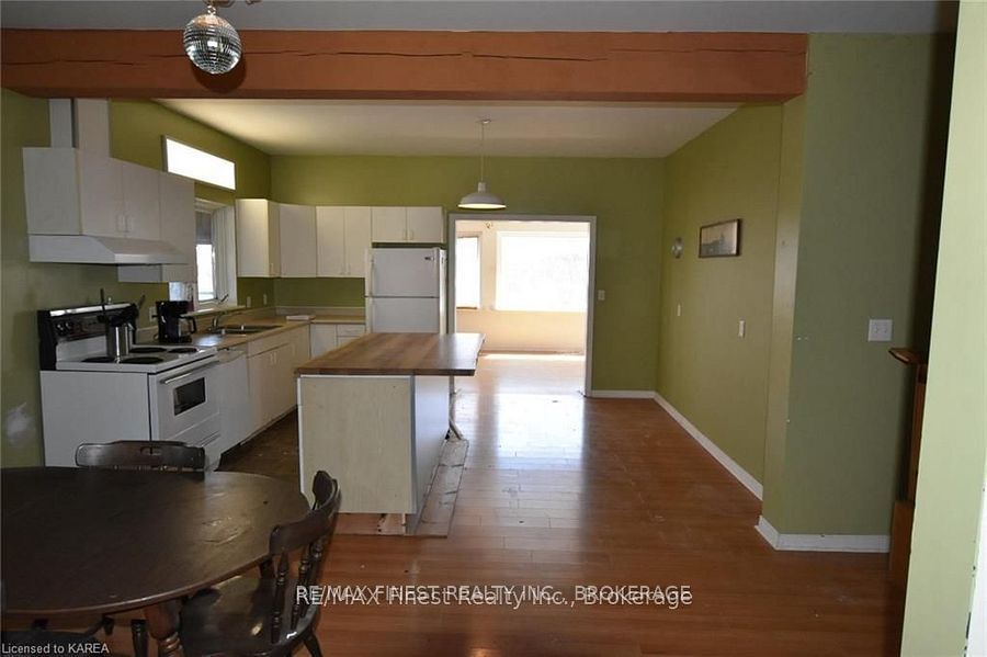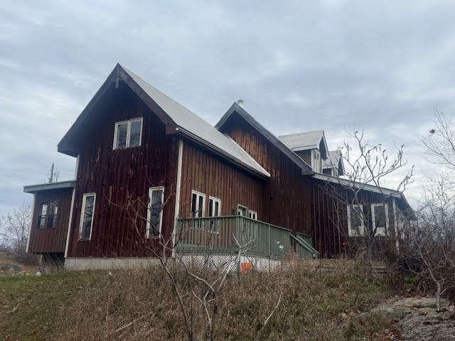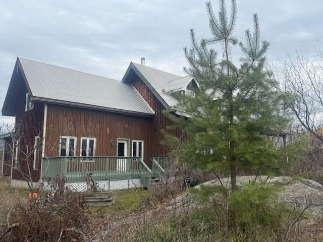 The house on the hill on 15 acres of scenic woods, trees, granite outcroppings, garden areas and a tranquil pond. The south facing views from the large sunroom make it all worth while sipping your morning coffee all year round. The new stylish four piece main floor bathroom is superb. The open concept kitchen leads to the sunroom or to the large main floor family room with hardwood floors. Upstairs the 3 bedrooms and office area are all good sizes and the master has a 2 piece ensuite. There is plenty of room to add another four piece bathroom too if required. A metal roof and a newer oil tank, furnace and hot water tank as well as an updated 200 amp panel box make living easy. Entrance can be from the lower level or the front door with a two sided covered wrap around porch large enough for a party itself. The lower unfinished basement is high and dry and provides a great area for future expansion and there is also a roughed in area for another bathroom here. The board and batten siding is real wood and the home is wrapped in insulation under the siding which makes heating costs reasonable. With over 2000 sf of living area, this home is a solid investment. Updates include new 200 amp panel box, oil tank 2021, solid wood eating bar in kitchen, and this combined with the metal roof, and high dry walk out basement, makes this a solid home for any young family to begin a new life in the country. Sitting on the hill provides privacy and panoramic views from the sunroom of the entire property. And all that road frontage makes severance possibilities an added value feature. Wakeup to the sounds of birds and wildlife. Home comes with an excellent well and septic. Just 55 minutes to downtown kingston, and not far from a large grocery store in verona. If you like fishing you can possibly visit a different lake every day of the year in this land of lakes community. Enjoy the rural life for all its worth in this large family home that awaits a new owner. See it today.