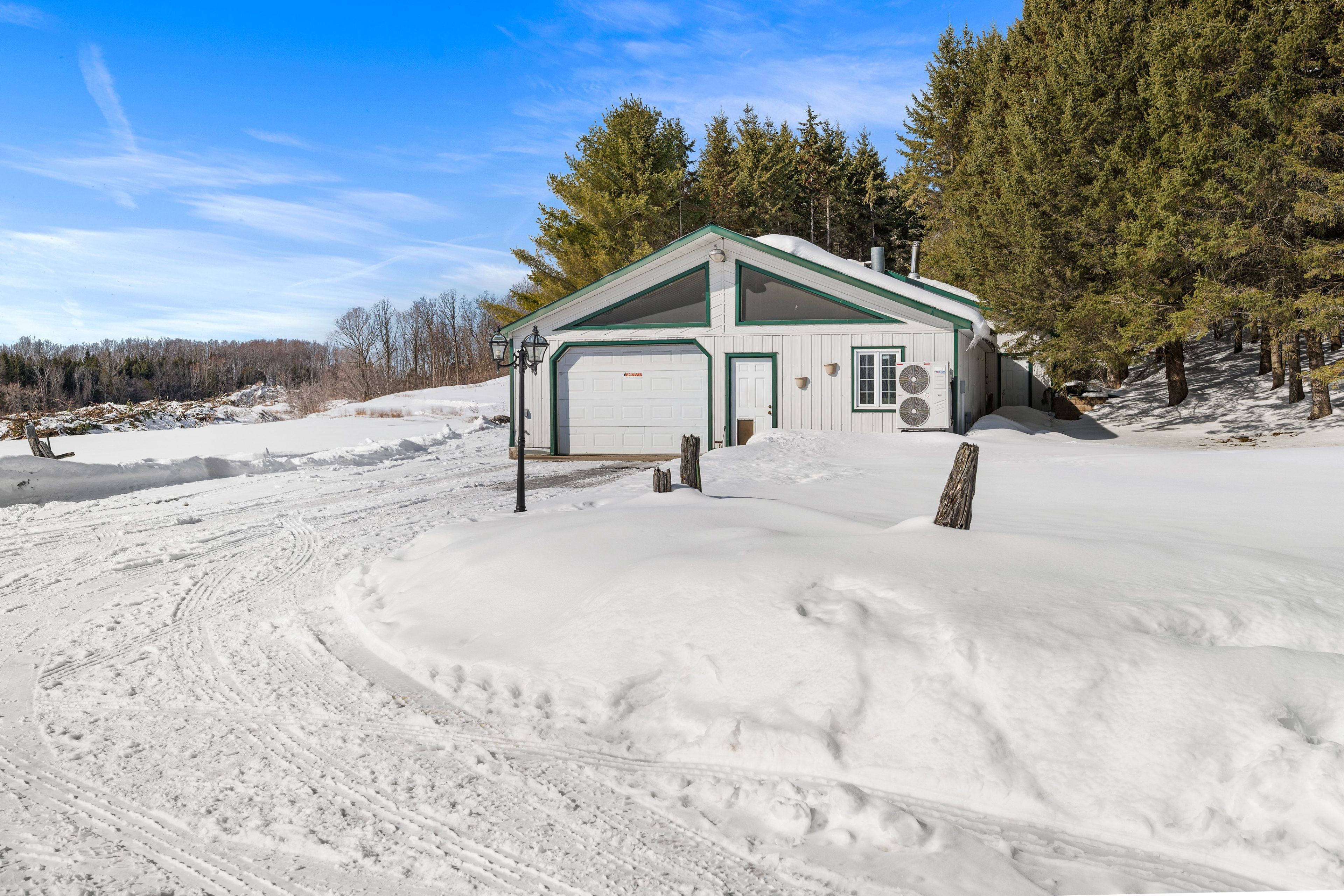 • Large garage and shop with radiant floor heating for projects.