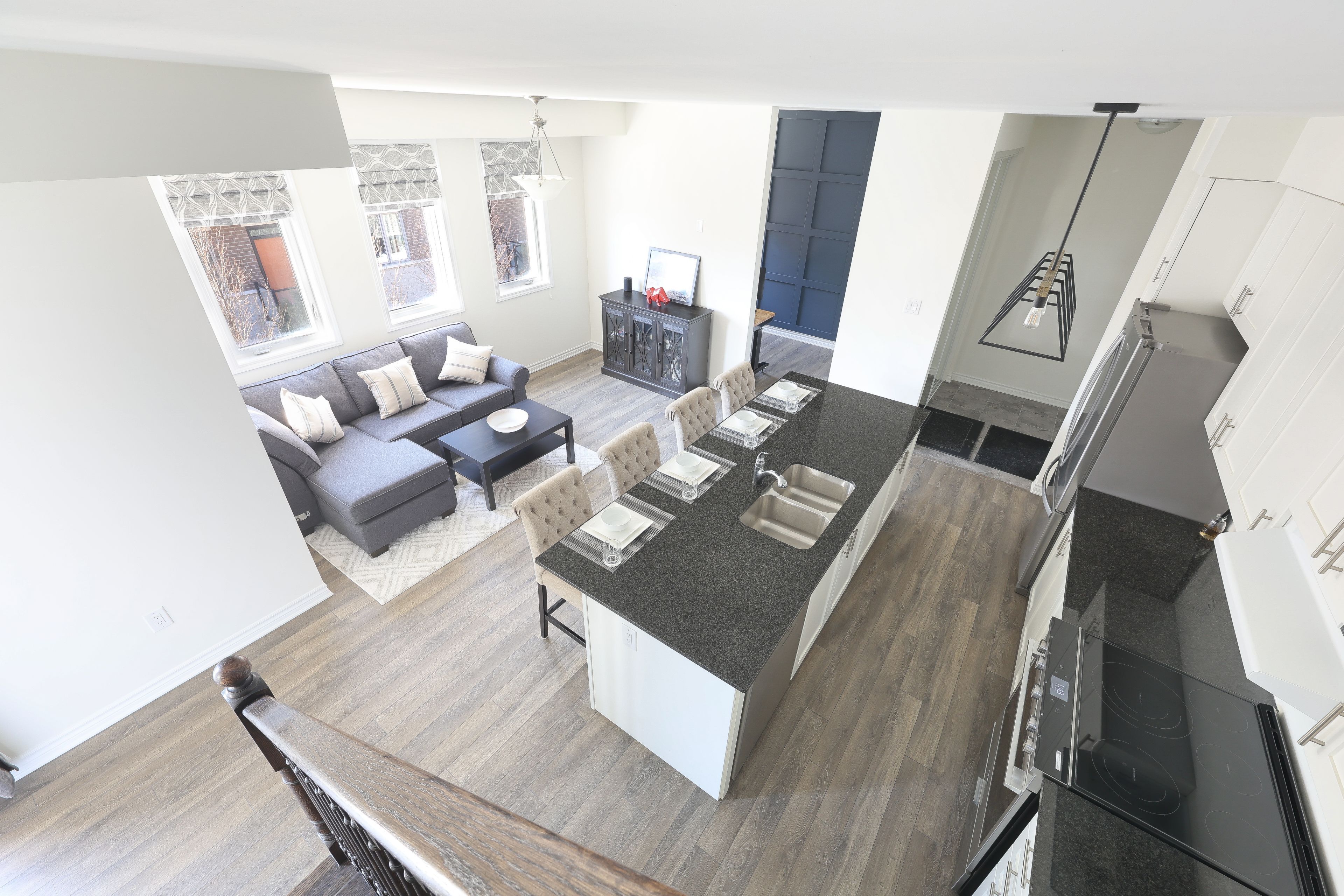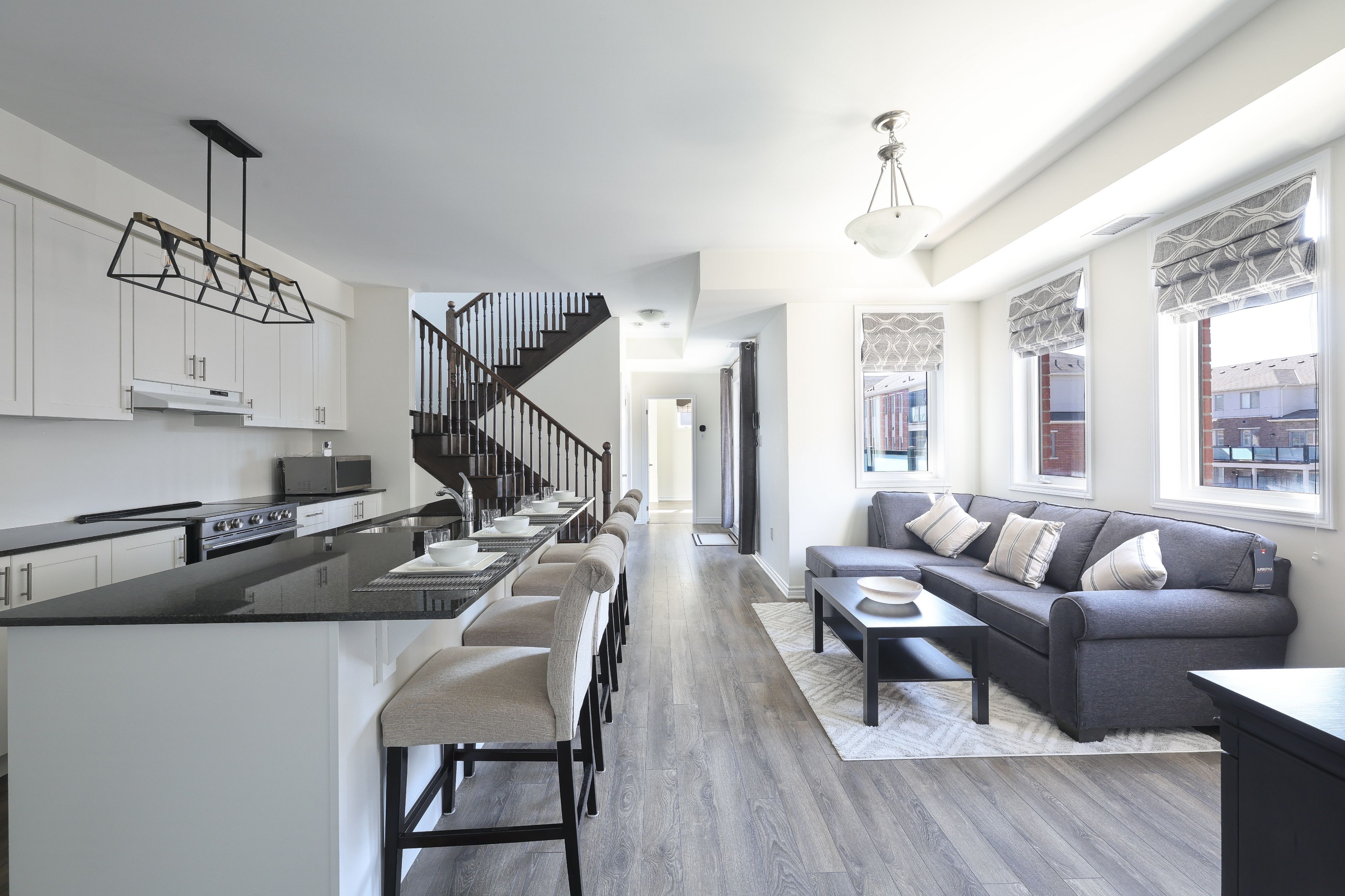 Welcome to this rarely offered premium-sized 1,794 sq. Ft. Stacked condo townhome in pickering's sought-after seaton community, built by mattamy. This corner unit offers a functional 3-bedroom plus builder-plan home office and 3 bathrooms, thoughtfully upgraded for modern comfort, generous living space, and exceptional commuter convenience. Main floor features an inviting open-concept design with 9ft ceilings that create a bright, airy atmosphere. The upgraded kitchen stands out with its large island, stainless steel appliances, contemporary cabinetry, and ample storage-ideal for daily living and entertaining. This space flows into the dining and living areas and opens to a private balcony. Main floor features an office, offering privacy for remote work or study. A rare main-floor bedroom with a walk-in closet provides valuable flexibility for guests or multi-generational living. The upper level includes two spacious bedrooms, each with a private ensuite and walk-in closet. The primary suite offers dual walk-in closets. A dedicated laundry room with a sink and storage enhances functionality, and a second private balcony completes the floor. The property is minutes from highways 401, 407, 412, and the pickering go station, ensuring seamless connectivity across the gta. With highly rated public schools nearby, this neighbourhood offers an ideal environment for your children to learn and grow. Grocery stores, parks, and scenic trails are all close by, with the seaton community continuing its strong growth. Additional upgrades include smart lighting controls, an ecobee smart thermostat, premium main-floor lighting, and efficient under-stair storage. Parking features an ev-ready garage plus a private driveway. Condo fees cover snow removal for pathways and roads. This turnkey home blends contemporary design, functional enhancements, and an unbeatable location-offering an excellent opportunity in one of pickering's most desirable communities.