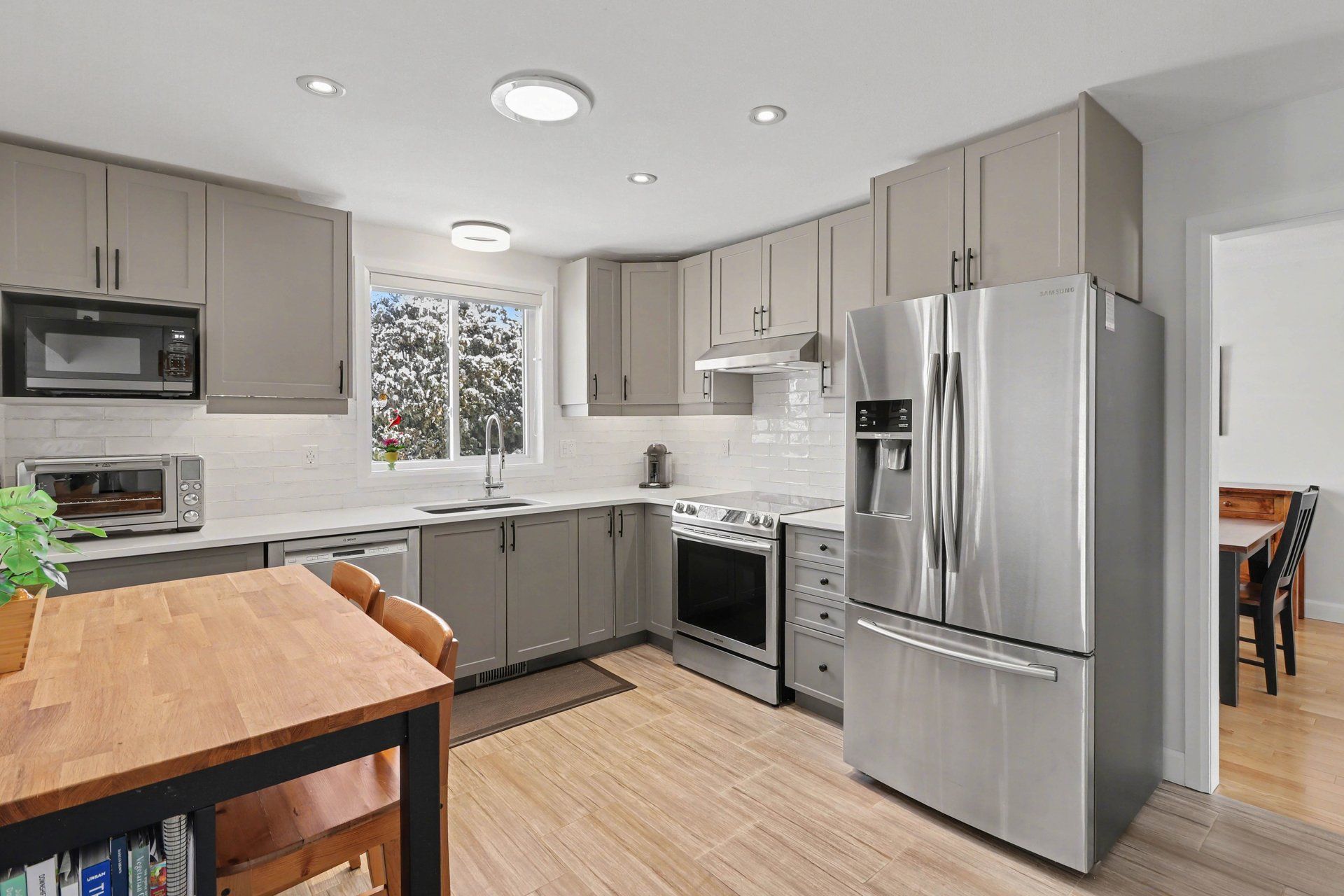 • Modern kitchen with quartz counters and upgraded appliances.