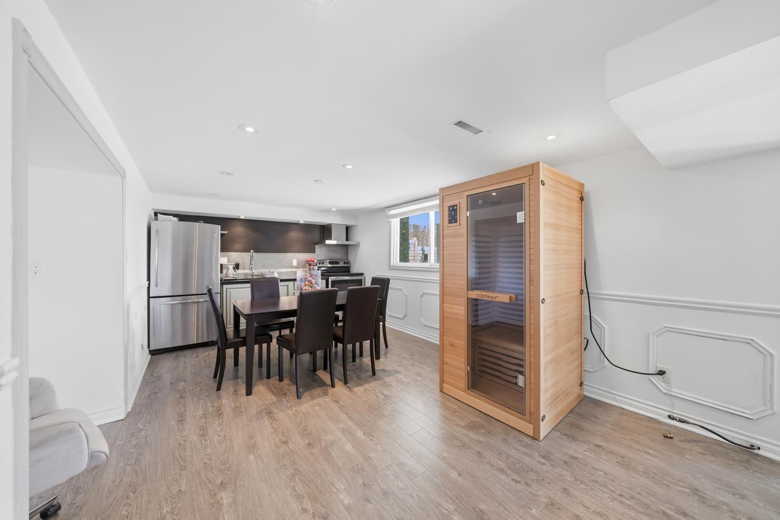 • Finished walkout basement with kitchen and bar area for extra living space.