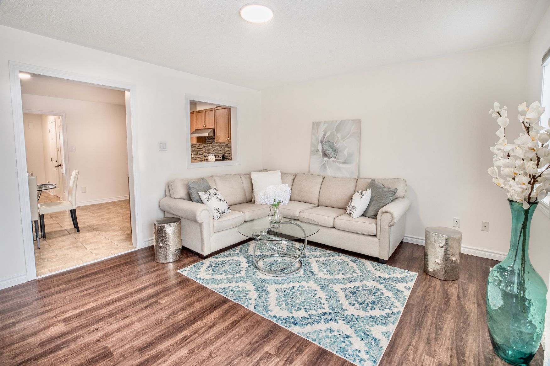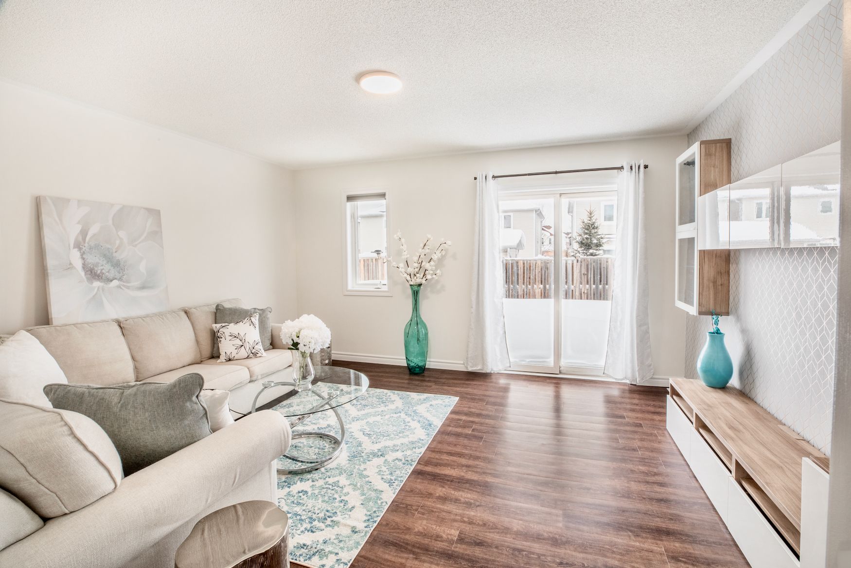 • Fresh paint job with popular Benjamin Moore colour 'white dove'.