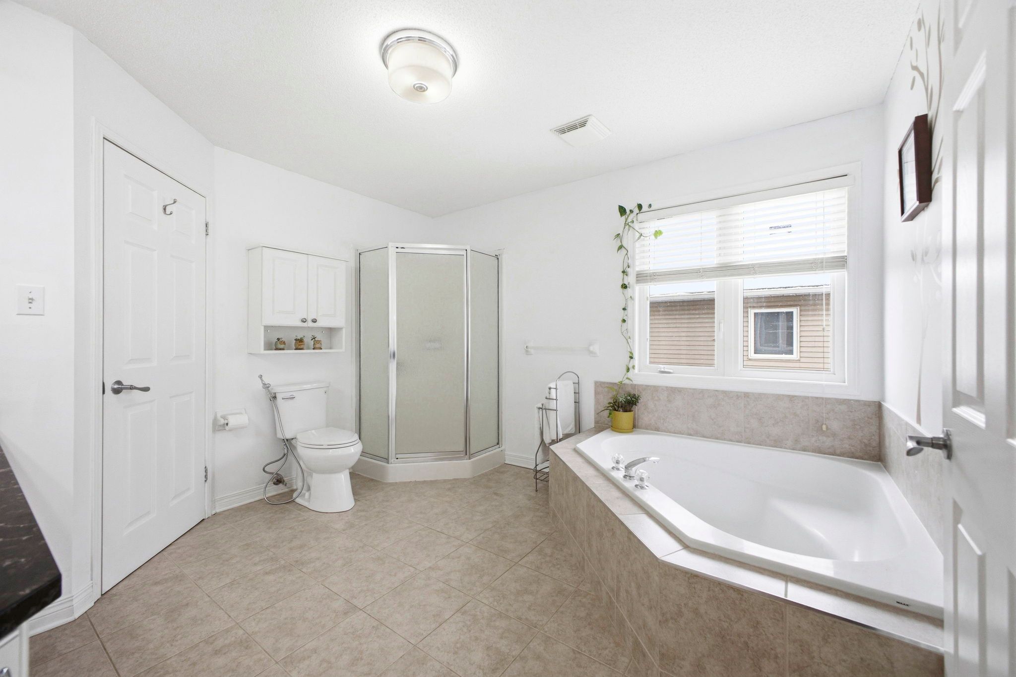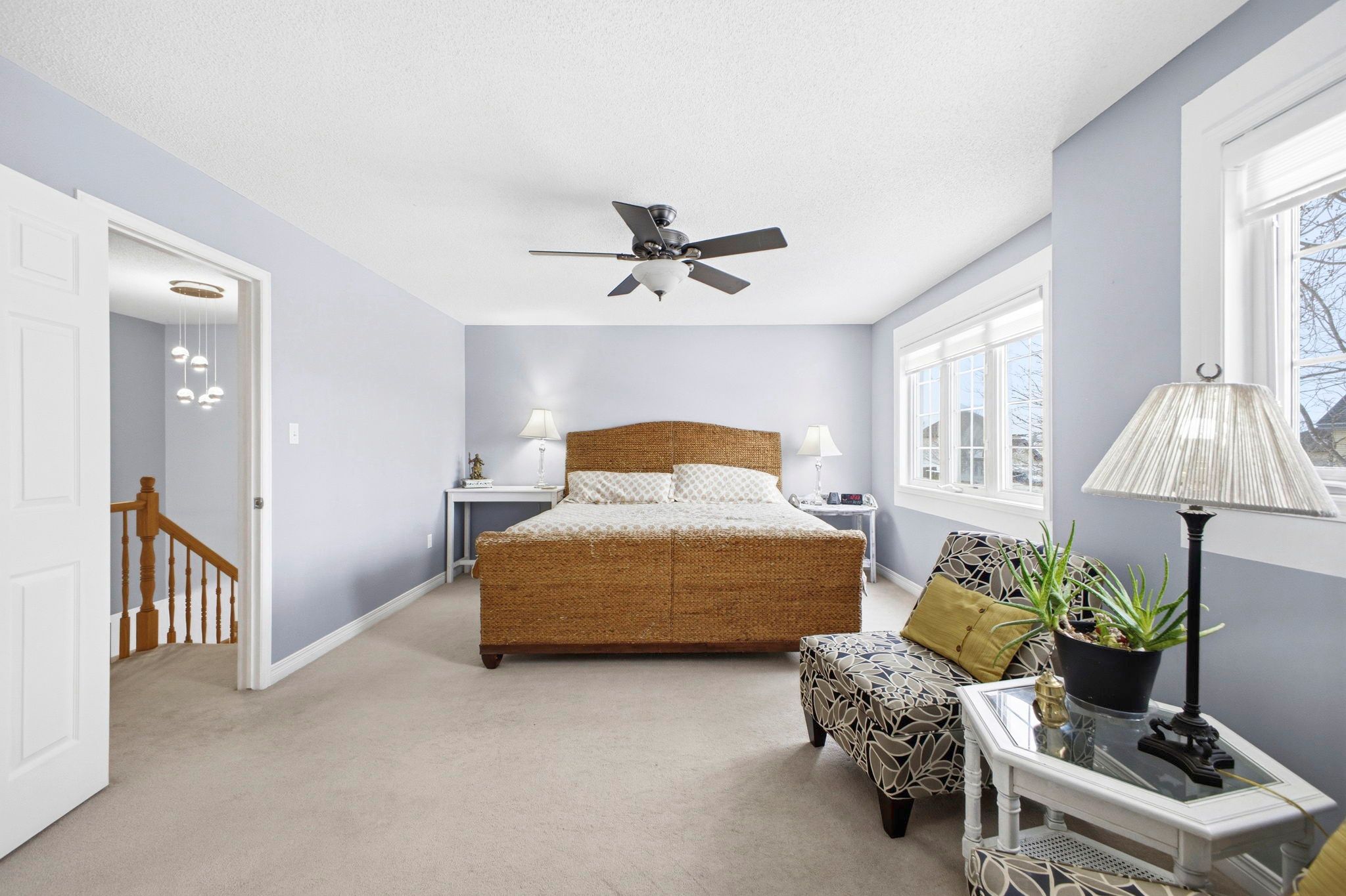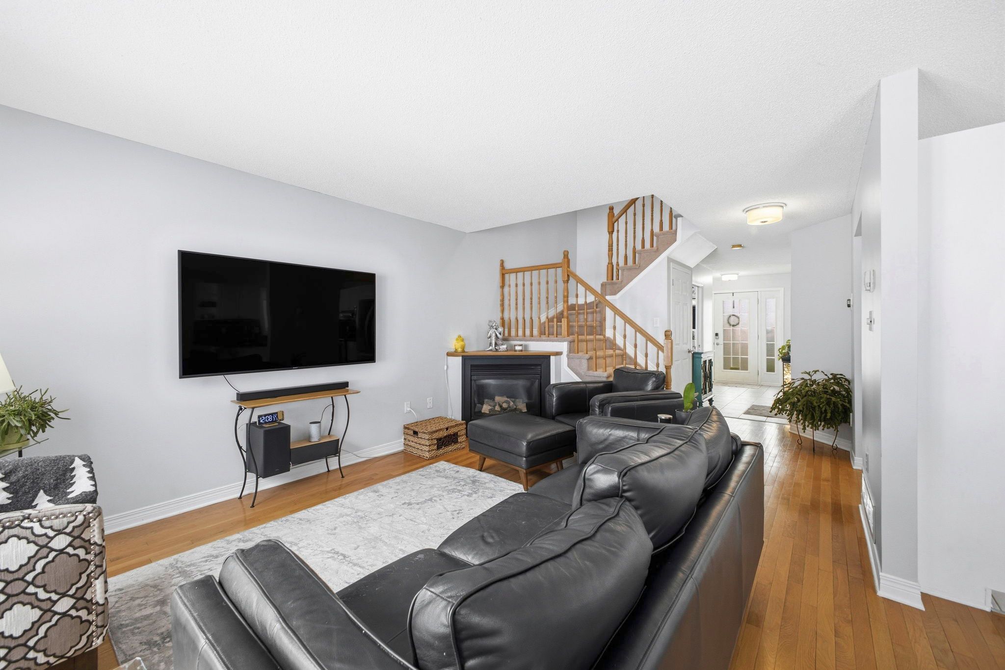 Welcome to this beautifully maintained detached family home in rockland, offering 3 bedrooms, 3 bathrooms, a double garage, and a finished basement. The bright and functional main floor features hardwood flooring, a warm living room with gas fireplace, an updated kitchen with breakfast bar, and an open dining area with patio door access to the fenced backyard. Upstairs, the spacious primary bedroom includes a generous ensuite, while the secondary bedrooms offer flexibility for family, guests, or a home office. The finished basement adds valuable extra living space for a rec room, media area, or play space. Outside, enjoy a private fenced backyard with no direct rear neighbours and a natural backdrop. Major updates have already been completed, including roof (2022), appliances (2022), furnace and a/c (2023), basement renovation (2026), kitchen cabinet doors refinished (2026), and bathroom countertop updates (2026). A move-in ready home in a family-friendly community.