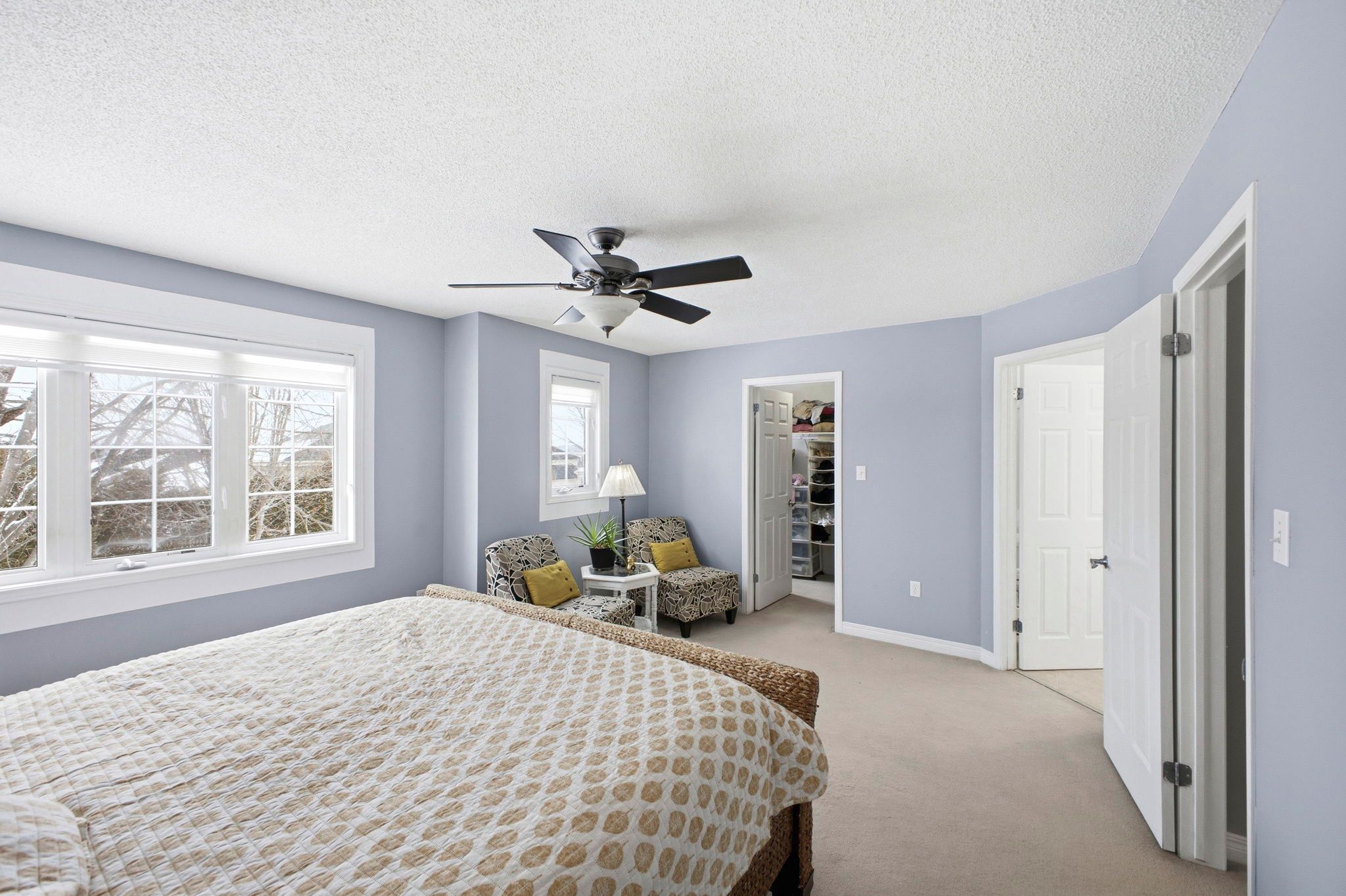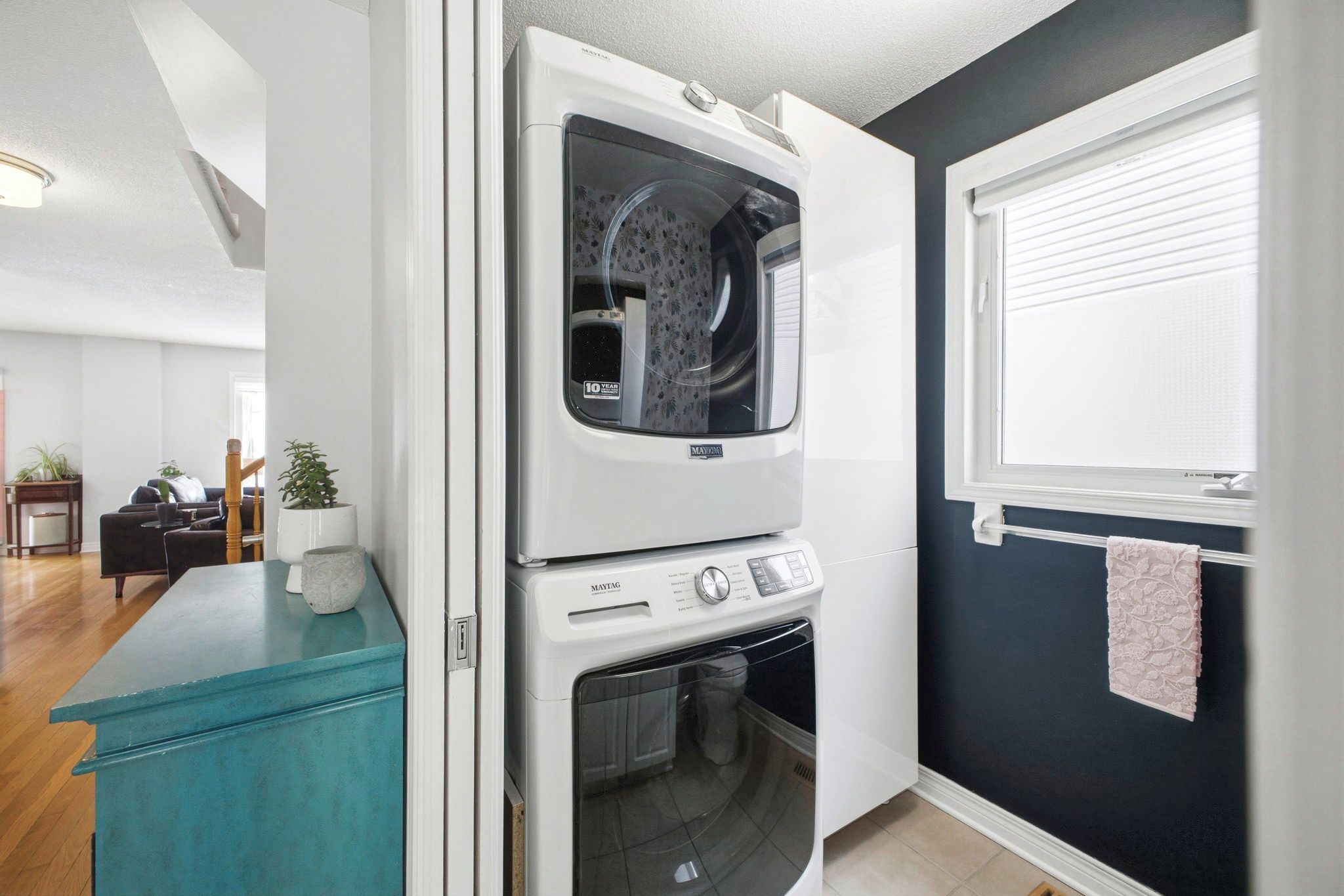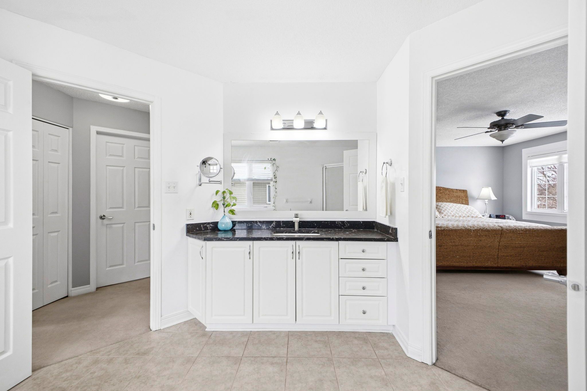 Welcome to this beautifully maintained detached family home in rockland, offering 3 bedrooms, 3 bathrooms, a double garage, and a finished basement. The bright and functional main floor features hardwood flooring, a warm living room with gas fireplace, an updated kitchen with breakfast bar, and an open dining area with patio door access to the fenced backyard. Upstairs, the spacious primary bedroom includes a generous ensuite, while the secondary bedrooms offer flexibility for family, guests, or a home office. The finished basement adds valuable extra living space for a rec room, media area, or play space. Outside, enjoy a private fenced backyard with no direct rear neighbours and a natural backdrop. Major updates have already been completed, including roof (2022), appliances (2022), furnace and a/c (2023), basement renovation (2026), kitchen cabinet doors refinished (2026), and bathroom countertop updates (2026). A move-in ready home in a family-friendly community.