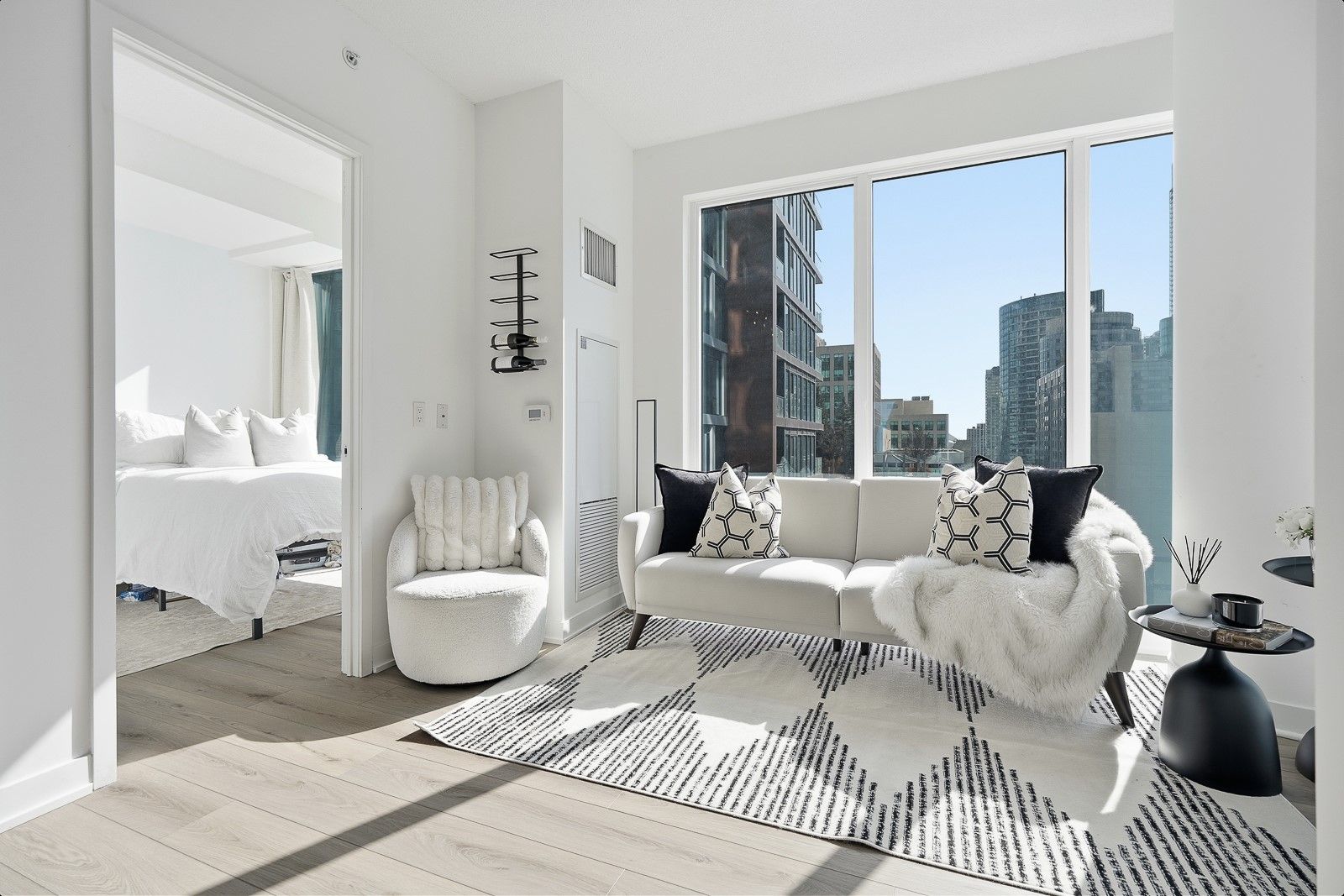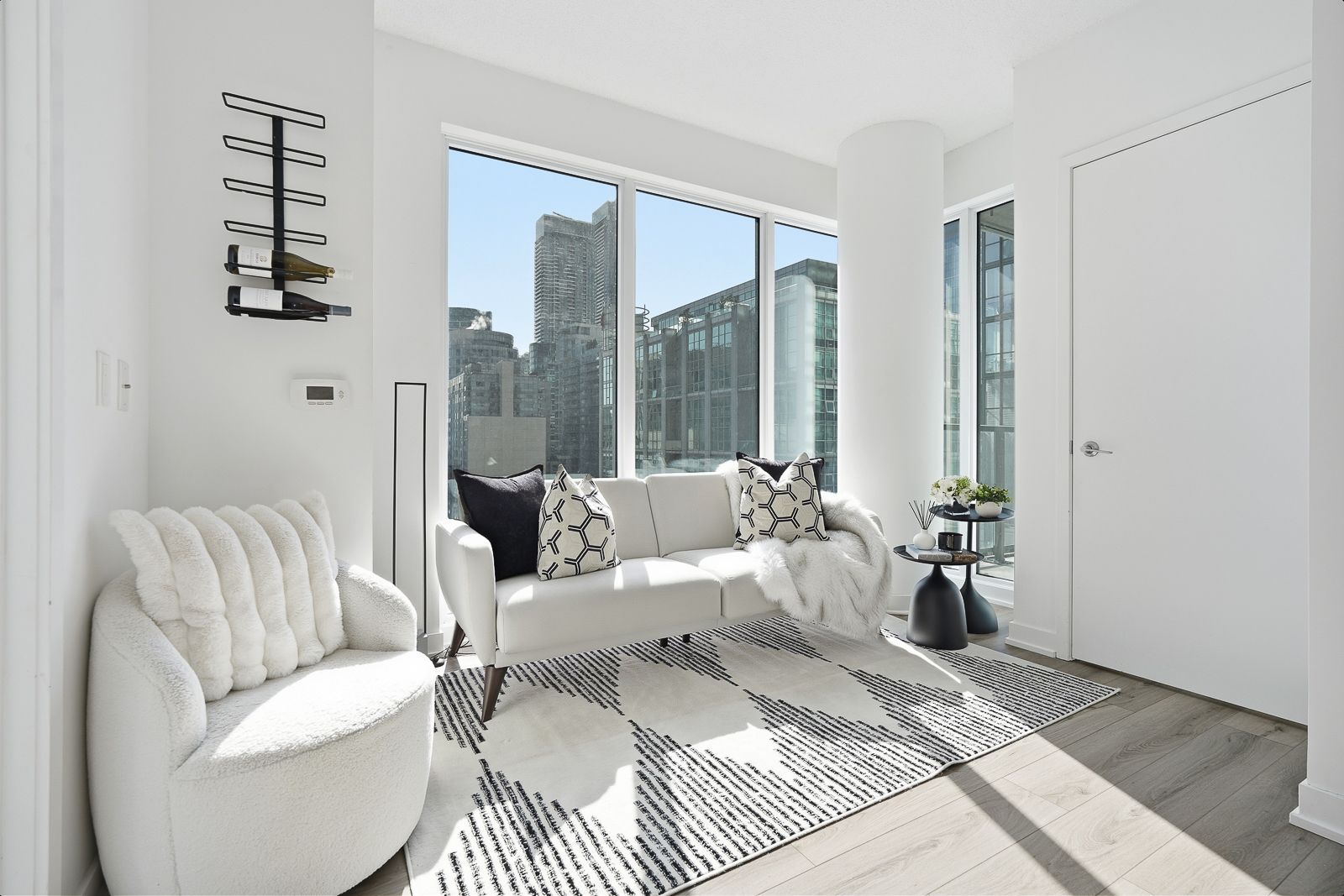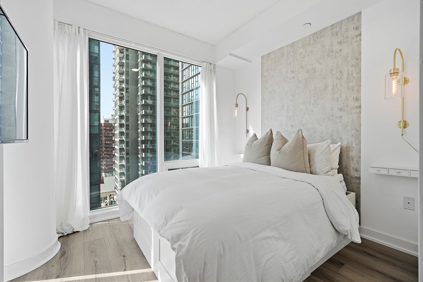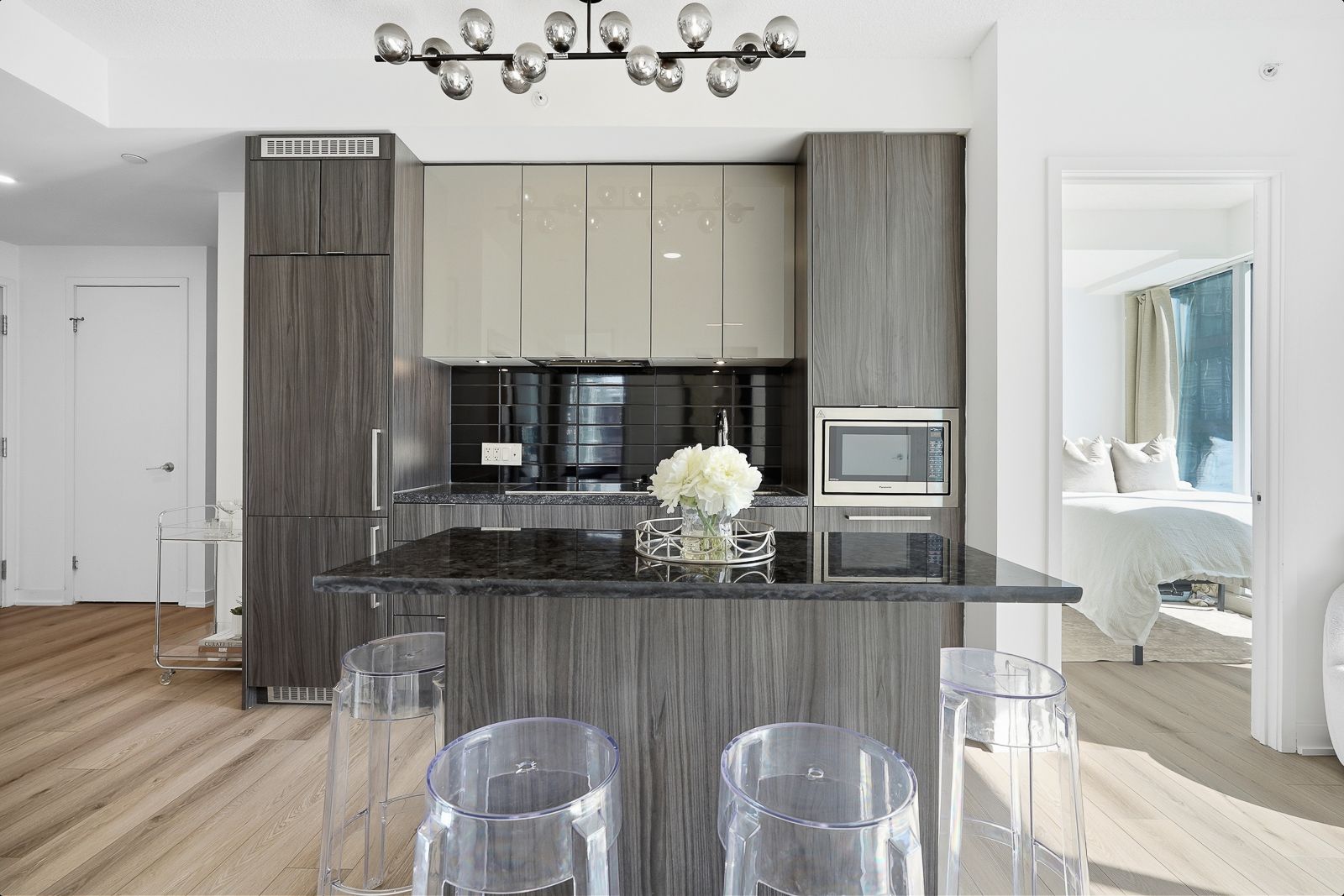 Welcome to luxury living in the heart of toronto's most vibrant neighbourhood - king west. This beautifully appointed 3 bedroom, 2 bathroom unit offers the perfect blend of modern elegance, comfort, and an unbeatable downtown lifestyle. Bathed in natural light from its sun-filled southwest exposure, this unit enjoys spectacular sunshine and glowing sunset views over the city. Inside, brand new flooring flows seamlessly throughout the home, creating a fresh and sophisticated atmosphere. The designer kitchen is the centerpiece of the space, featuring a custom island crafted to perfectly match the cabinetry and a stunning bespoke chandelier that adds a touch of glamour above the kitchen area. Elegant marble countertops extend into both beautifully renovated, modern washrooms, offering a spa-like feel with timeless finishes. Perfect for entertaining or relaxing, this spacious layout provides three well-proportioned bedrooms and thoughtfully designed living spaces. Enjoy the added convenience of private ensuite laundry, seamlessly integrated for effortless, discreet everyday living. Residents also enjoy exceptional building amenities including a fully equipped gym, multiple party rooms, an outdoor terrace with breathtaking cn tower views, a bbq terrace also showcasing stunning cn tower views, and exclusive access to the sutton place hotel amenities, including their gym and pool. Very close to transit with easy access to union station, st. Andrew station, and the highway for seamless commuting throughout the city. Situated in toronto's most exciting neighbourhoods, you're steps from world-class dining and nightlife including nobu toronto, and the iconic bisha hotel. Enjoy immediate access to the best restaurants, cafés, shopping, and cultural hotspots that make king west one of the most desirable places to live in the city. This is downtown luxury at its finest - a rare opportunity to own a stunning home in the heart of it all.