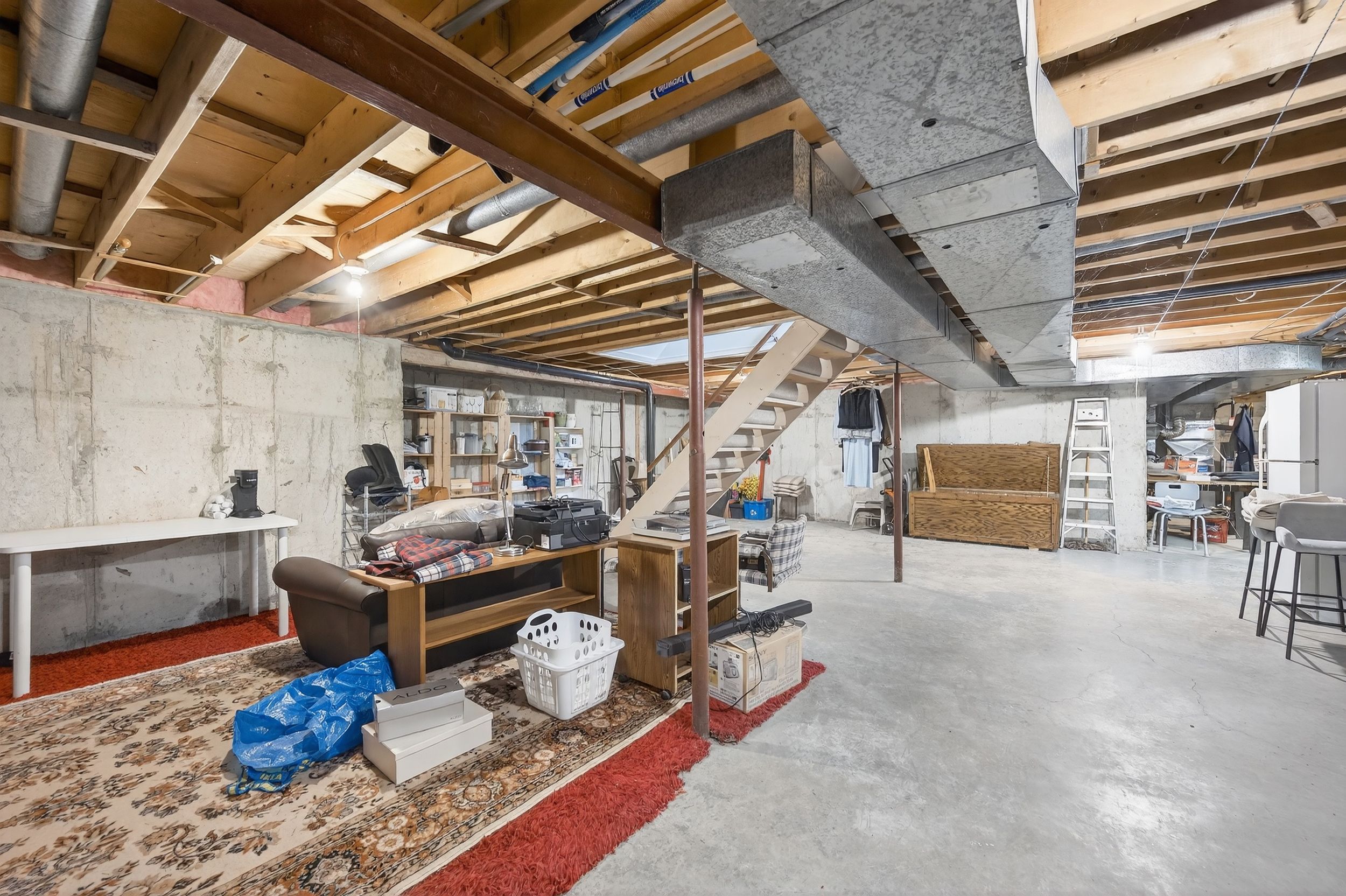 • Unfinished basement offers potential for extra living space and storage.