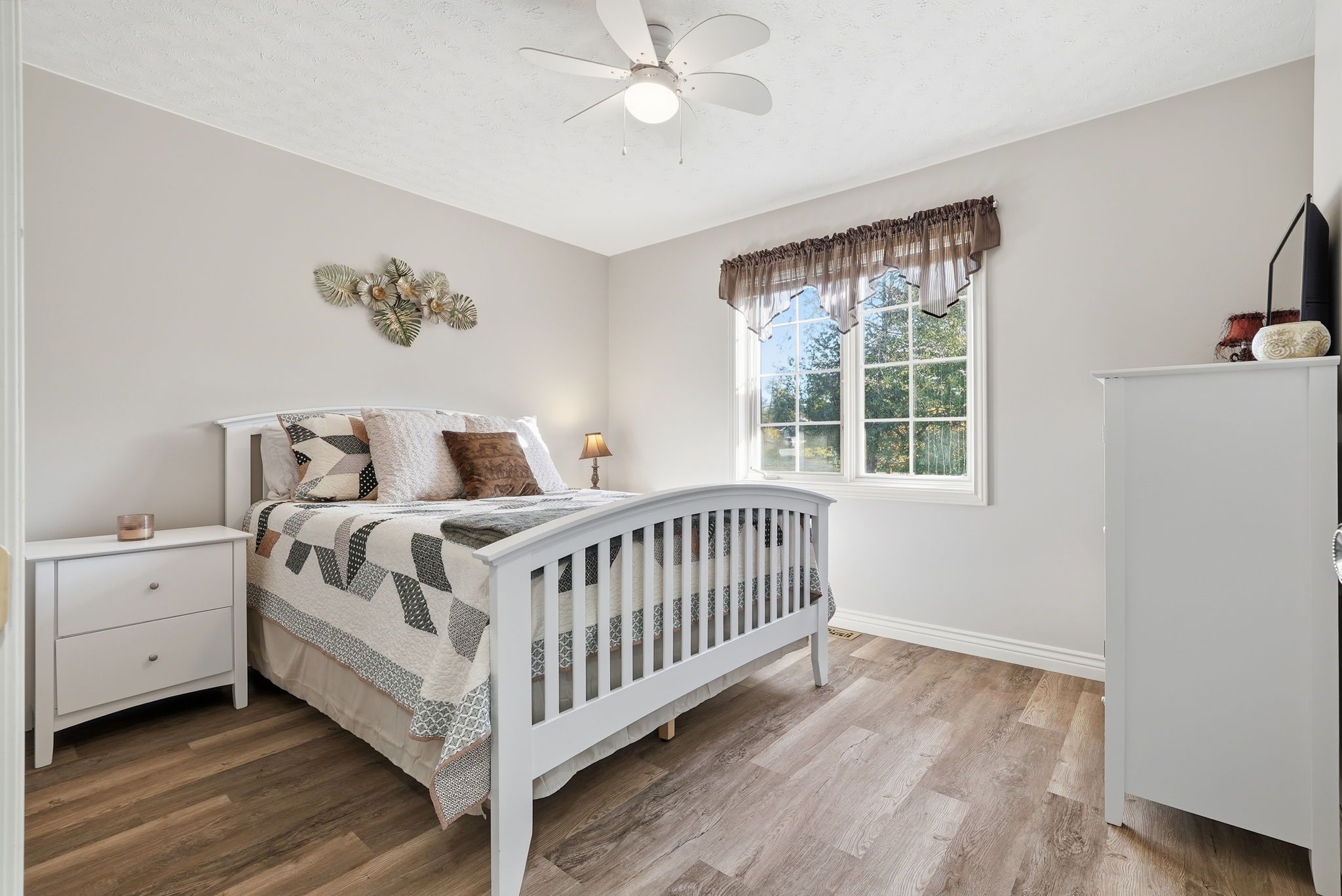 This home truly has it all! A solid red-brick bungalow located in desirable point clark, a quiet lakeside community just a short drive to kincardine, goderich & ripley. Set on just over 1/2 acre of beautifully groomed private grounds, this property offers a peaceful natural setting with a creek bordering one side & a walking trail directly behind the home. Tucked away on a quiet cul-de-sac, it's the ideal setting for family living or peaceful retirement living. The main floor features a bright, open-concept layout filled with natural light. At the heart of the home is the kitchen, complete with solid wood cabinetry, quartz countertops, a sprawling island & spacious dinette/breakfast nook. A formal dining room overlooking the sunroom and backyard provides the perfect space for family gatherings & entertaining. The sunken living room has a cozy atmosphere with a propane fireplace & den sits just off this space for additional flexibility, currently used as a craft room. Two bedrooms are located on the main level, including a generously sized primary suite with ensuite & walk in closet, plus a full guest bath. Convenient main-floor laundry with wash tub is located just off the garage entrance. The attached 28' x 28' garage is fully insulated, equipped with hydro, concrete floors & heated by propane - ideal for hobbyists, storage, or secure parking. The lower level offers incredible versatility depending on your needs. Currently finished with an exercise area, rec room featuring a wood stove, pool room, bedroom, bathroom, oversized mechanical room, cold cellar & additional storage space - perfect for guests, hobbies, or extended family living. Step into the backyard oasis featuring a 2023 composite deck, lush lawn, charming gardens & a welcoming firepit area - ideal for family nights & summer gatherings. This property has been meticulously cared for; pride of ownership is evident throughout. A rare opportunity to enjoy comfort, space & nature in a wonderful community.