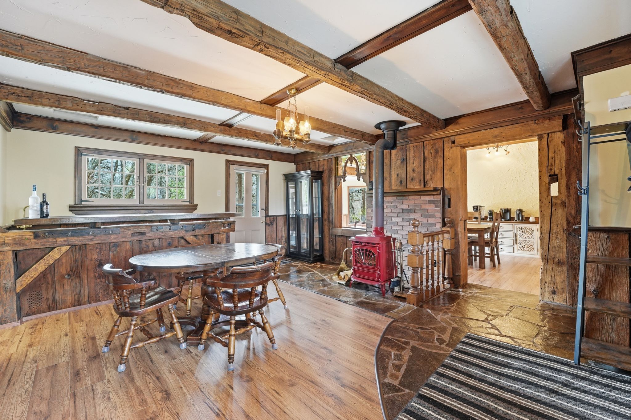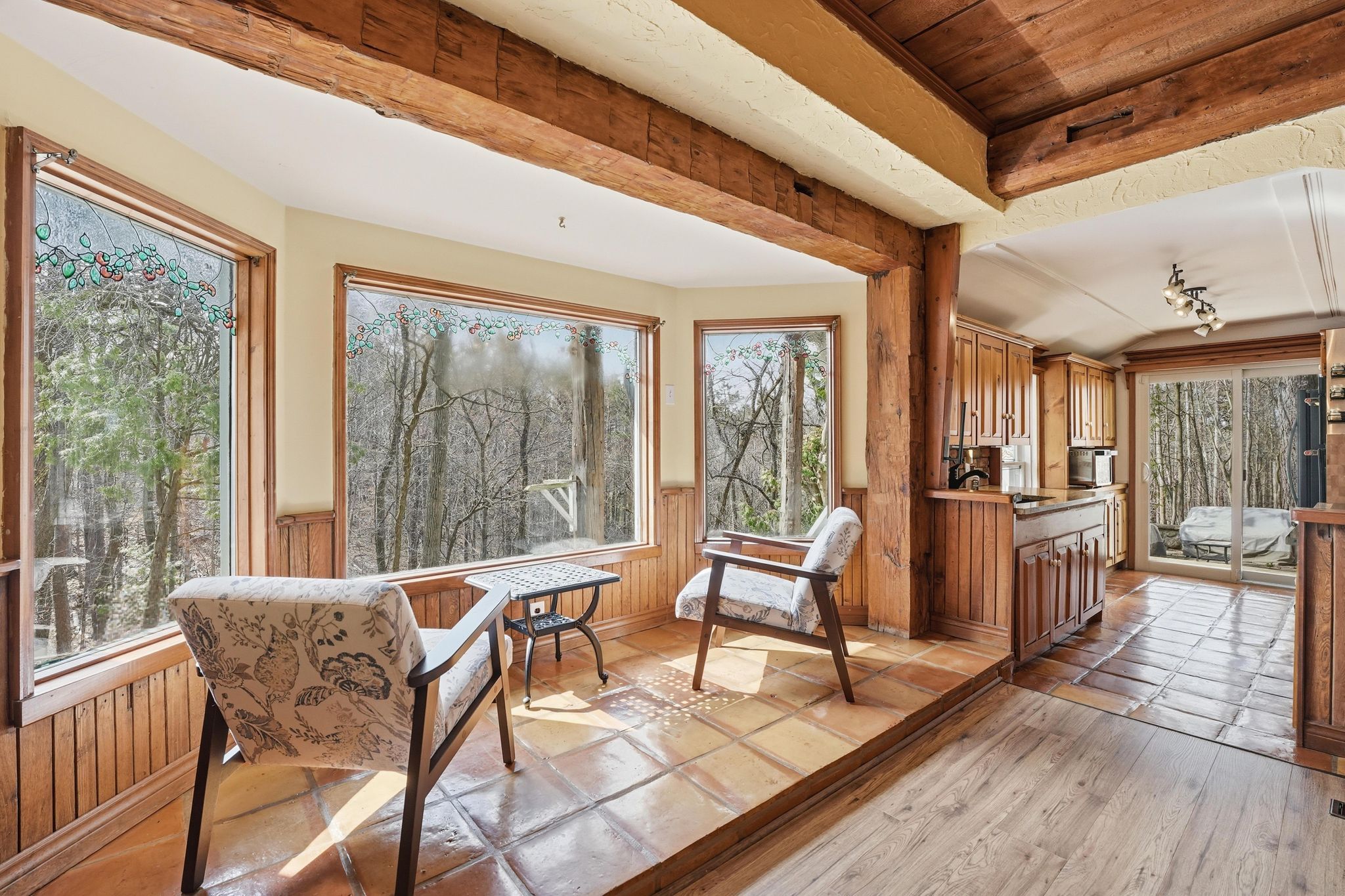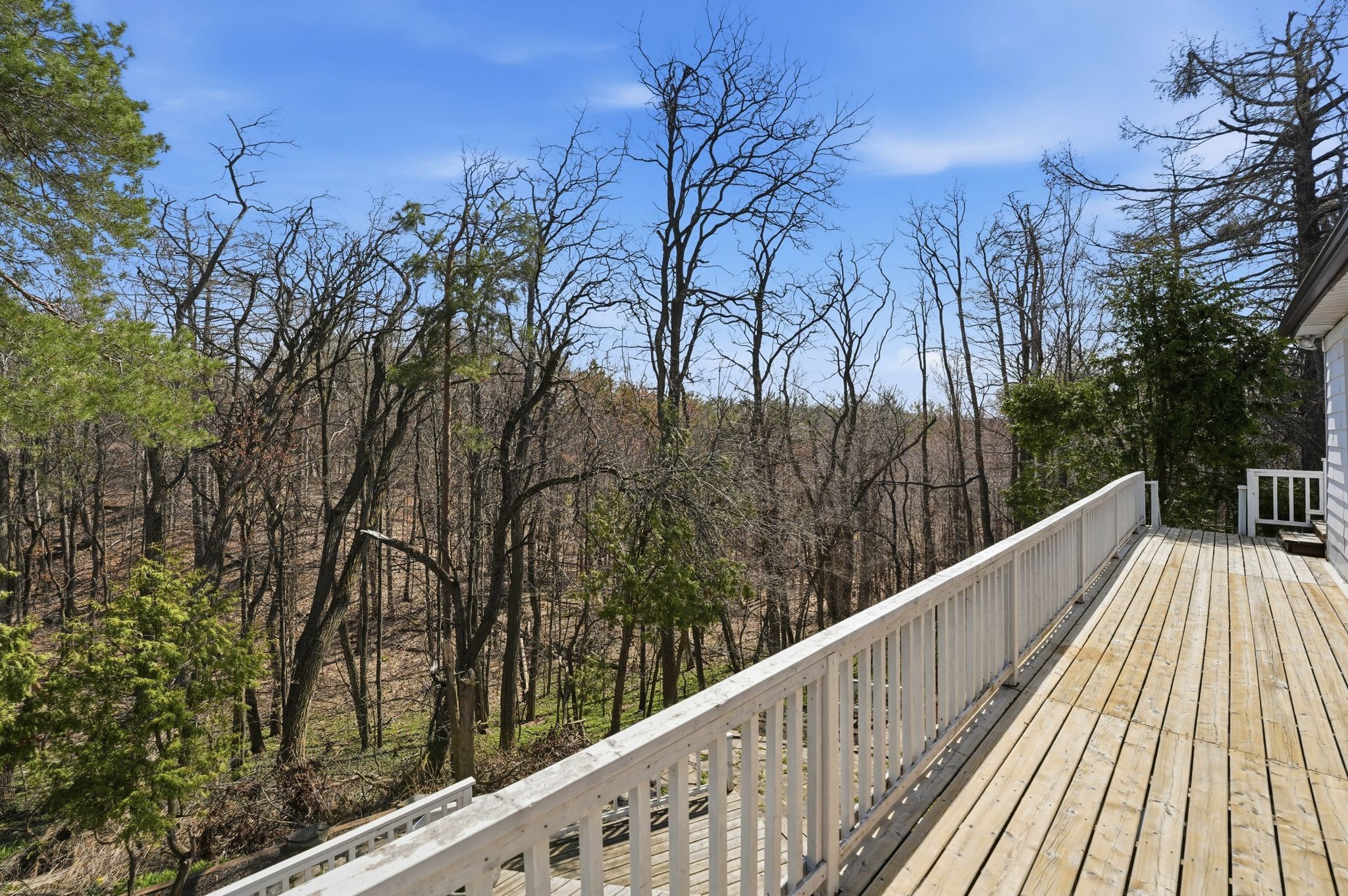 • Spacious 2,886 sq ft layout with functional rooms and scenic forest views.