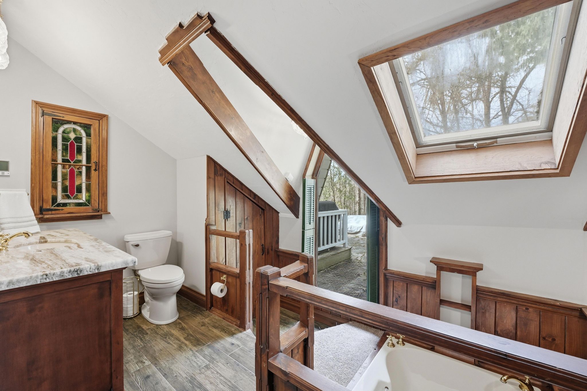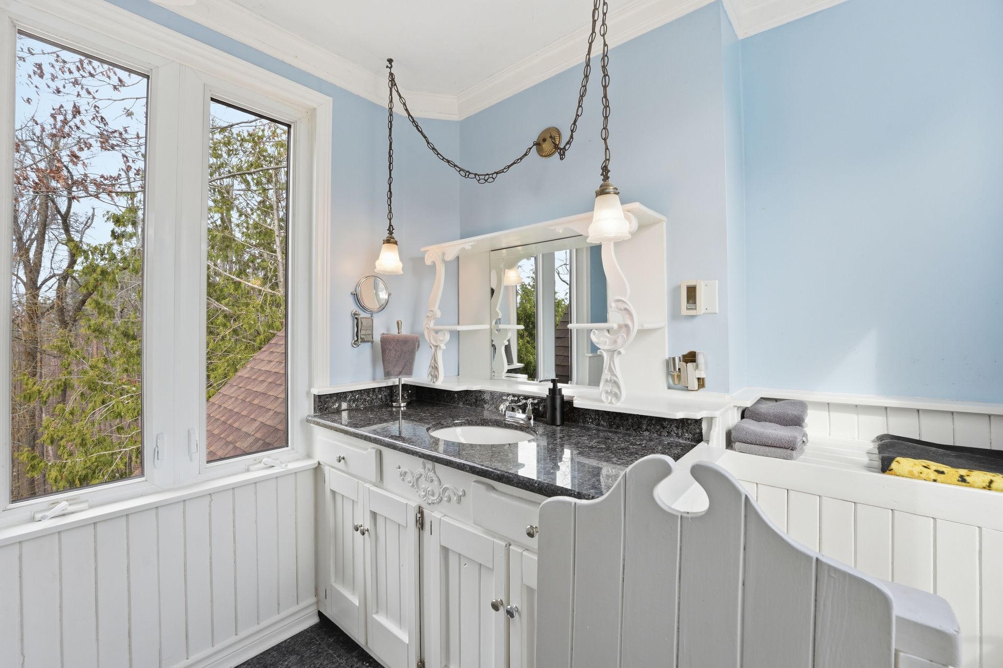 • Charming century home set on a private 1.28-acre estate for ultimate privacy.