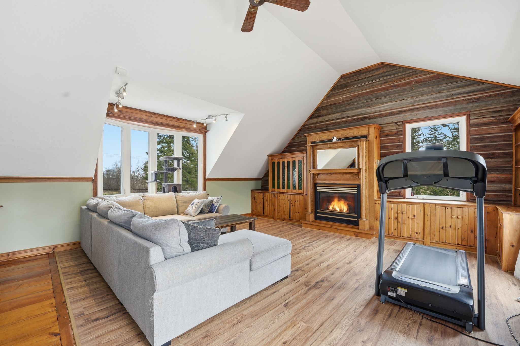 • Unique vaulted ceiling rec room upstairs adds character and flexible space.