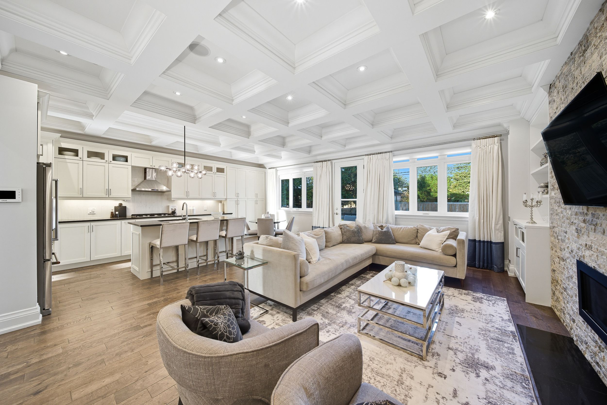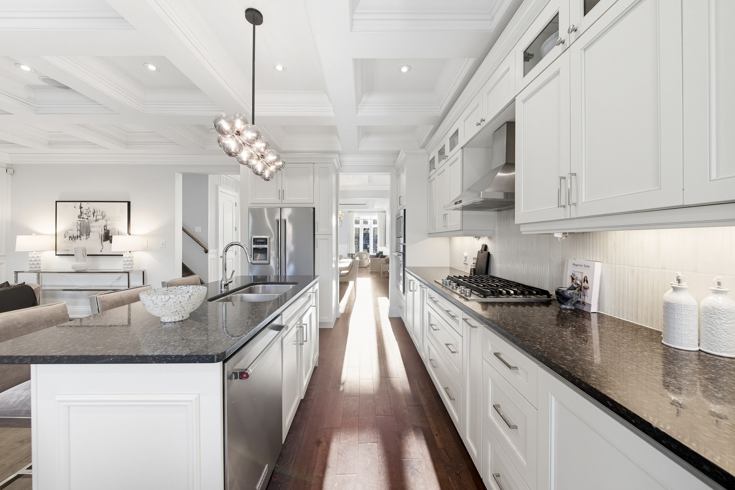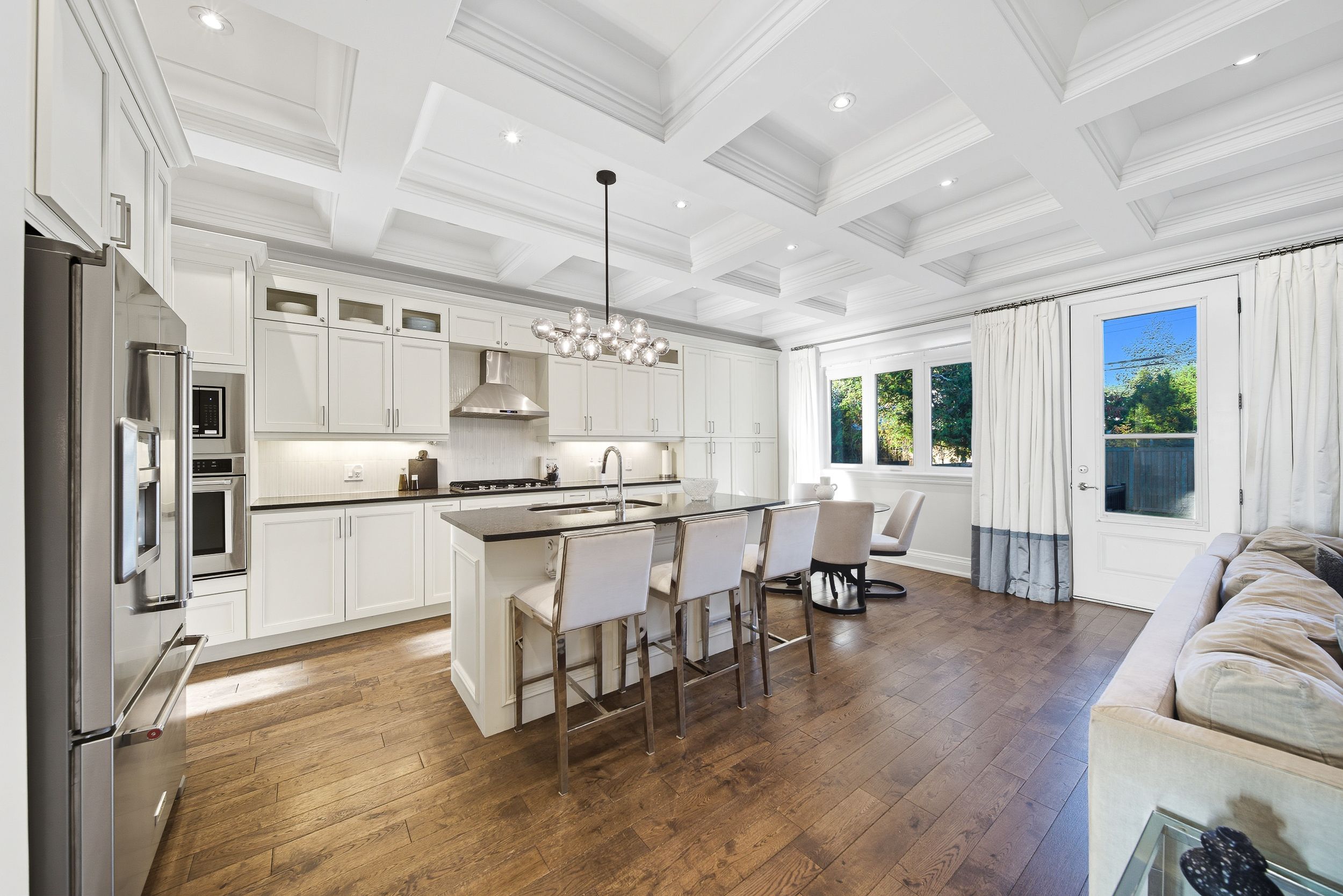 Tucked into a quiet stretch of the prestigious scarborough bluffs, 115 dorset road is a family-owned custom home built with care. With roughly 4,100 sq ft of finished space over three sun-filled levels, this 4-bedroom plus guest suite, 5-bath home pairs timeless finishes with modern comforts. Solid construction, the home is remarkably quiet inside. In the area for rh king academy, fairmont, and st agatha amongst other schools, groceries, shoppers drugmart, and other amenities are around the corner, making this an ideal location. Inside, the home includes ten-foot ceilings, rich hardwood floors, custom woodwork, a high-efficiency gas fireplace, and a family room elevated with a classic waffle ceiling and custom built-ins. The home is built for effortless living indoors and outdoors. Four generous bedrooms on the second level provide ample space for a family, and four skylights fill the home with natural light. A full laundry room on this level makes chores easy. The walk-out lower level delivers bonus living space. With its walk-out access to the backyard and kitchen rough-in, the lower level is ideal for an in-law/nanny suite or a basement rental unit. The home is equipped with an upgraded security system and is serviced by a 200-amp electrical panel. Beyond the walls, the setting is ideal. Cliffcrest is a family-friendly pocket known for quiet streets and access to nature. The scarborough bluffs are minutes away. All amenities are around the corner, and transit is easy with ttc buses and nearby go stations. Its rare to find a family-owned home like this one, delivering both luxury and warmth.