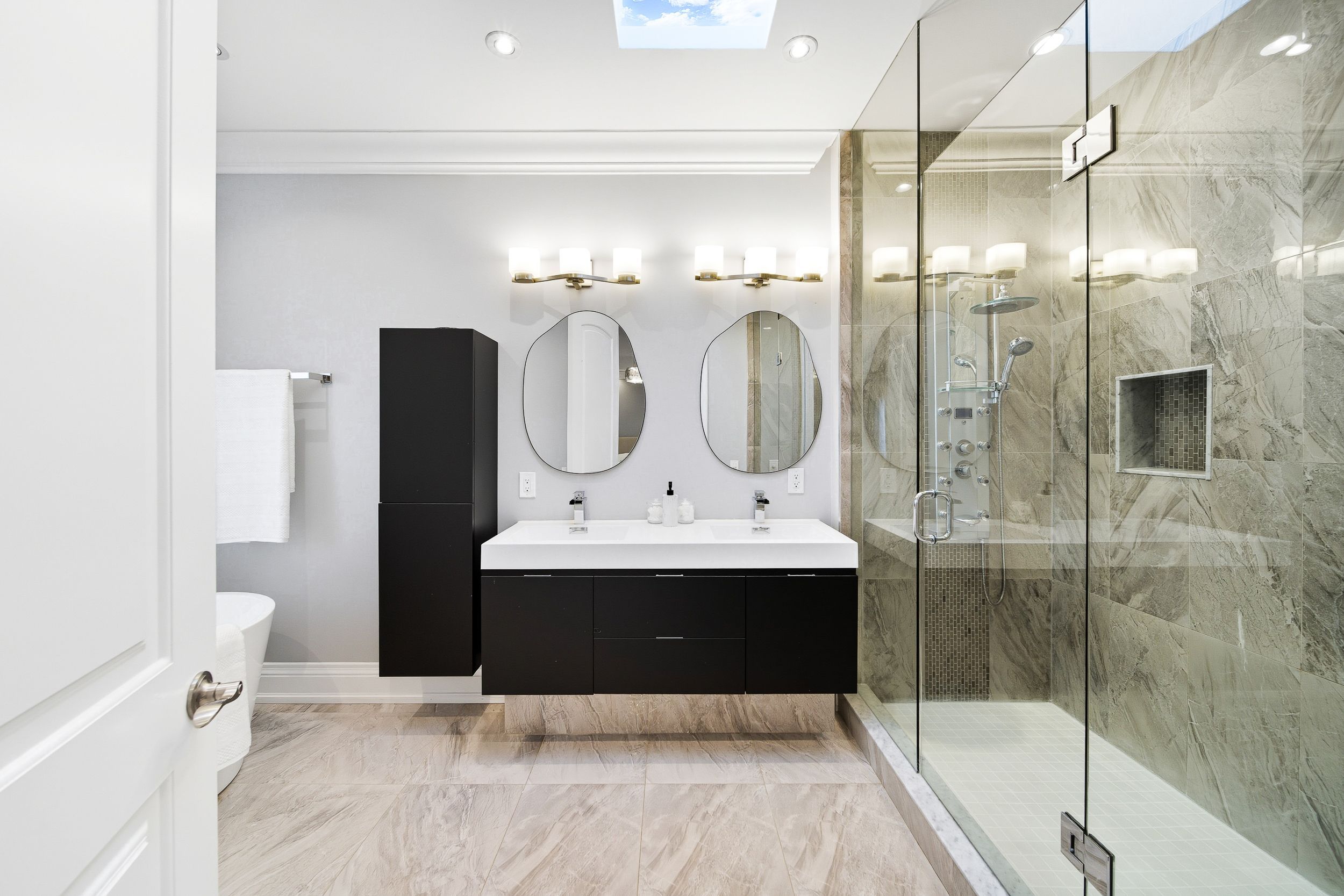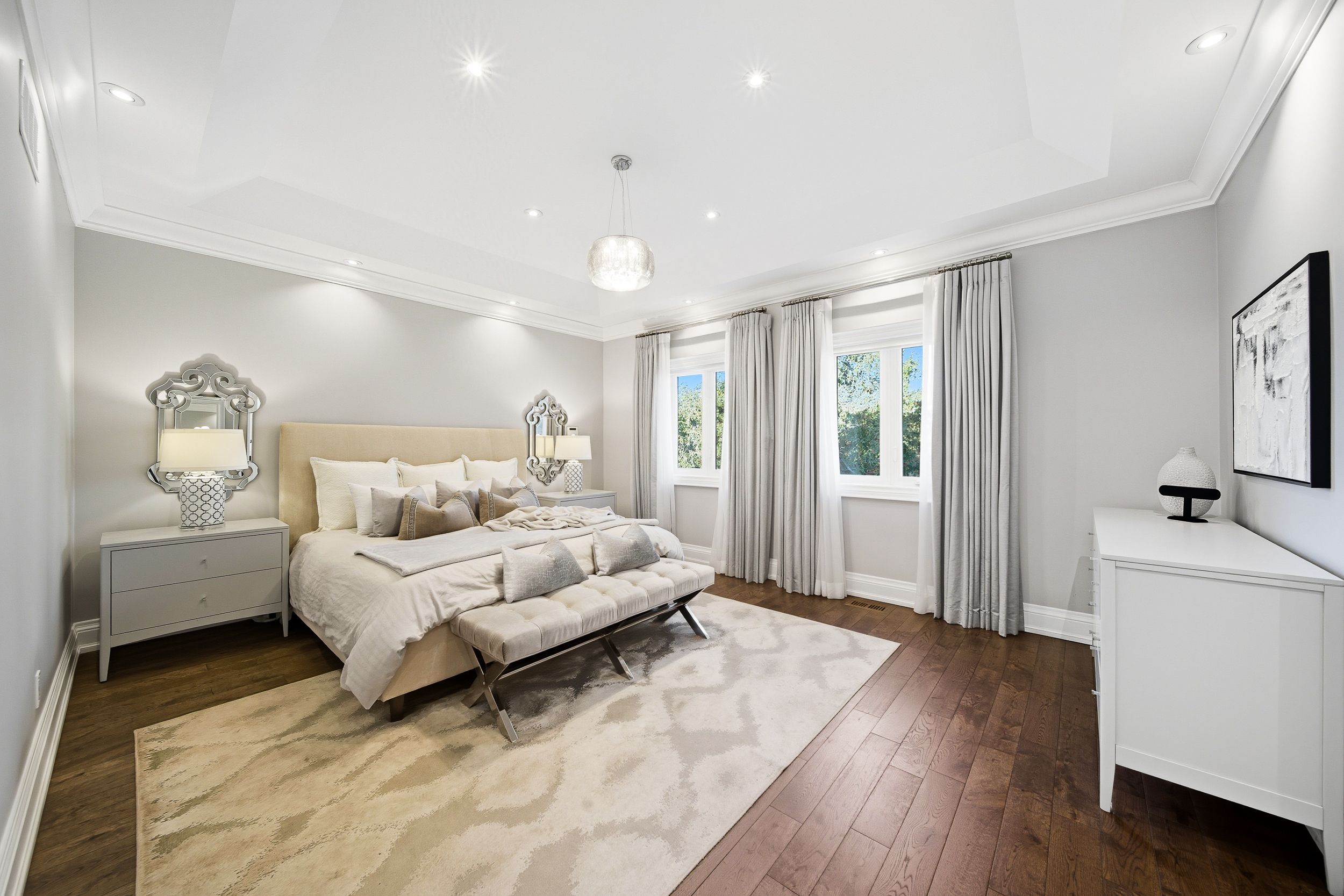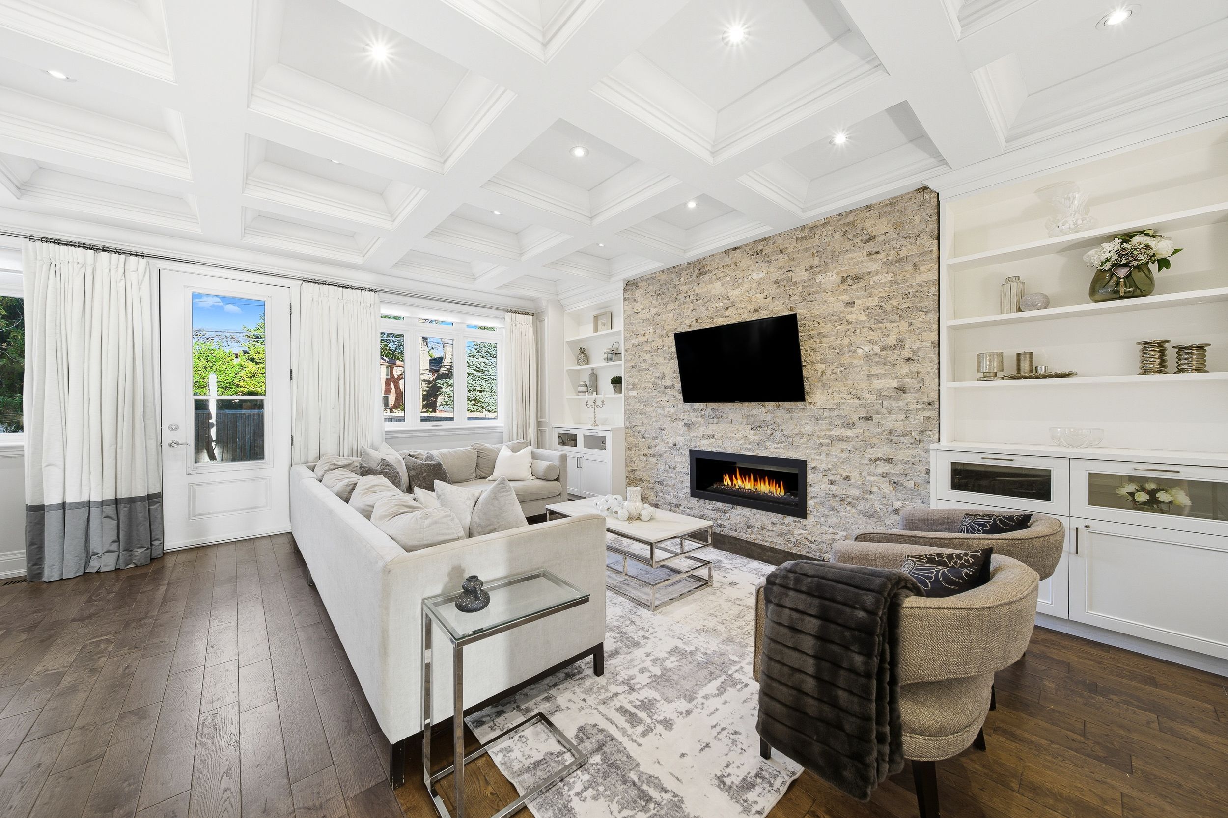 Tucked into a quiet stretch of the prestigious scarborough bluffs, 115 dorset road is a family-owned custom home built with care. With roughly 4,100 sq ft of finished space over three sun-filled levels, this 4-bedroom plus guest suite, 5-bath home pairs timeless finishes with modern comforts. Solid construction, the home is remarkably quiet inside. In the area for rh king academy, fairmont, and st agatha amongst other schools, groceries, shoppers drugmart, and other amenities are around the corner, making this an ideal location. Inside, the home includes ten-foot ceilings, rich hardwood floors, custom woodwork, a high-efficiency gas fireplace, and a family room elevated with a classic waffle ceiling and custom built-ins. The home is built for effortless living indoors and outdoors. Four generous bedrooms on the second level provide ample space for a family, and four skylights fill the home with natural light. A full laundry room on this level makes chores easy. The walk-out lower level delivers bonus living space. With its walk-out access to the backyard and kitchen rough-in, the lower level is ideal for an in-law/nanny suite or a basement rental unit. The home is equipped with an upgraded security system and is serviced by a 200-amp electrical panel. Beyond the walls, the setting is ideal. Cliffcrest is a family-friendly pocket known for quiet streets and access to nature. The scarborough bluffs are minutes away. All amenities are around the corner, and transit is easy with ttc buses and nearby go stations. Its rare to find a family-owned home like this one, delivering both luxury and warmth.