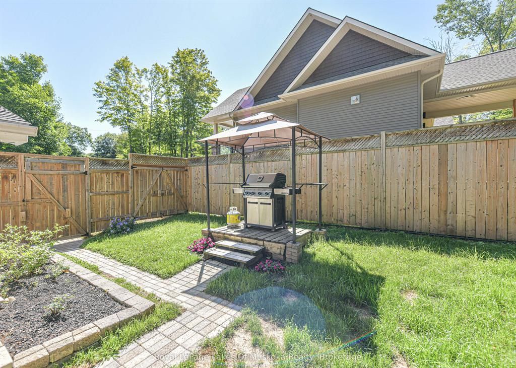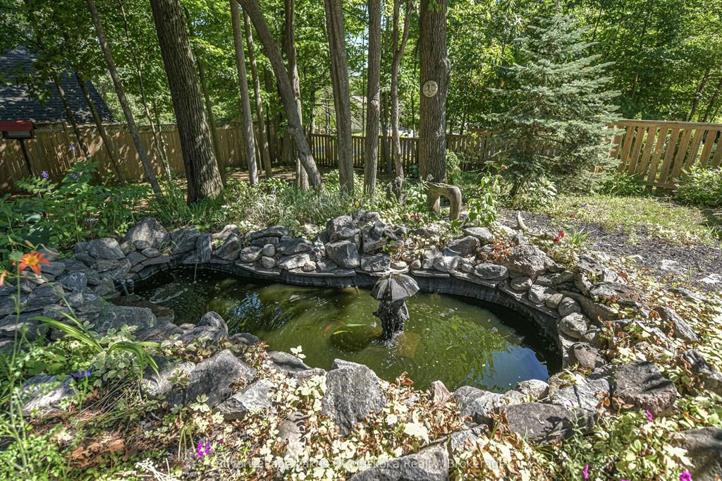 Nature's paradise found. This well maintained bungalow in this sought after neighbourhood is what you are looking for, minutes to the beach, schools and all amenities. The main floor features a spacious living room with a wood burning brick fireplace, eat-in kitchen has walkout to cedar deck and separate walkout to 3 season cedar lined sunroom making it ideal for a hot tub. Primary bedroom has a tasteful 4 piece ensuite with 6ft maax whirlpool tub and shower with self closing door and corner seat. Laundry has ample space, shelving and storage and is ideally located on the main floor. This is a carpet free home. The fully finished lower level is ready for you to use your imagination, large open space with corner free standing gas stove. Imagine a pool table, work out area, family fun all with large above grade windows letting the natural light in. There is also a den, 3 piece bath and utility room with newer upgraded gas furnace, on the lower level. The attached garage is currently a heated workshop. Now for the outside, cedar decking, flower and vegetable gardens, bbq centre gazebo and dining gazebo and storage shed in the rear and waterfall and fish pond with gardens in the front and all completely fenced in. Enclosed front porch completes the privacy and quiet relaxing atmosphere at this home. Ideal for retirees, or a couple just starting out.