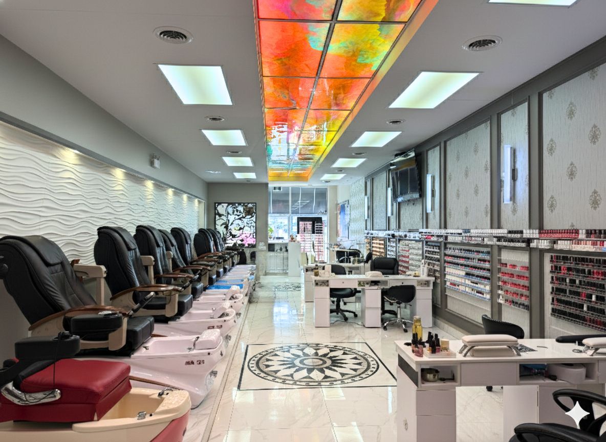 • Well-equipped with 10 pedicure chairs and 6 nail stations.